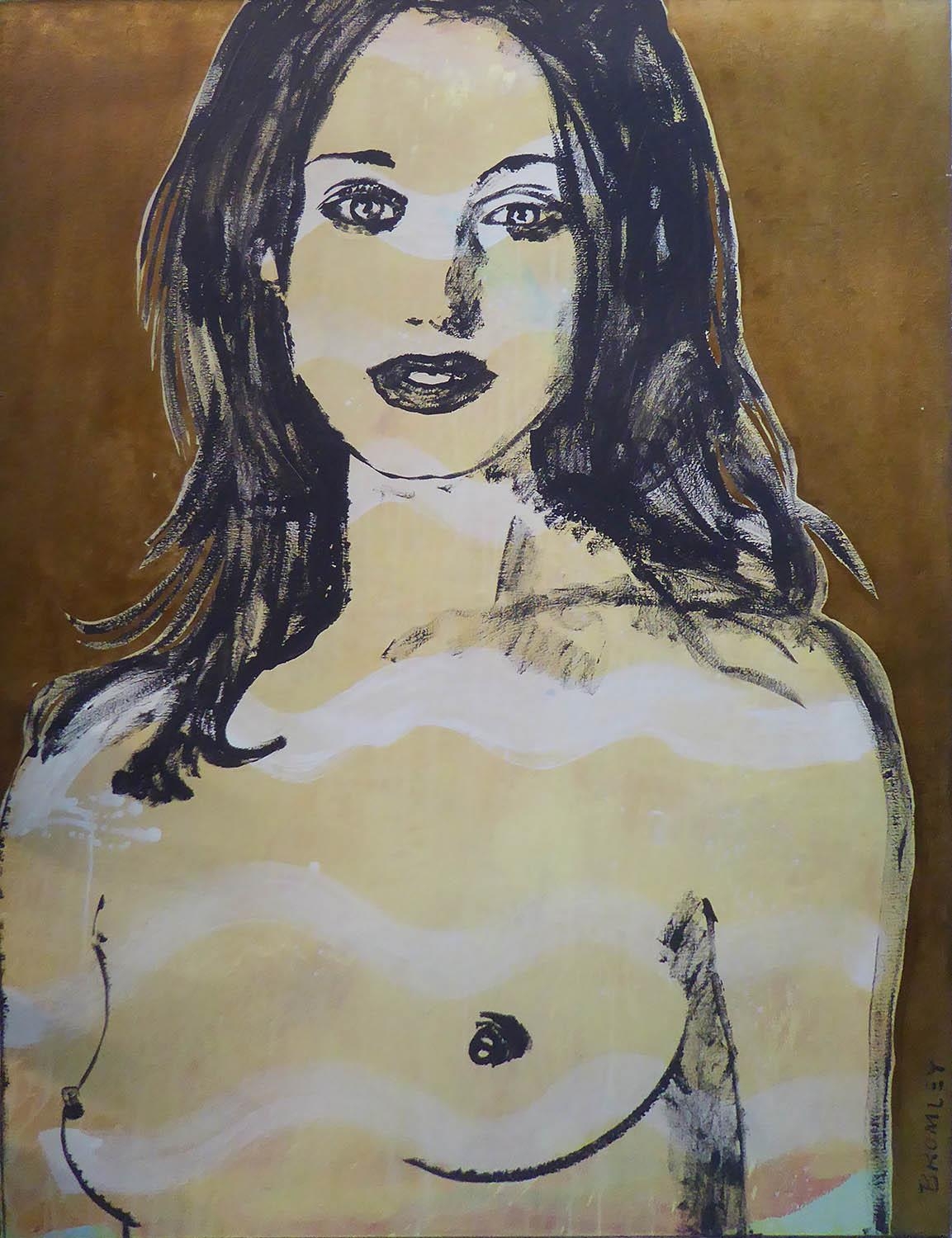 DAVID BROMLEY (British b.1960) 'Gillian', acrylic and gold leaf on canvas, signed lower right, 122cm x 151cm, framed.