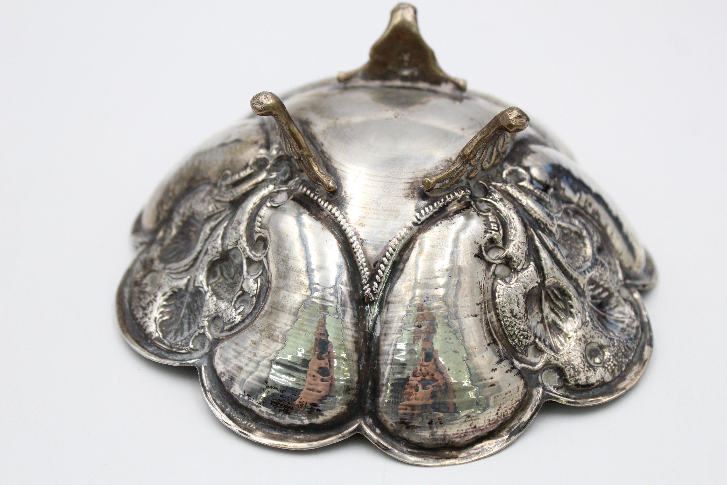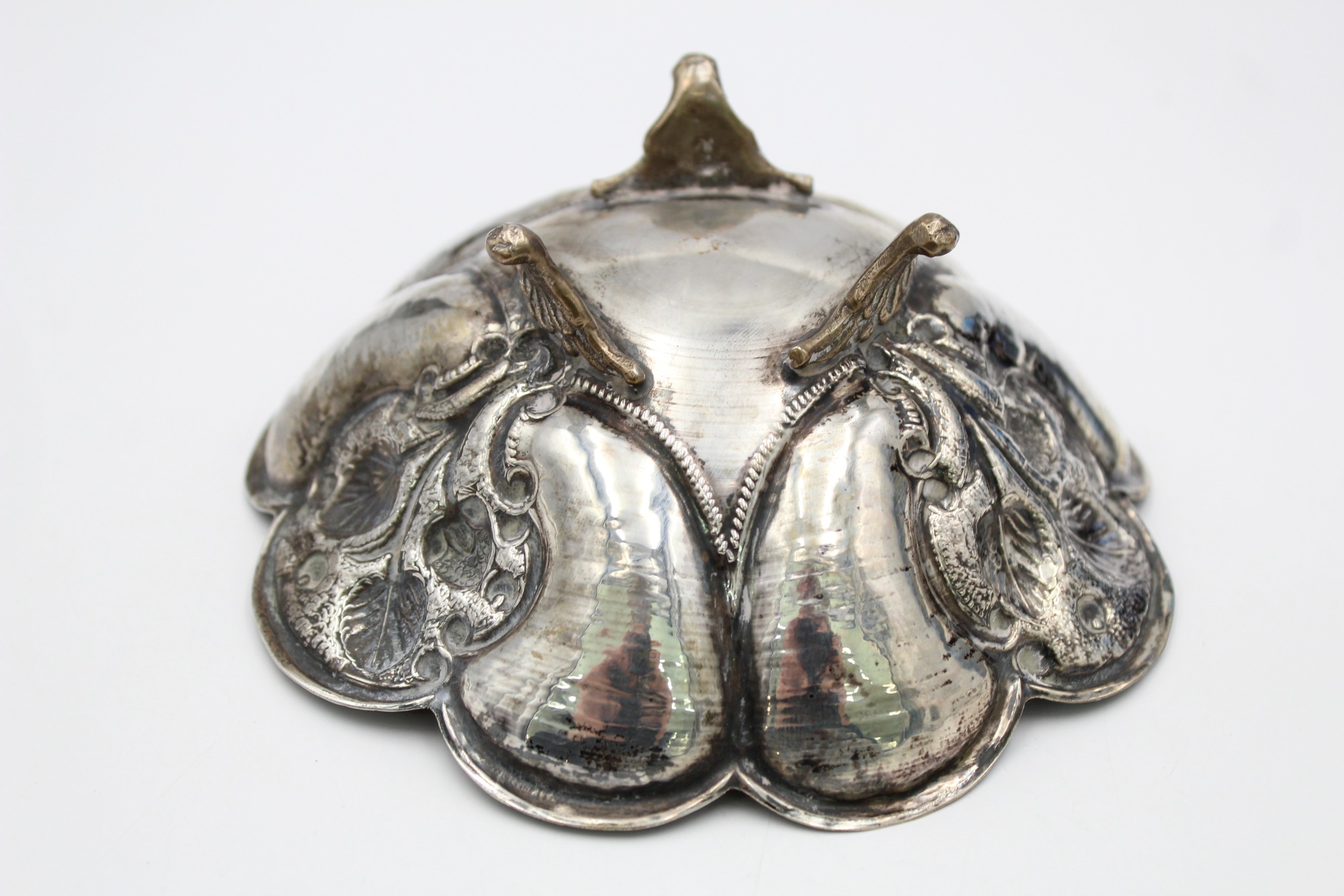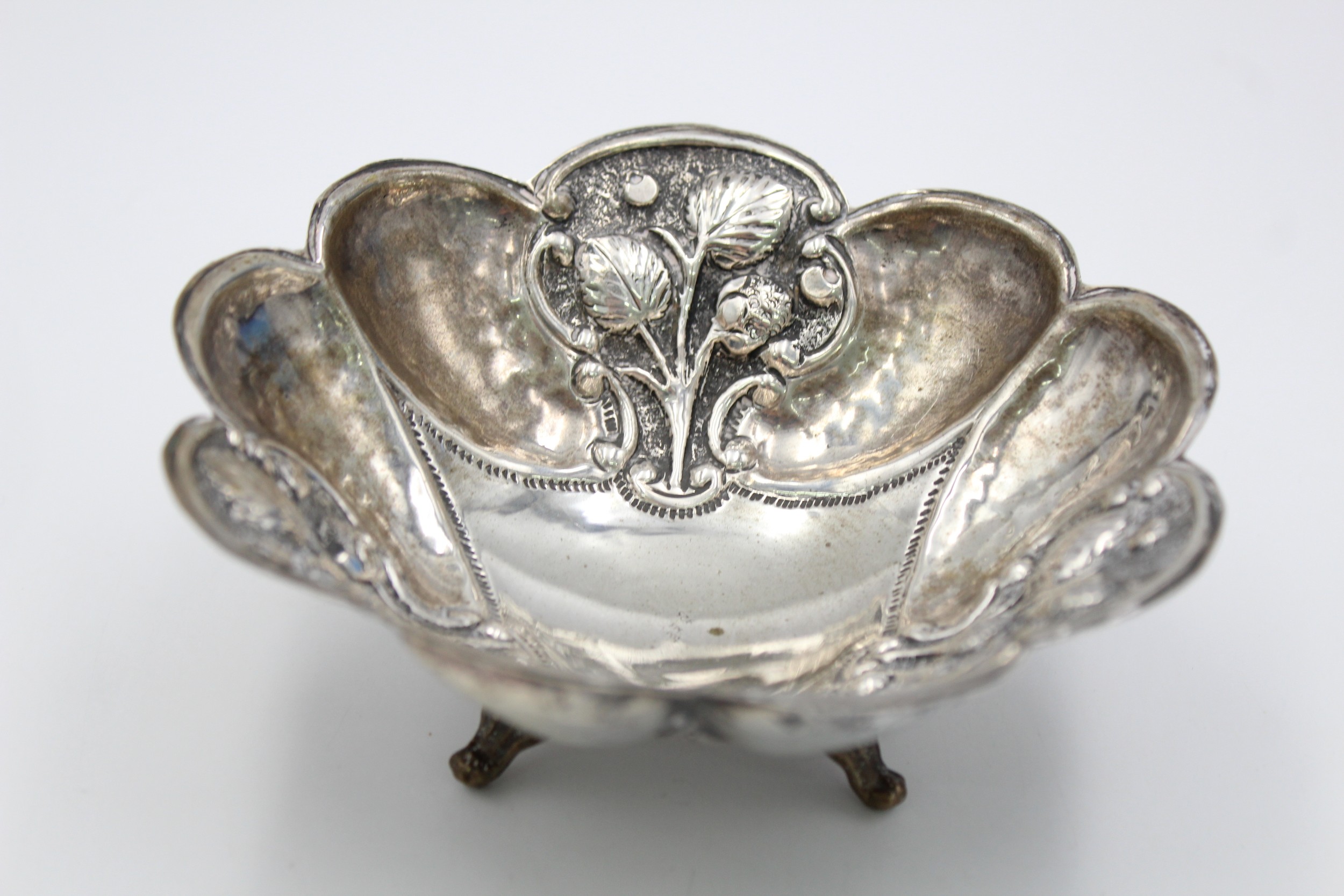 Antique / Vintage .800 Continental SILVER Ornate Bowl with Scalloped Edge (80g)