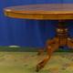 Mid C19th Walnut Victorian Walnut Oval Loo Table on well turned & carved centre column with 4 carved cabriole supports, with brass & ceramic castors, oval top inlaid with box wood stringing, small marquetry panel, mirror veneers, 40' x 52' x 28'