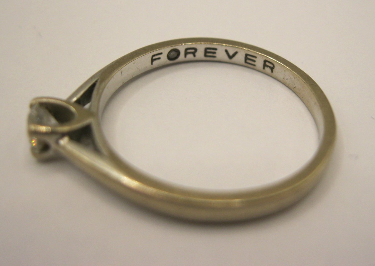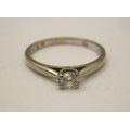 An 18 carat imported white gold solitaire diamond ring, the diamond 0.20 carat, with a Jewellery Identification Report card from International Gemmological Institute. Approx. weight of ring 2.5g, ring size N/O, stamped inside FOREVER DIA 750 import marks '20. The report (see photographs) states natural diamond, modified round brilliant (73 facets), 0.20 carat, colour D, clarity I1, finish good/very good
