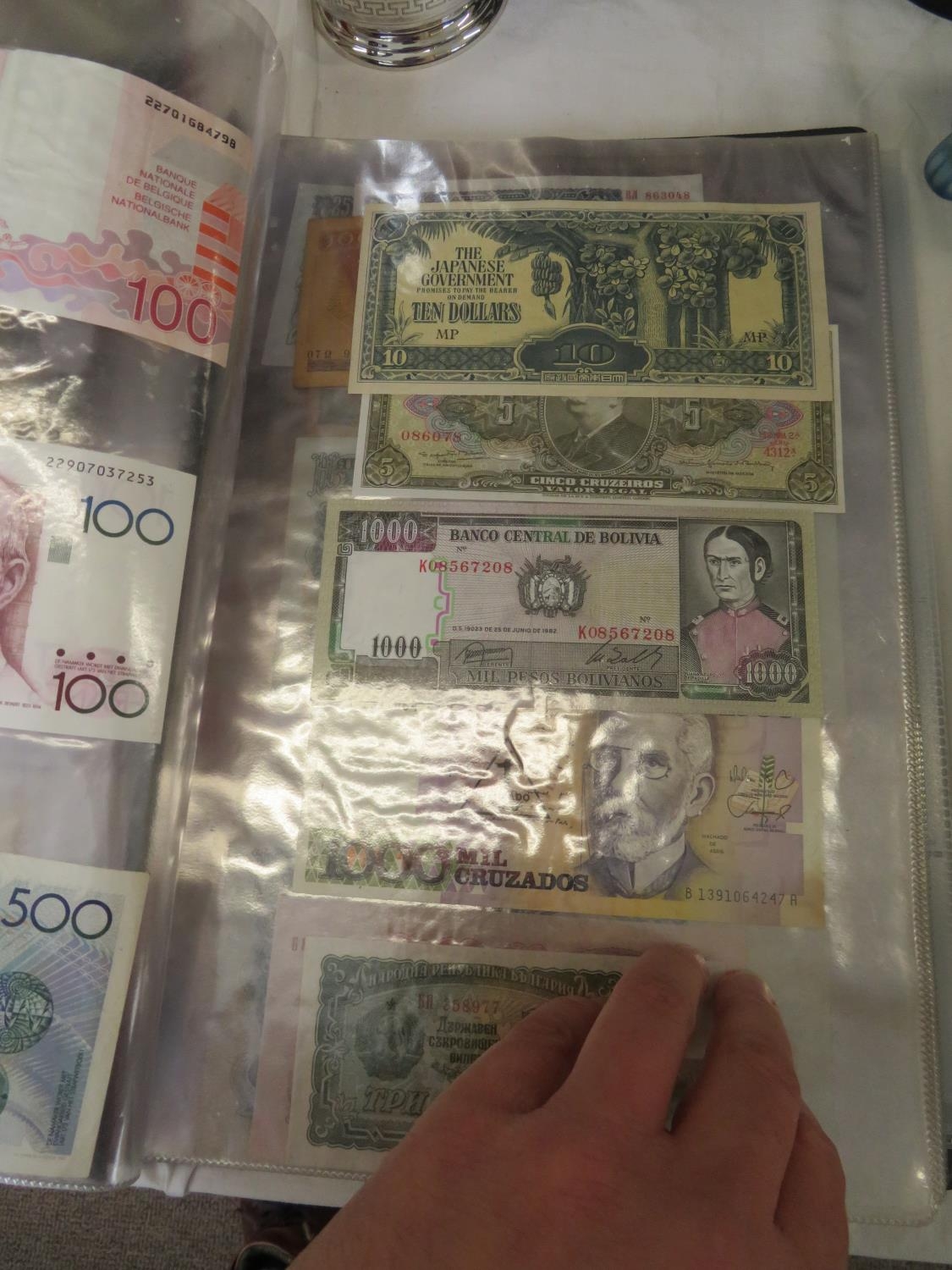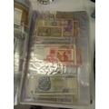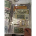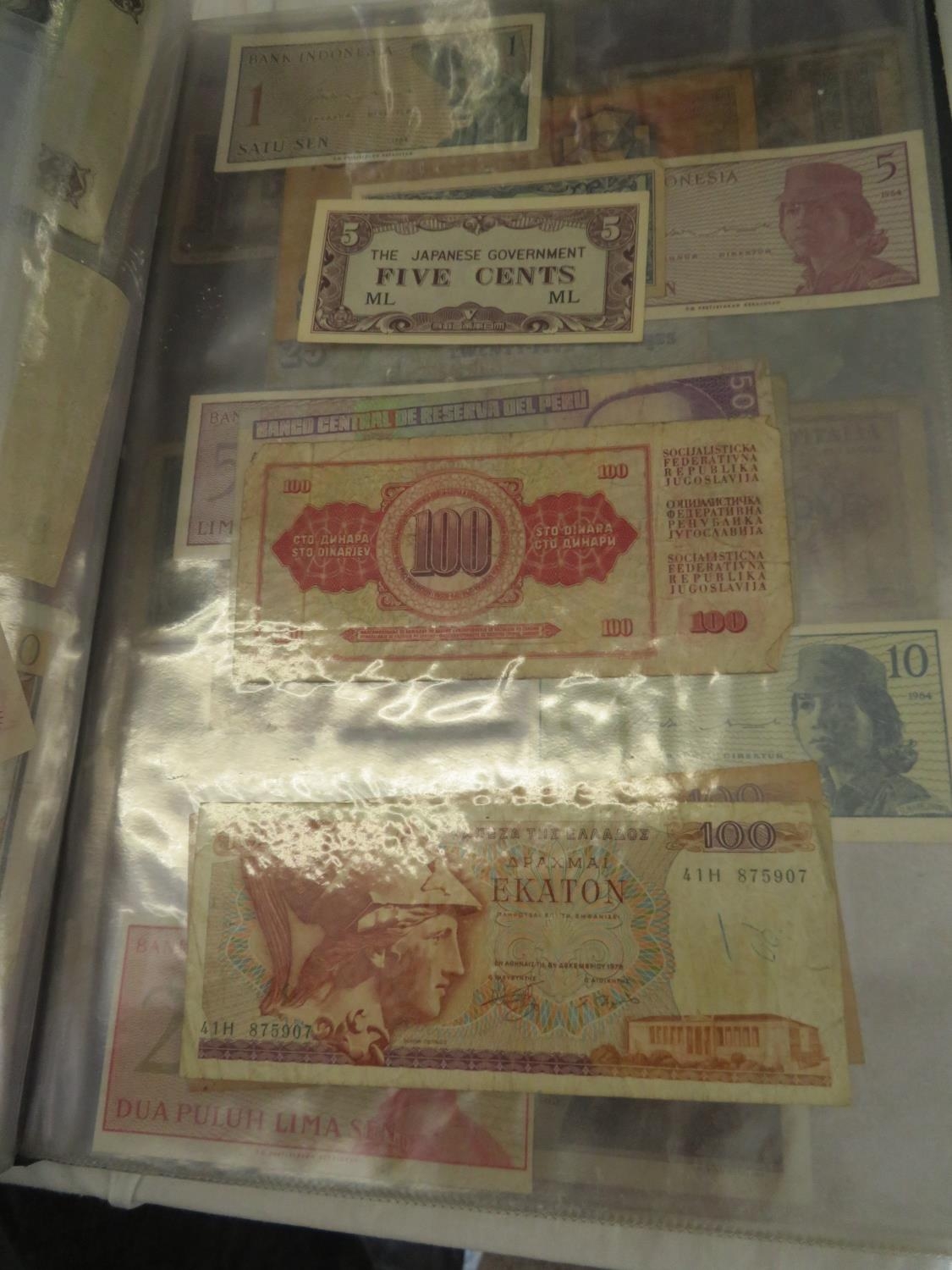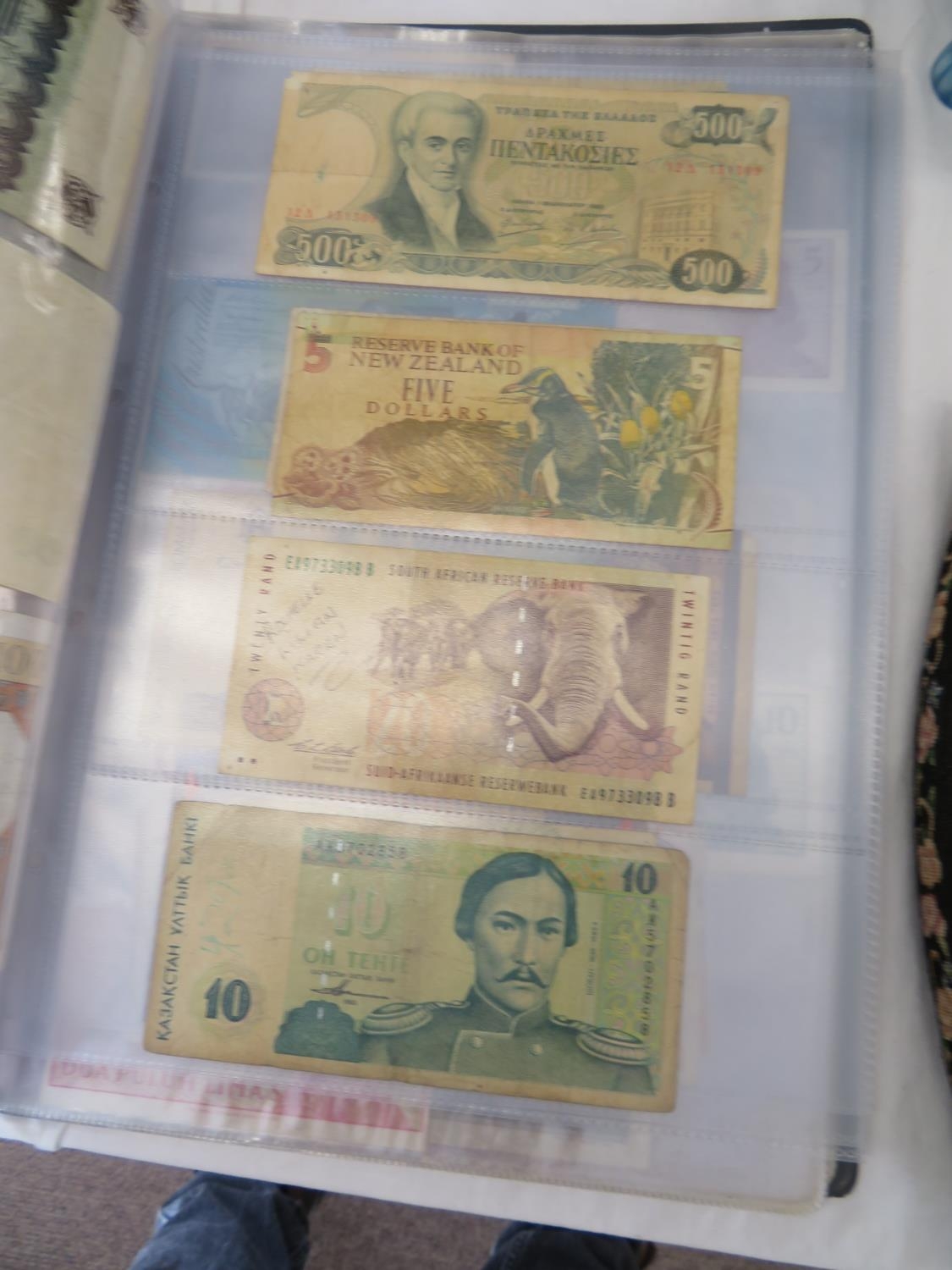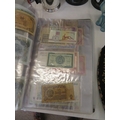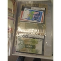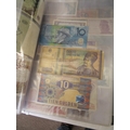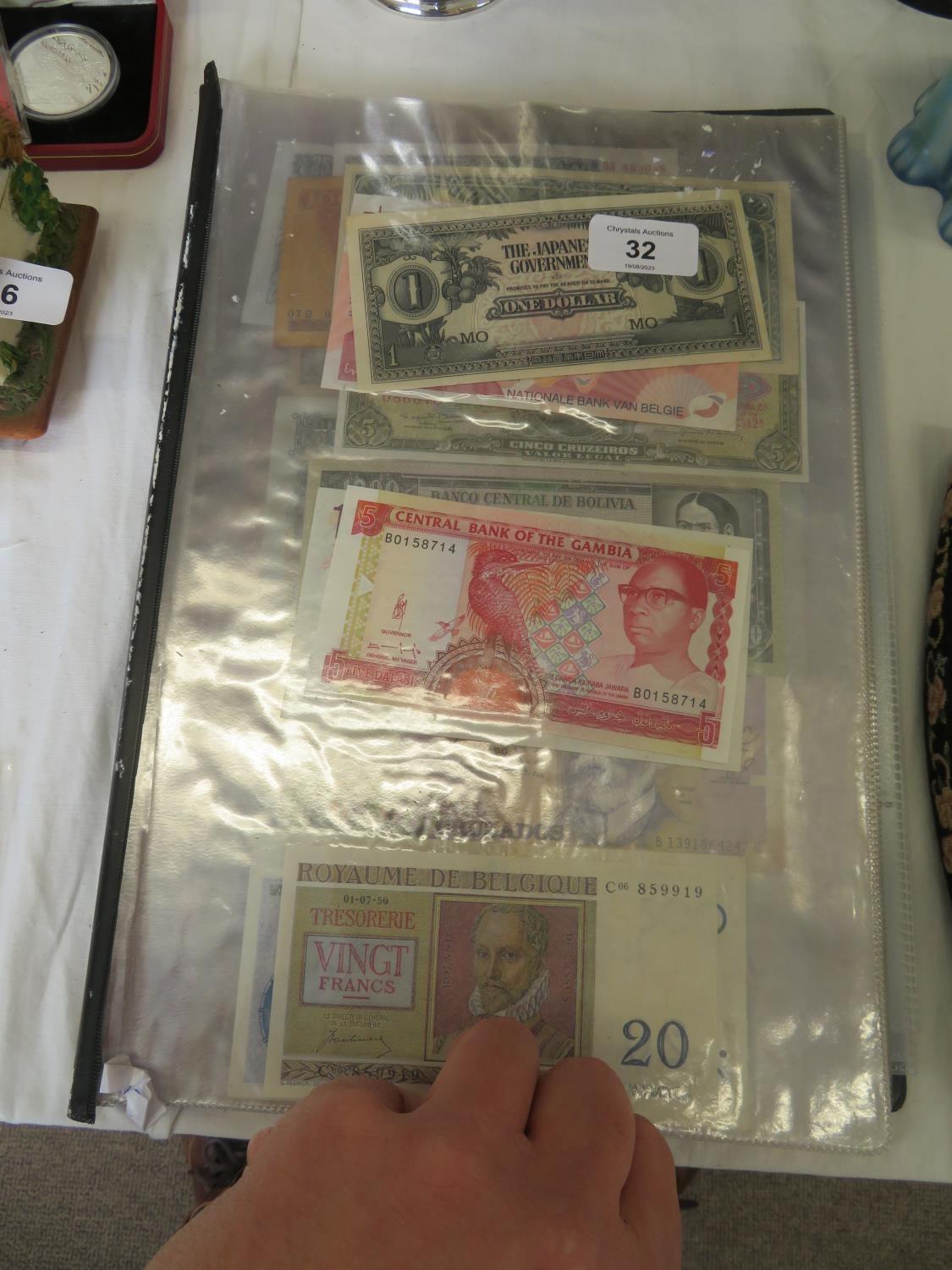 A folder full of numerous world wide bank notes