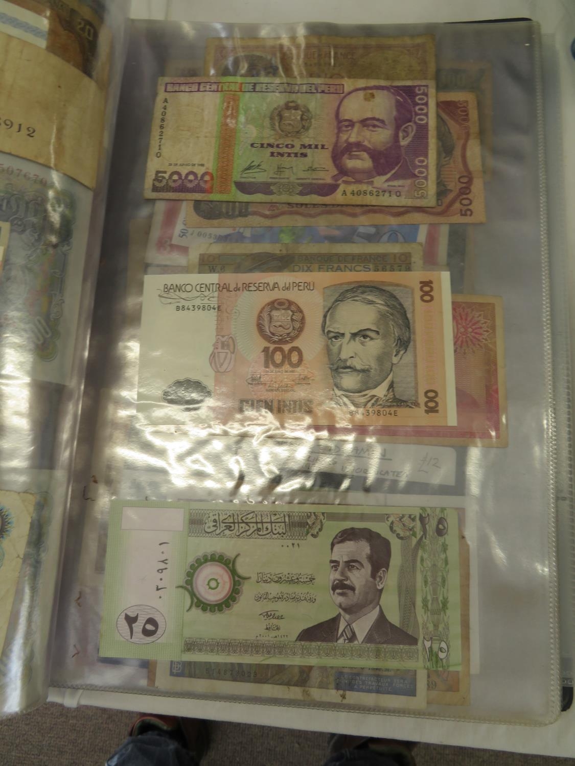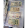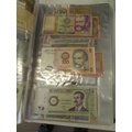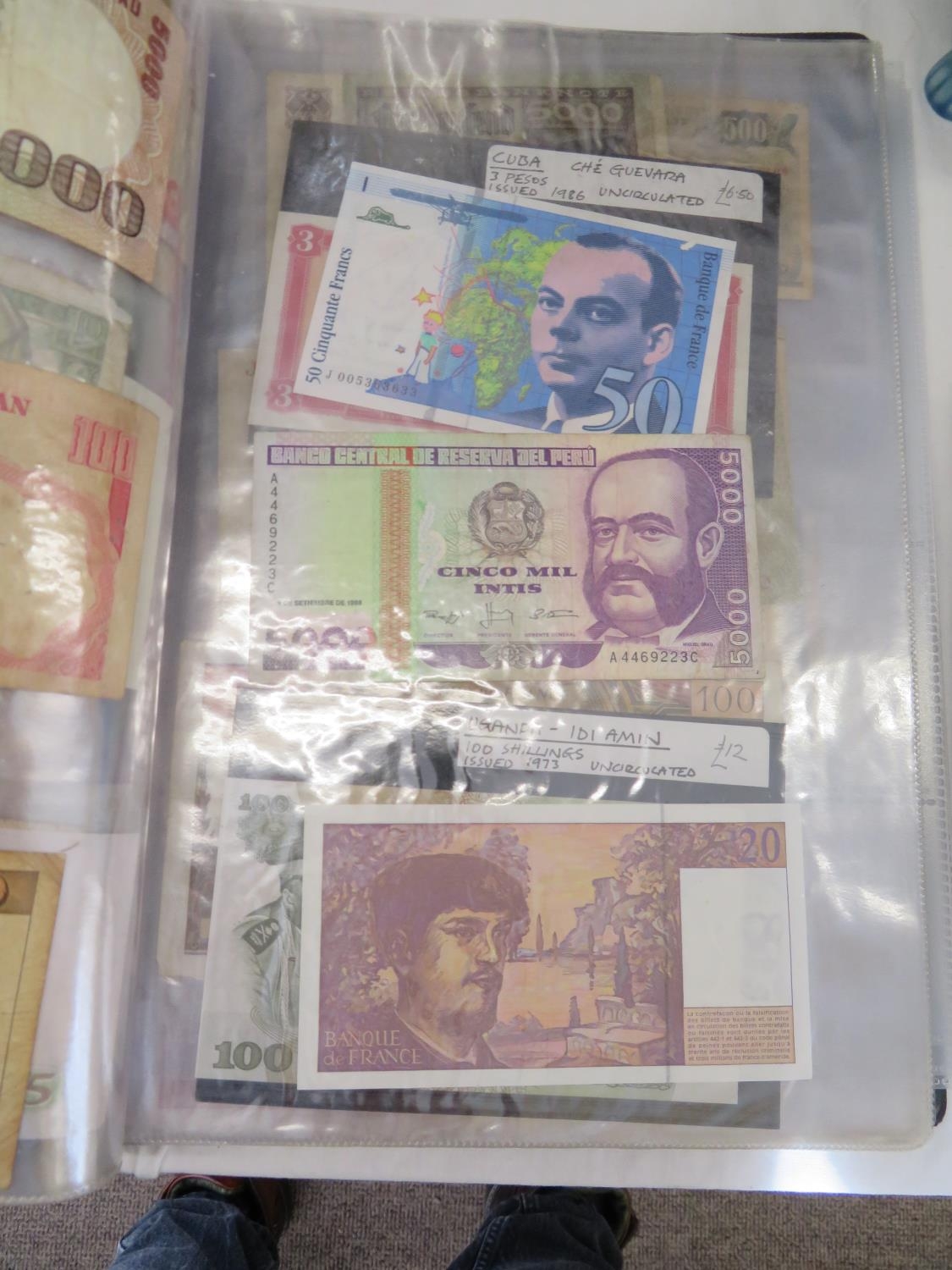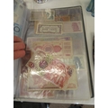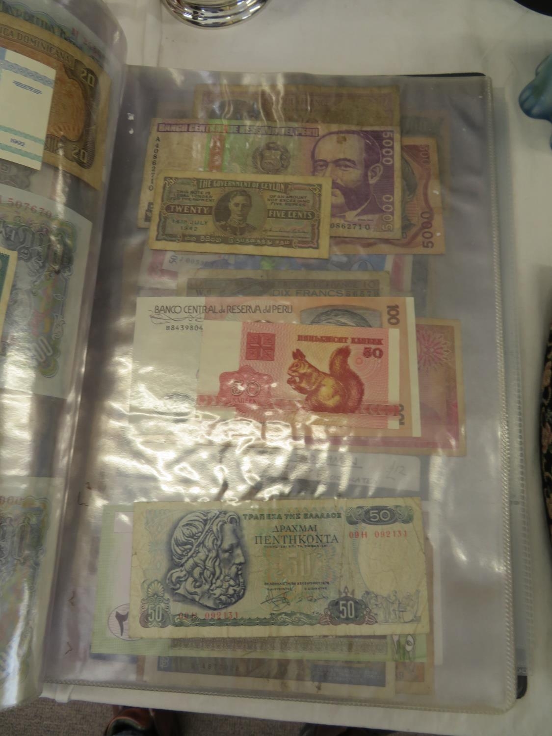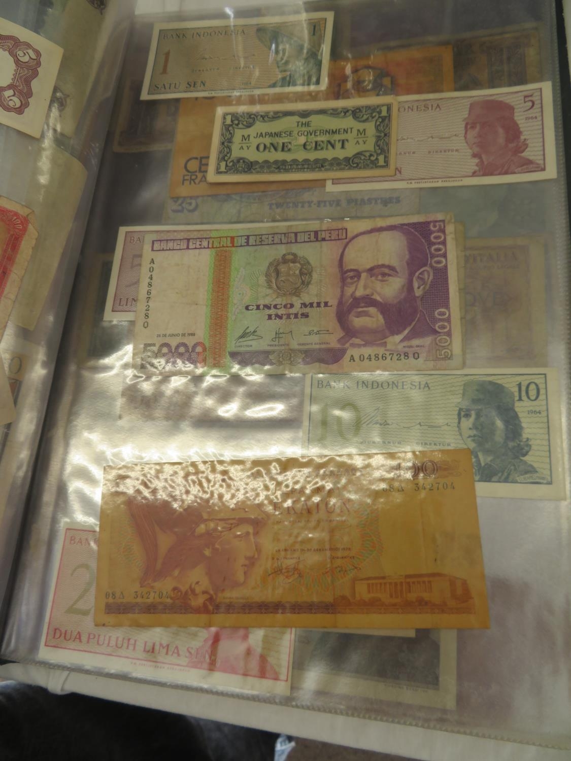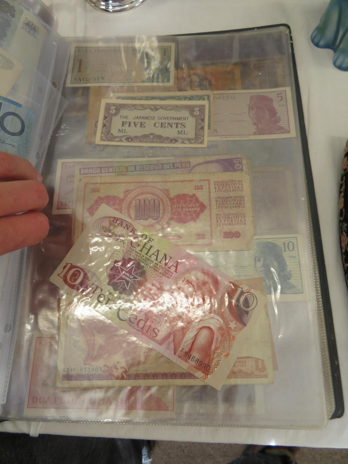 A folder full of numerous world wide bank notes