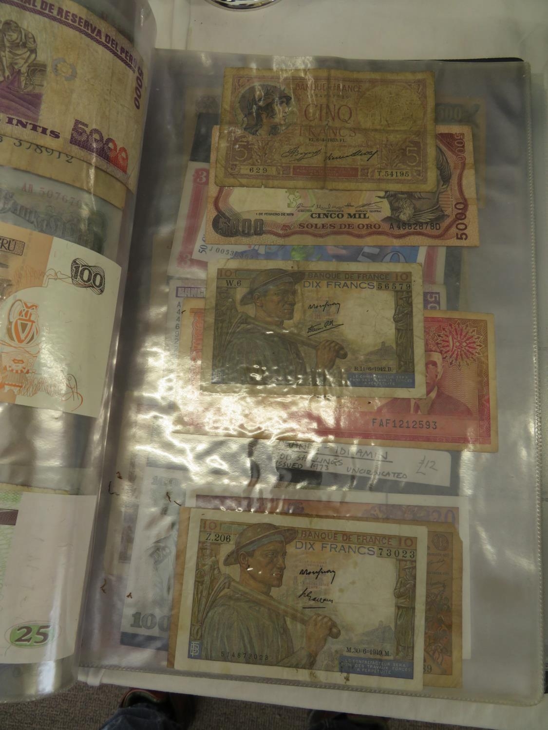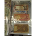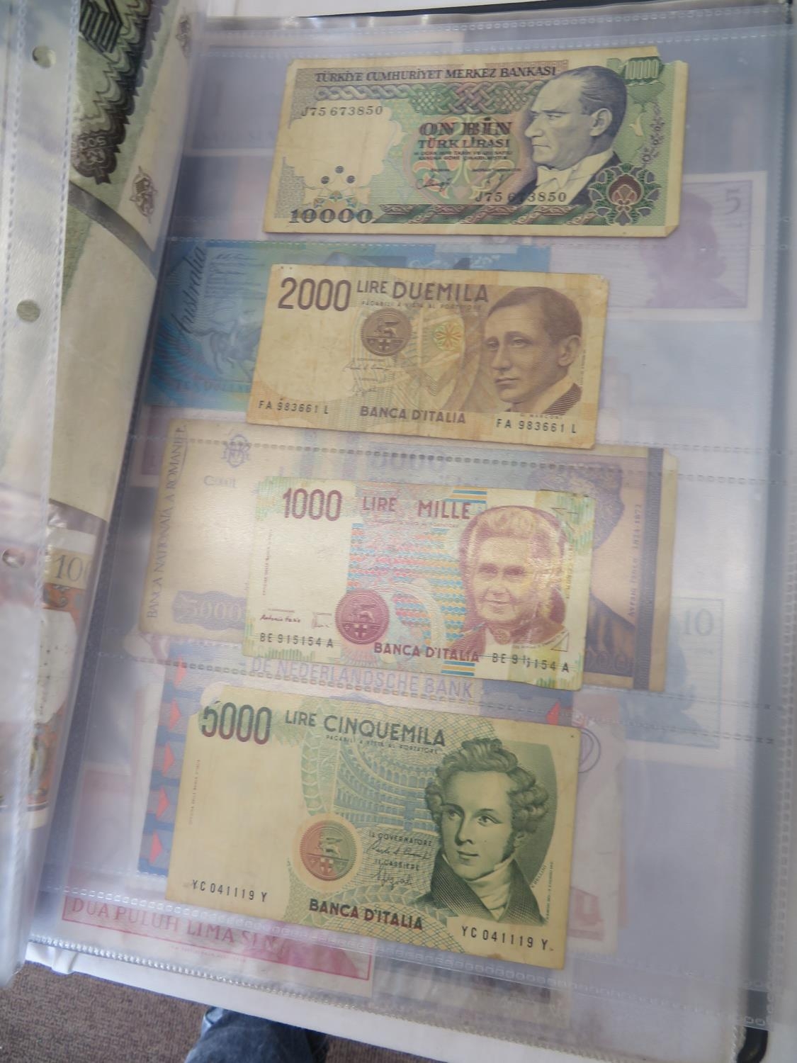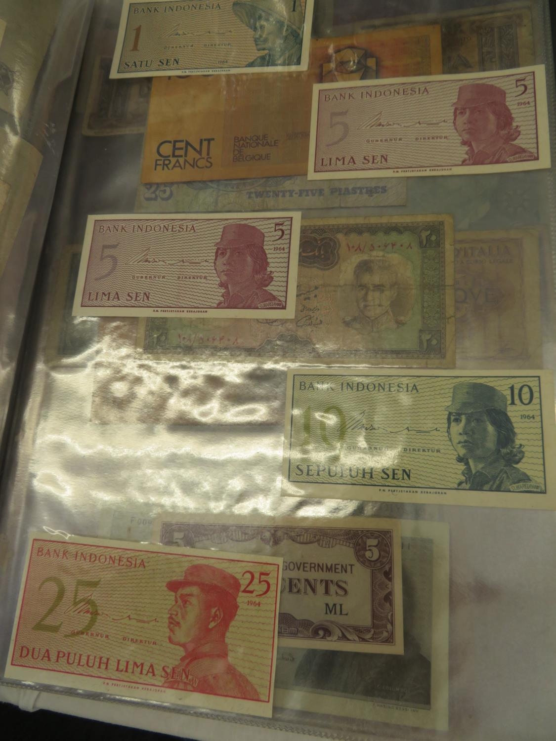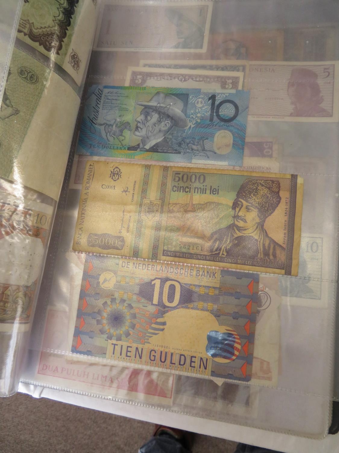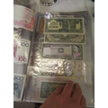 A folder full of numerous world wide bank notes