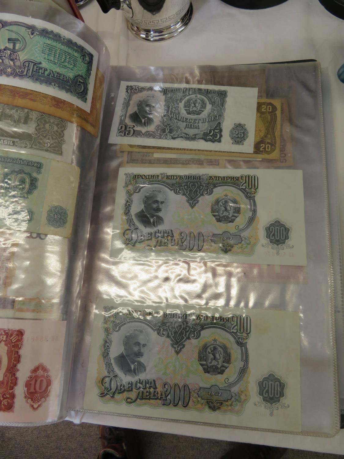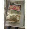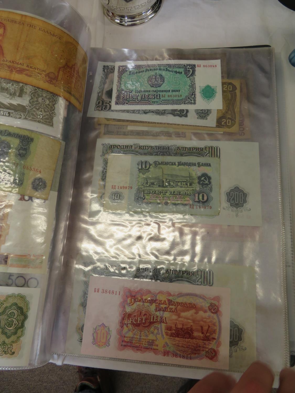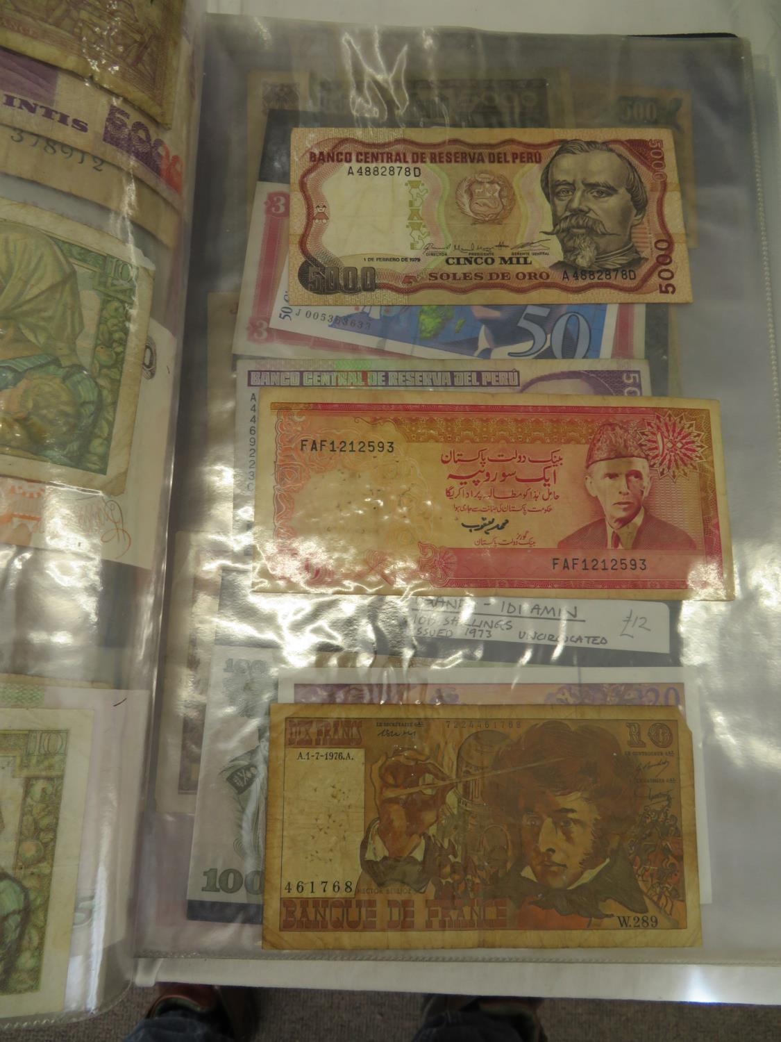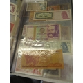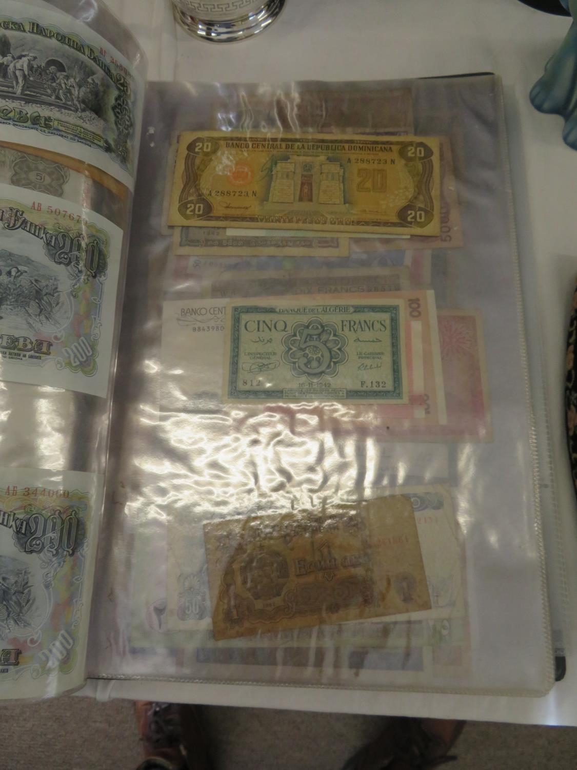 A folder full of numerous world wide bank notes