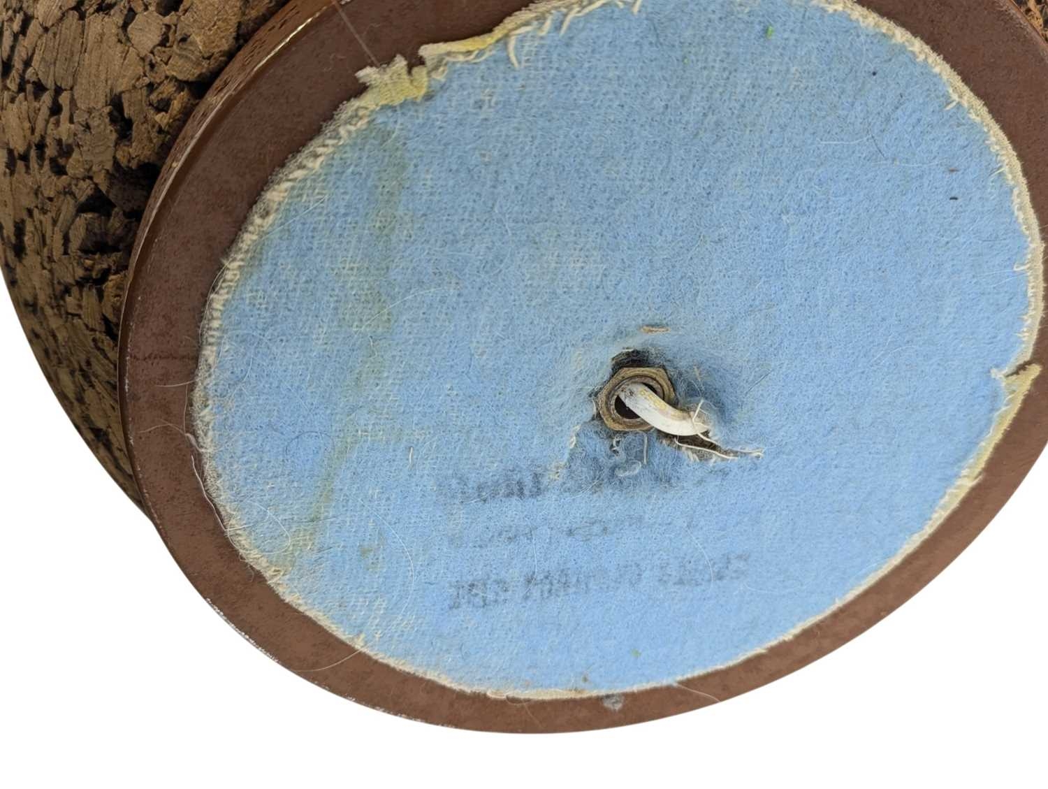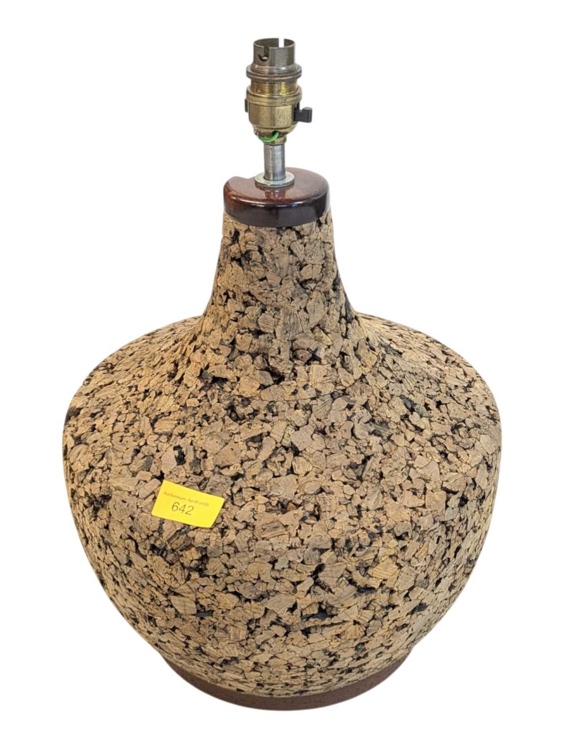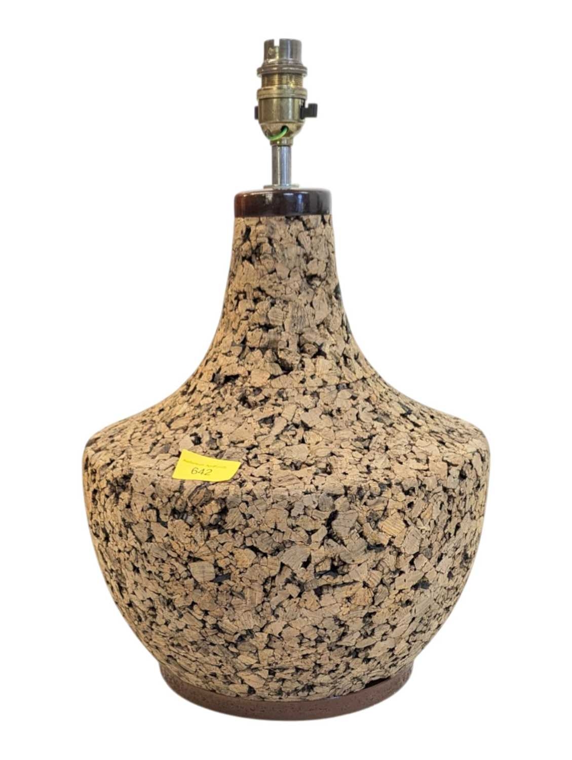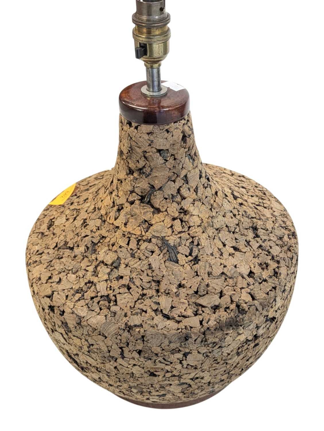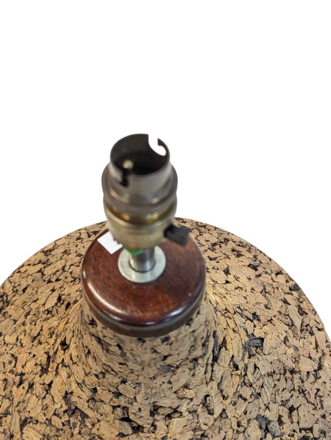 A vintage mid 20th century Scandinavian circa 1970s cork table lamp. Having teak top and base with cork construction and baluster form. Measures approx: 42x28cm