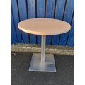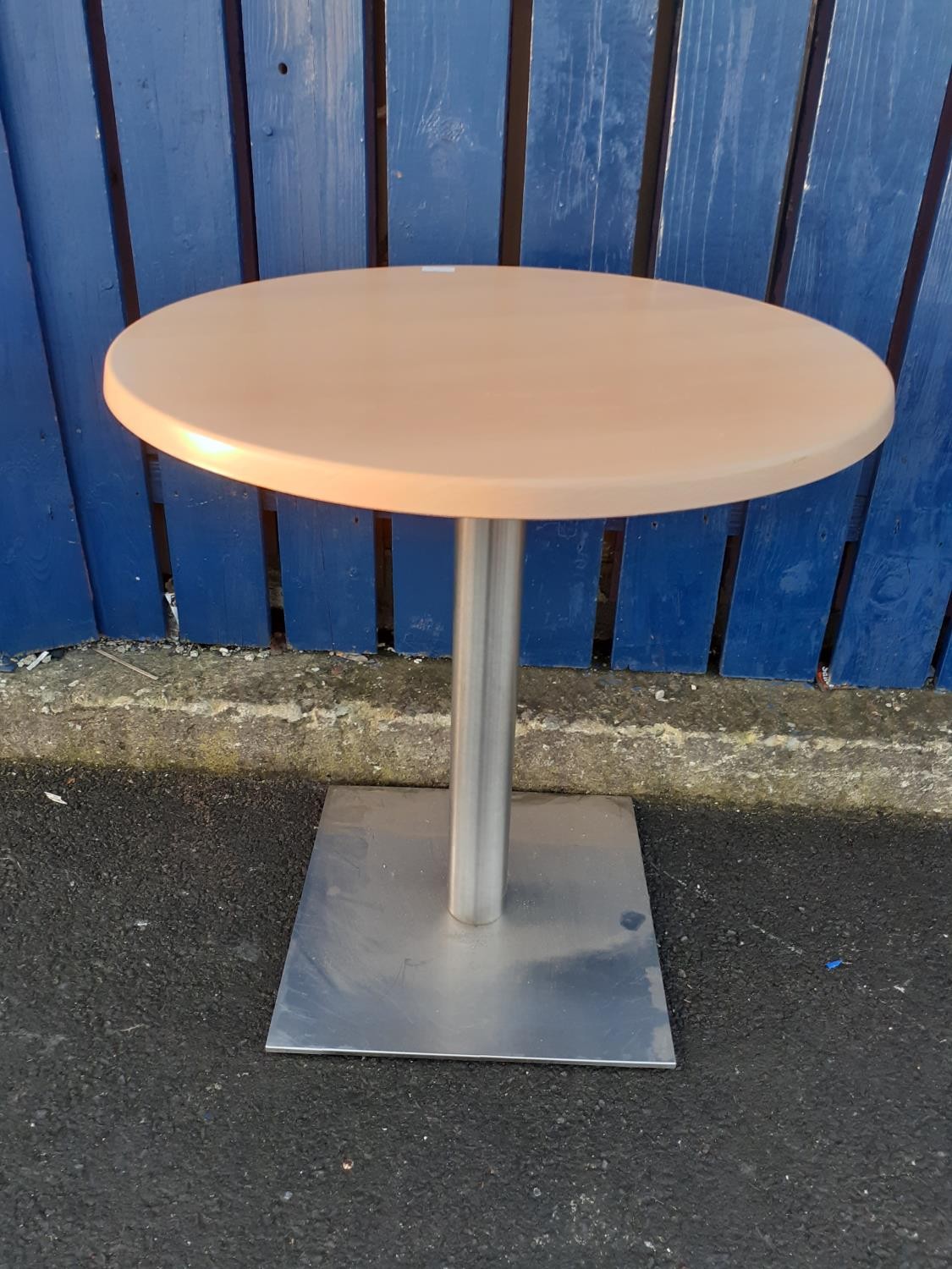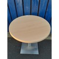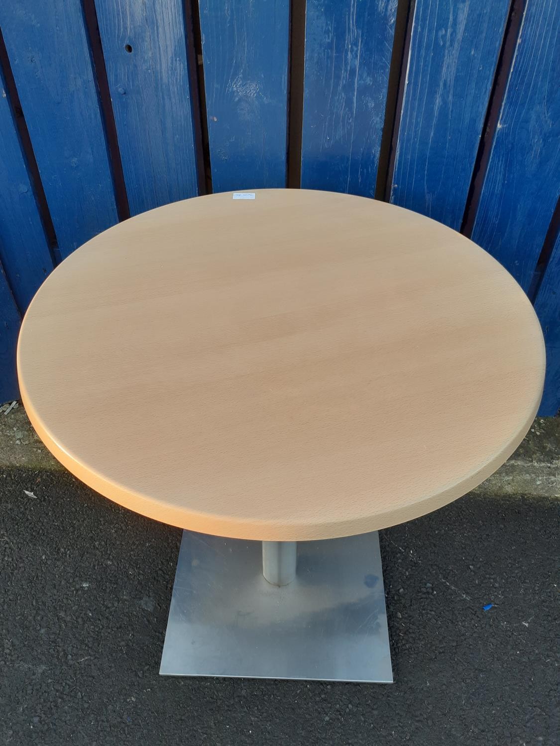A CIRCULAR BEECH TOP TABLE WITH CHROME BASE 27" DIAMETER TOP