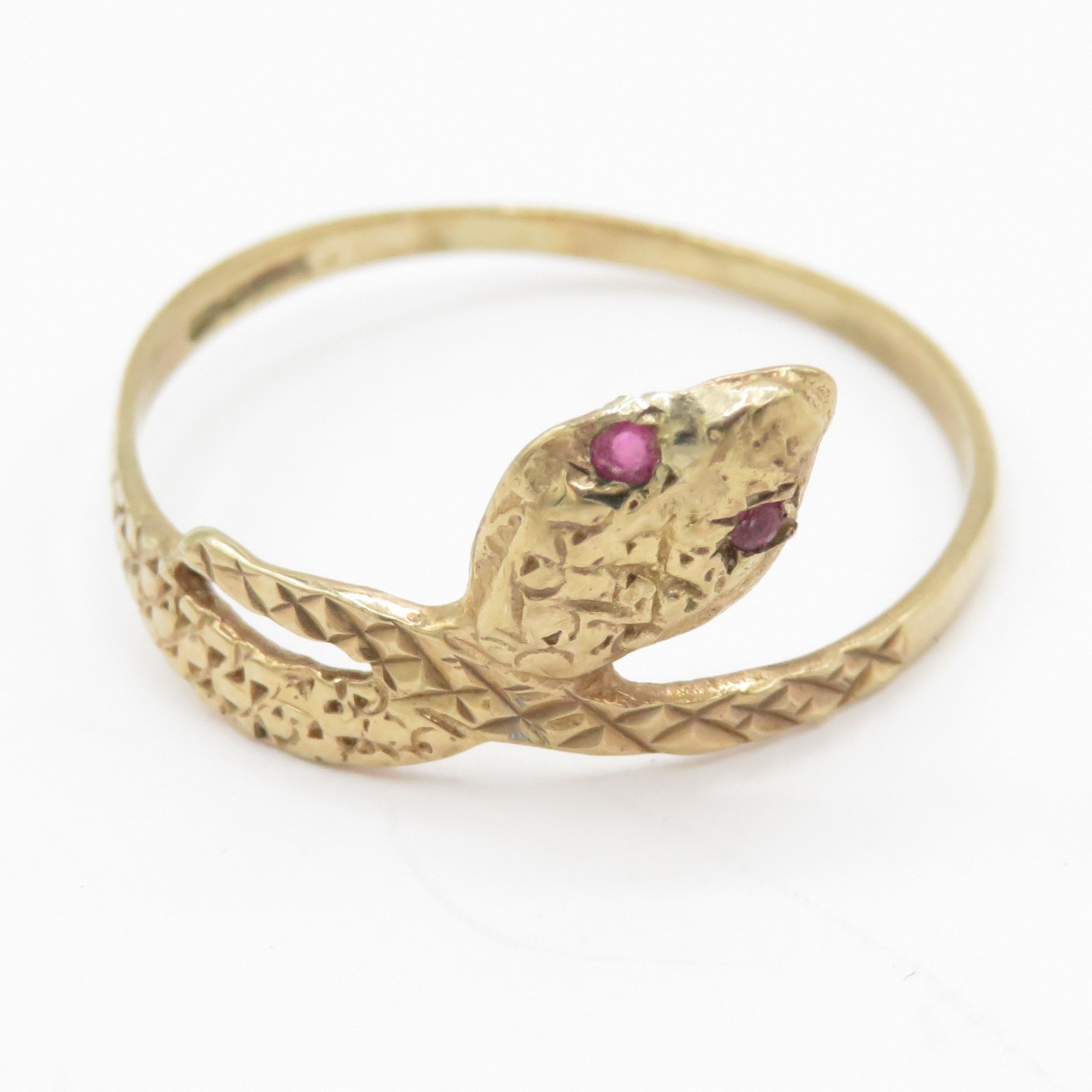 9ct gold ruby snake ring (1g) Size Q 1/2