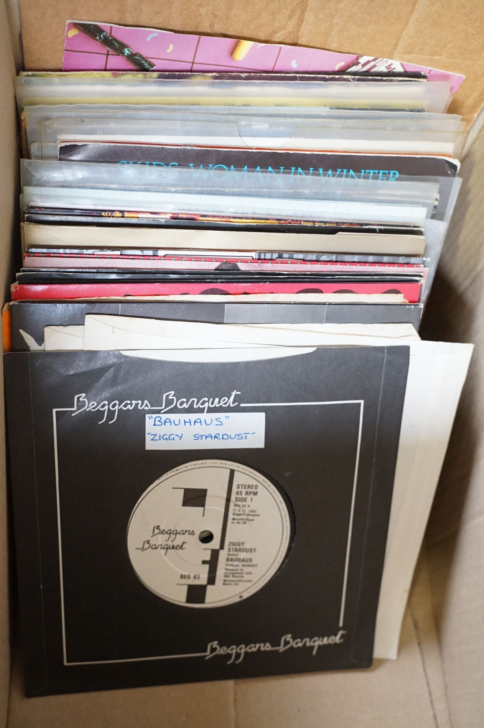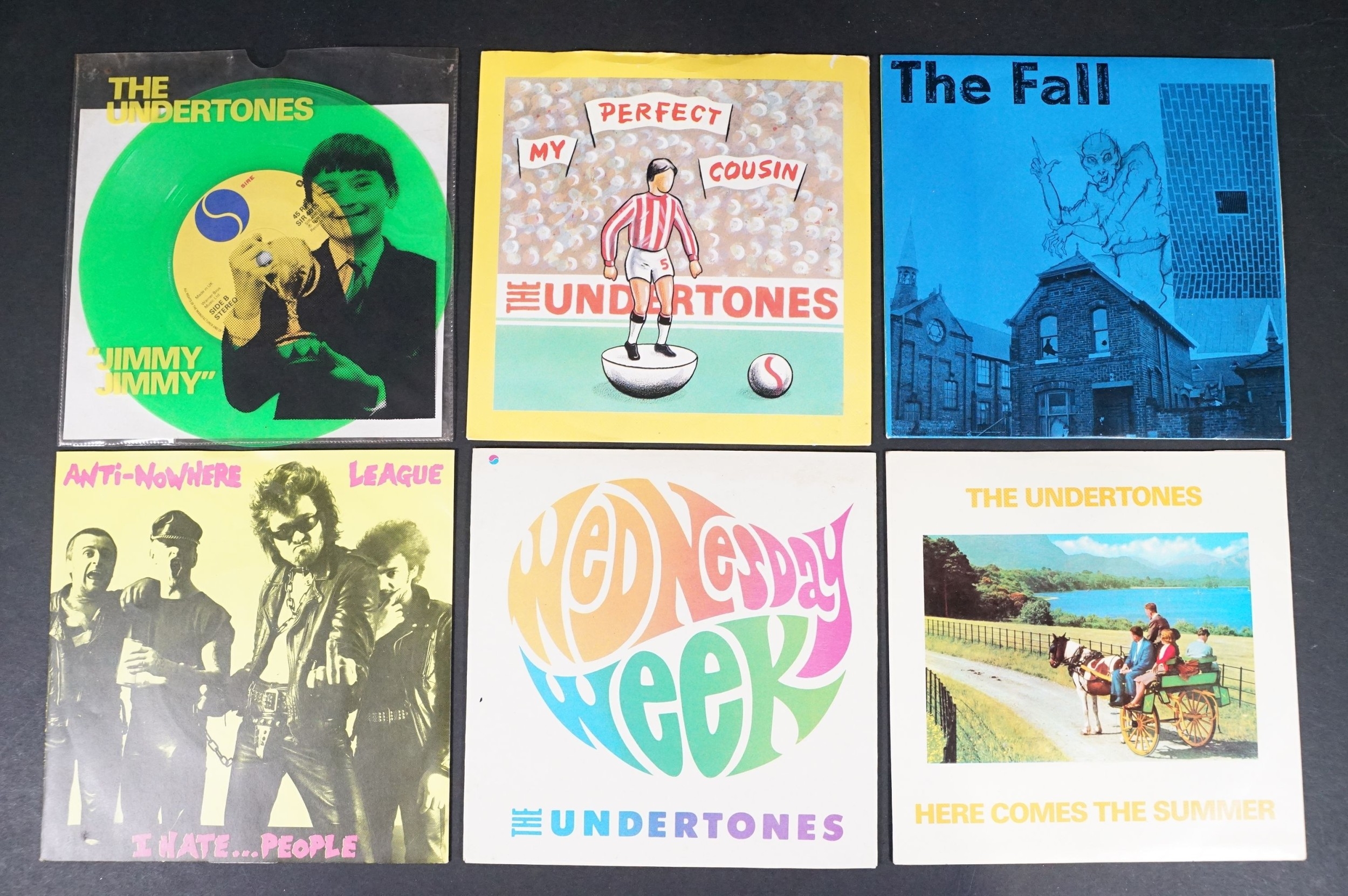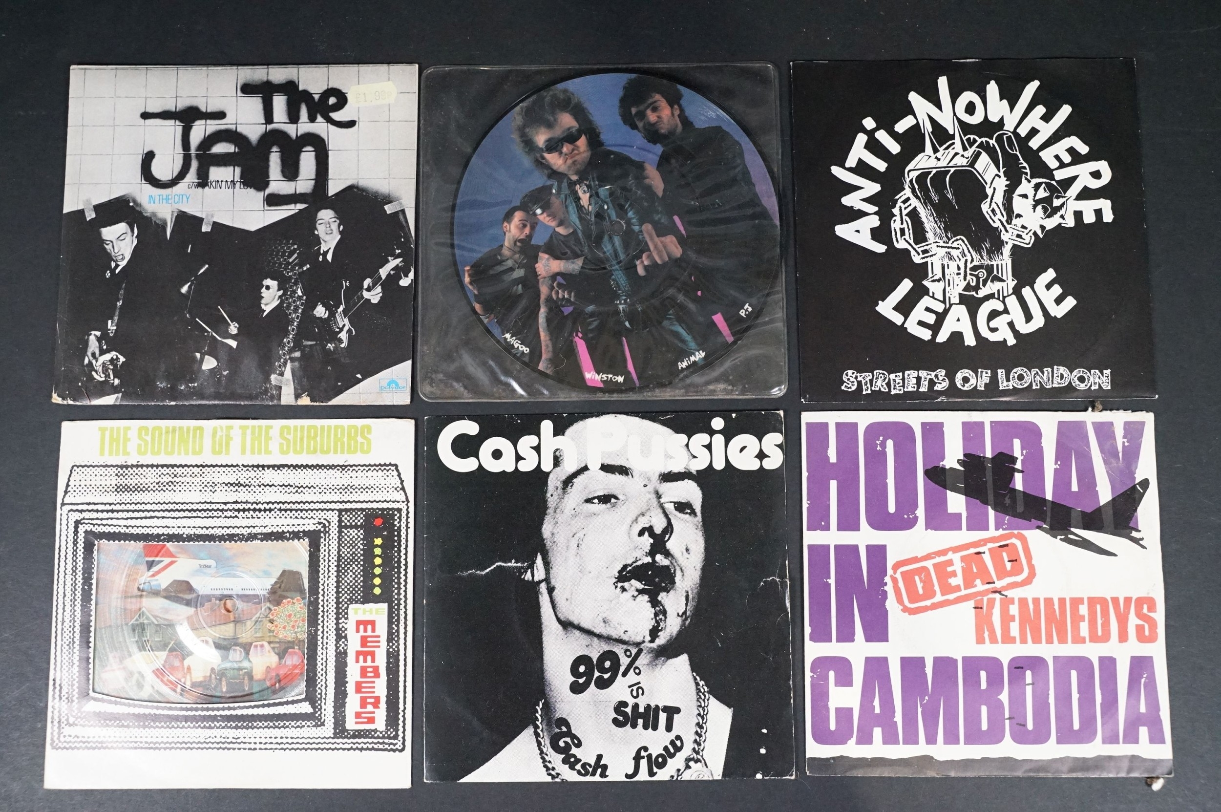 Vinyl - 66 Punk & New Wave 7" singles to include Ramones (yellow vinyl), The Fall, The Undertones x 4 (inc green vinyl), Anti Nowhere League x 3 (inc pic disc), The Jam, Dead Kennedys, Cash Pussies, The Members (clear vinyl), Angelic Upstarts (red vinyl), The Exploited x 3, Sham 69 x 2, Vice Squad, Captain Sensible (Crass Records), Peter & The Test Tube Babies, 999, The Vibrators, Honey Bane (Crass Records), Crass, Bauhaus x 2, Generation X, Devo, The Lurkers (double), The Dickies x 2 (inc coloured), The Ruts x 3, Siouxsie & The Banshees x 2, Buzzcocks x 2, Stiff Little Fingers, XTC x 2 and others. Vg+ overall