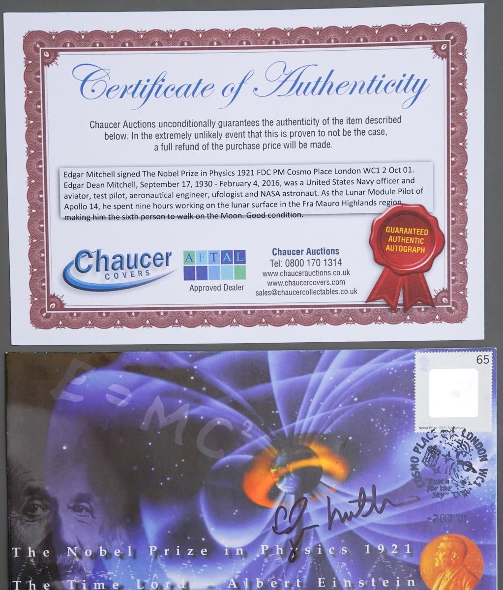 Edgar Mitchell signed The Nobel Prize in Physics 1921 1st Day Cover, post mark Cosmo Place London WC1 2 Oct 01 [1]