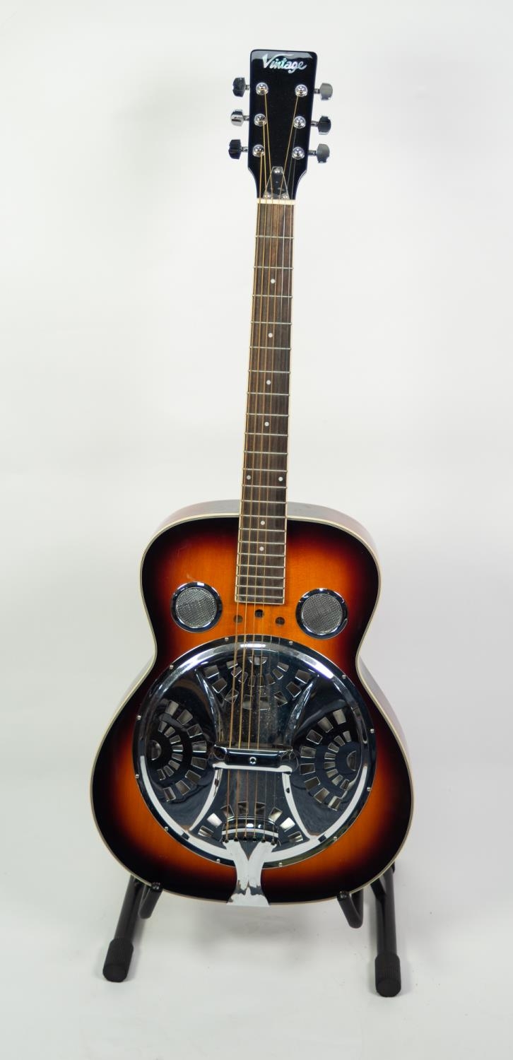 ’VINTAGE’ VRA-400VSB RESONATOR GUITAR, in sunburst, in a BOSTON black soft case