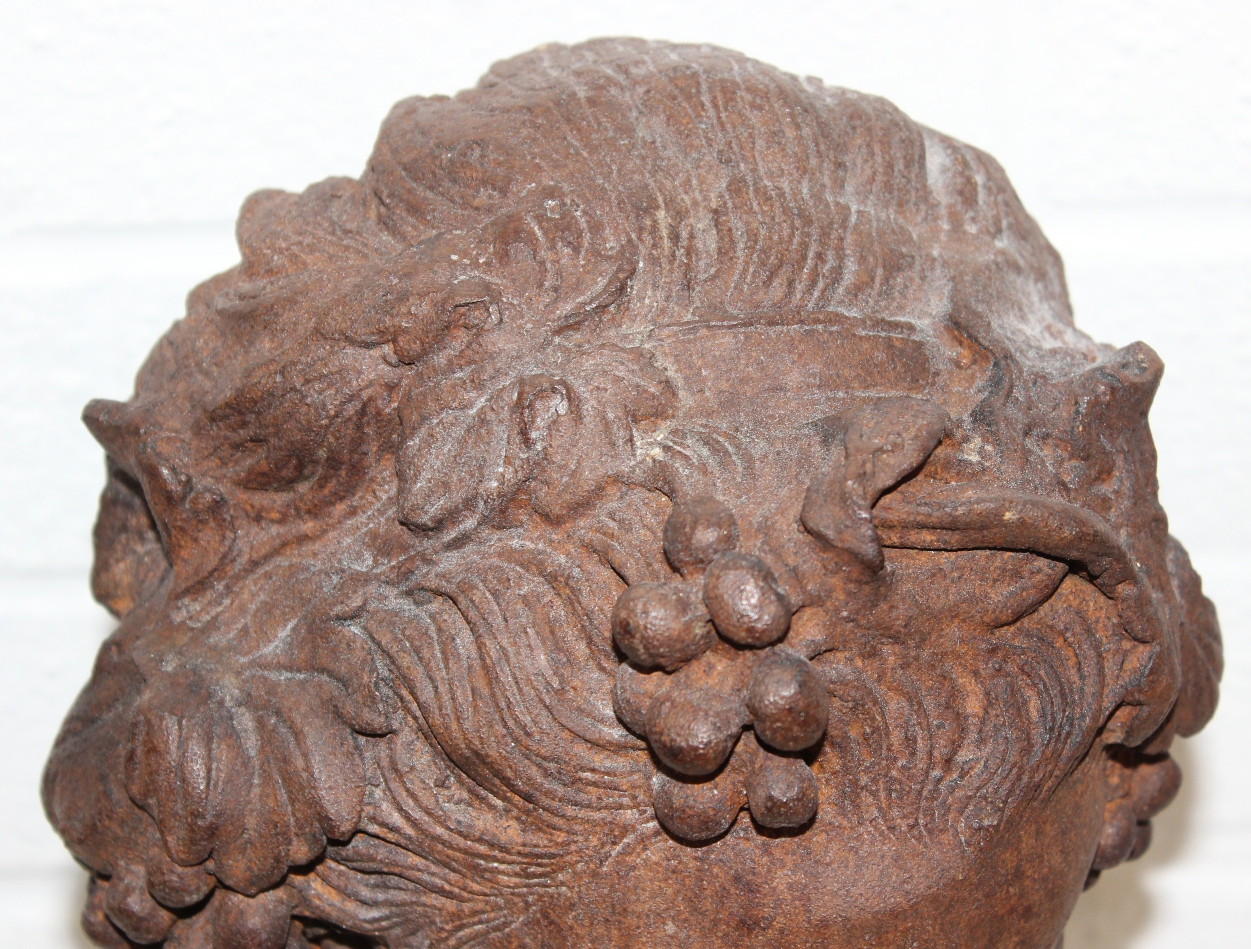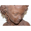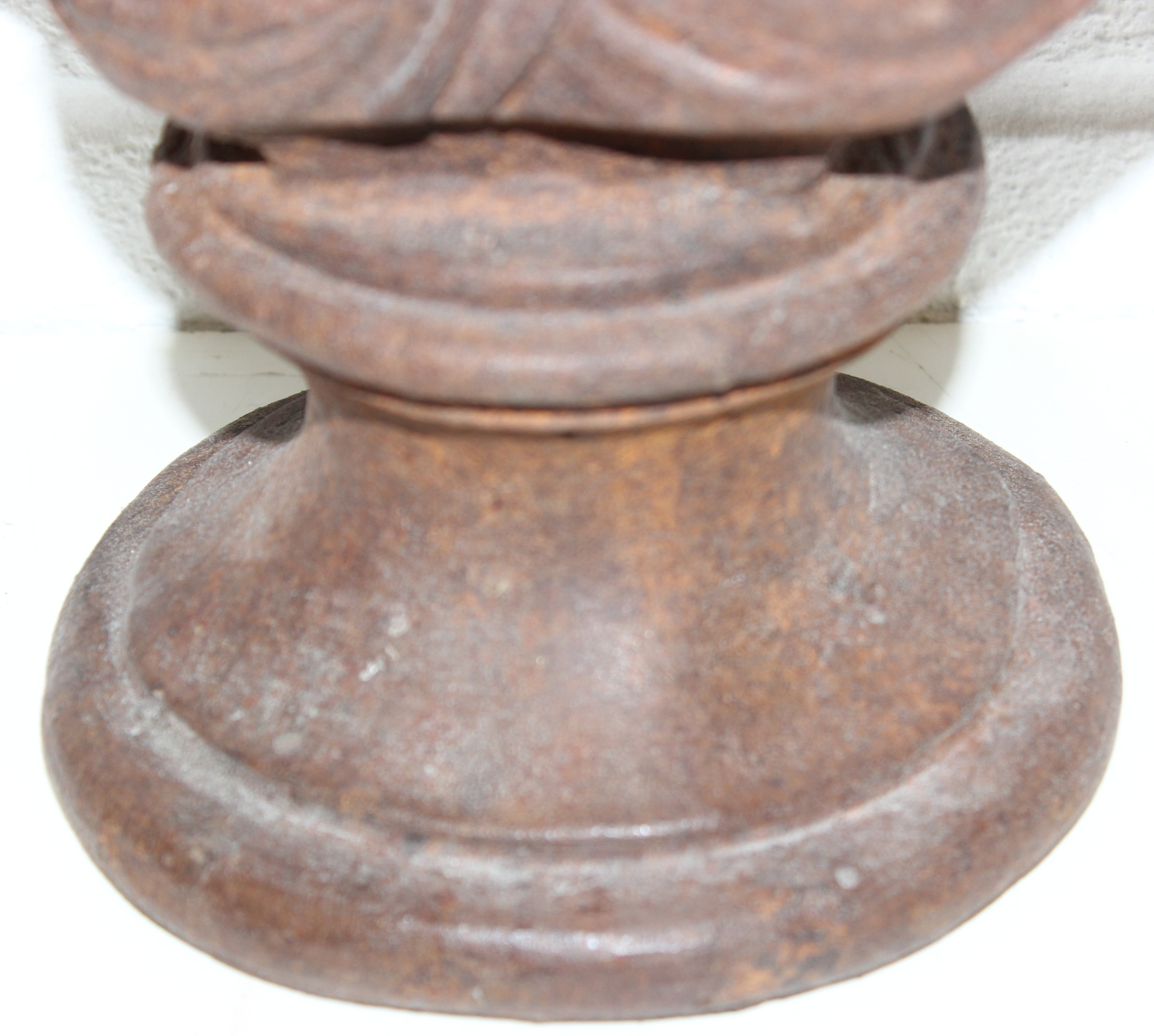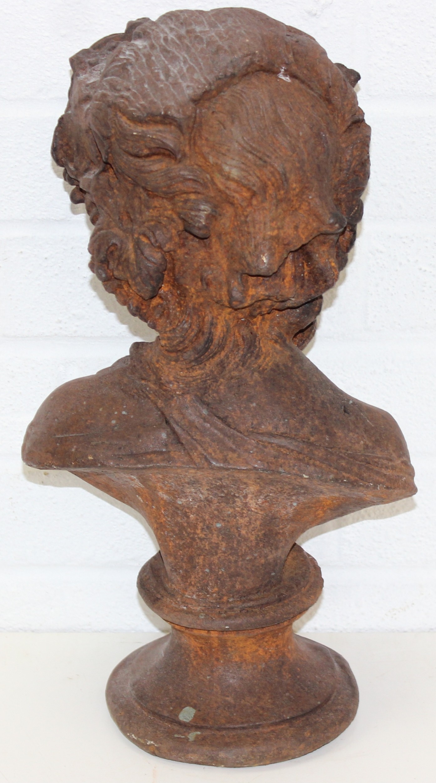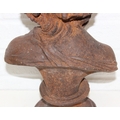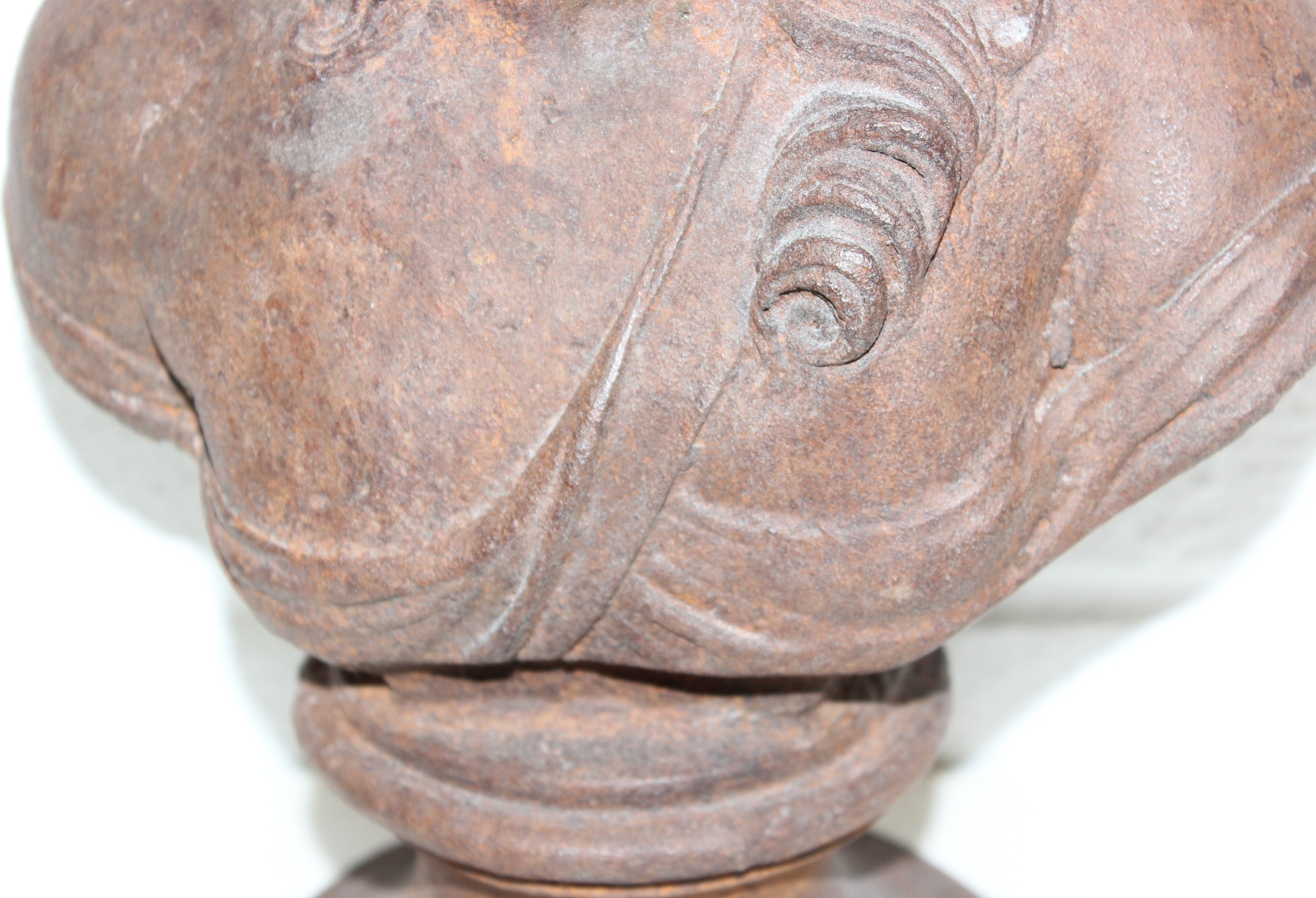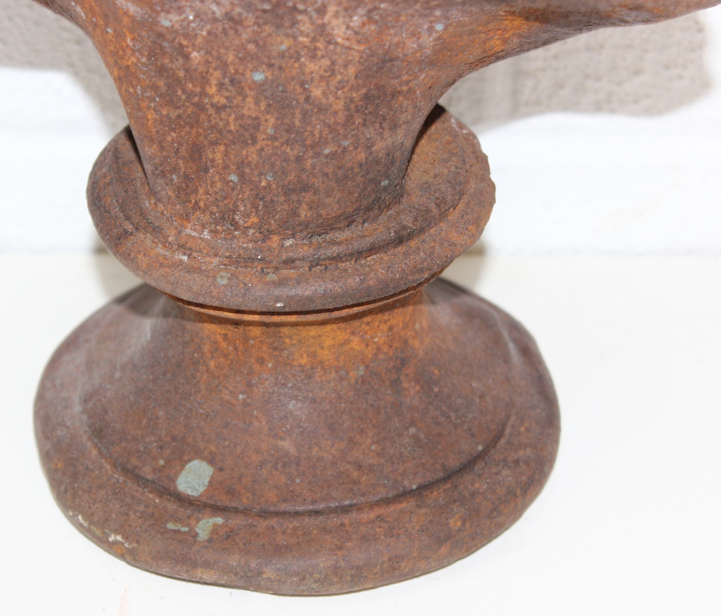 After Jean-Antoine Houdon (French, 1741–1828), a distressed cast iron bust sculpture depicting a young maenad or classical girl with grapes and vines in her hair, unsigned, 20th century, 45cm tall