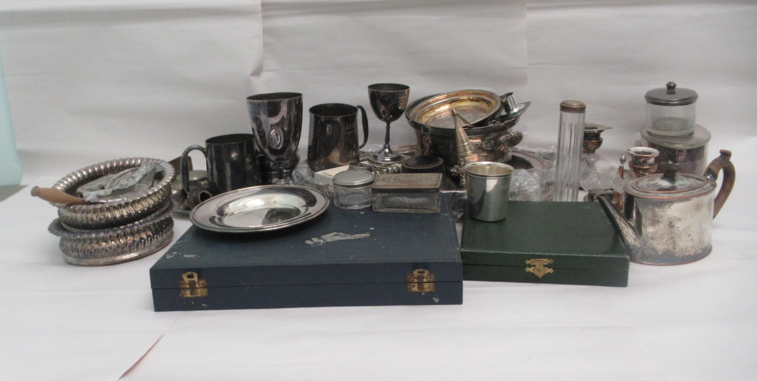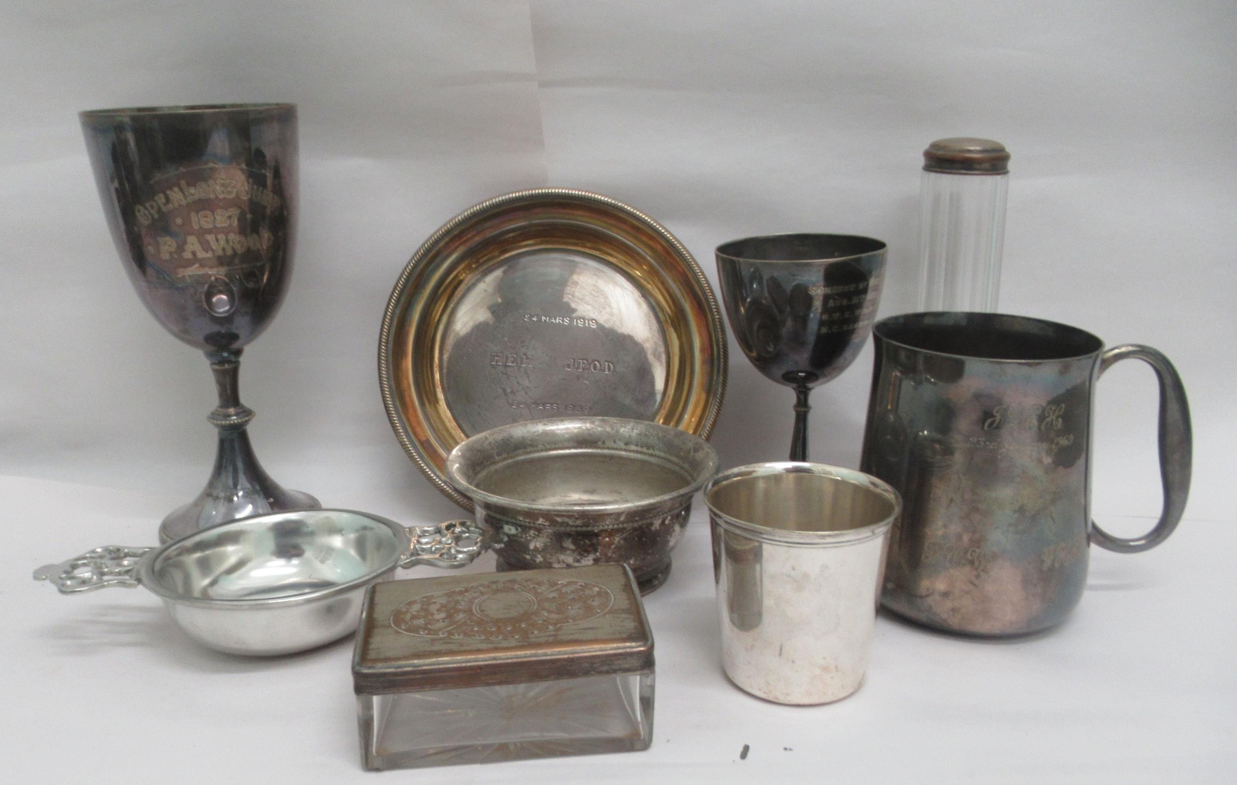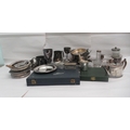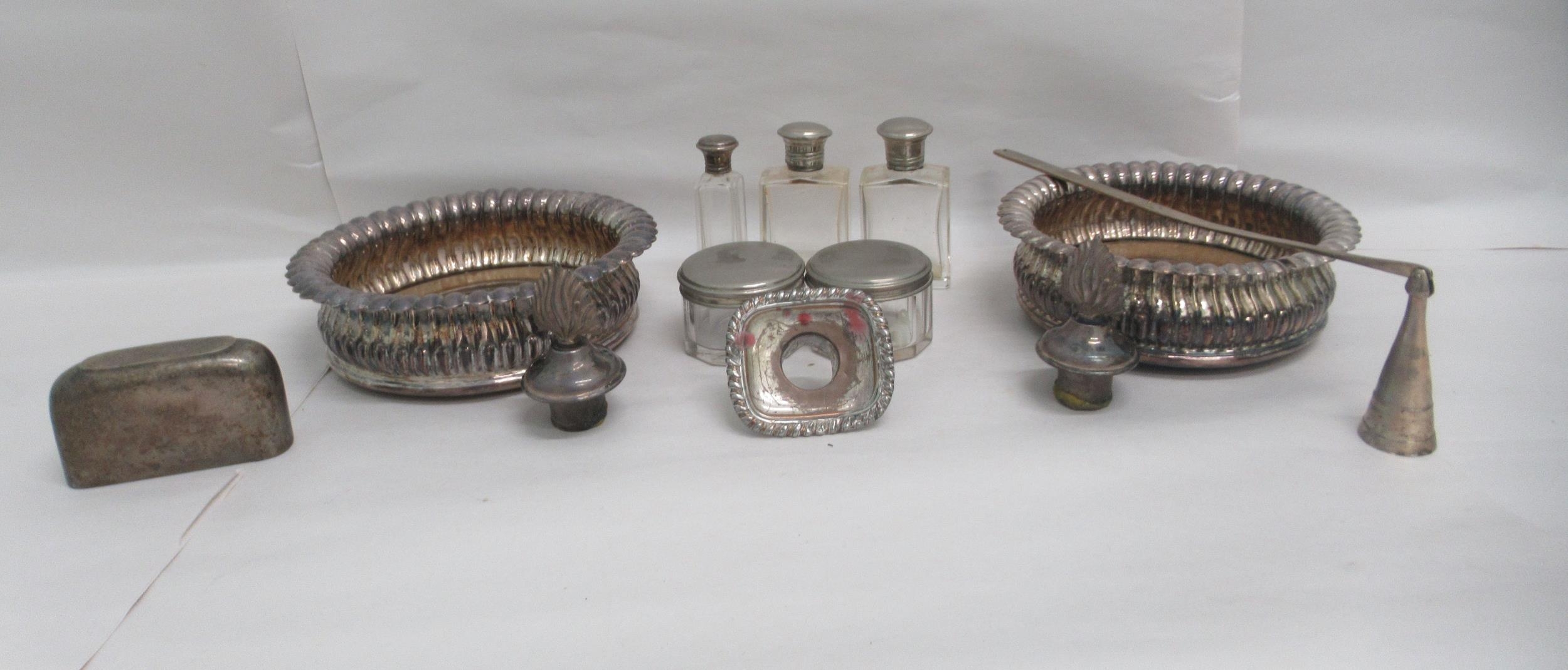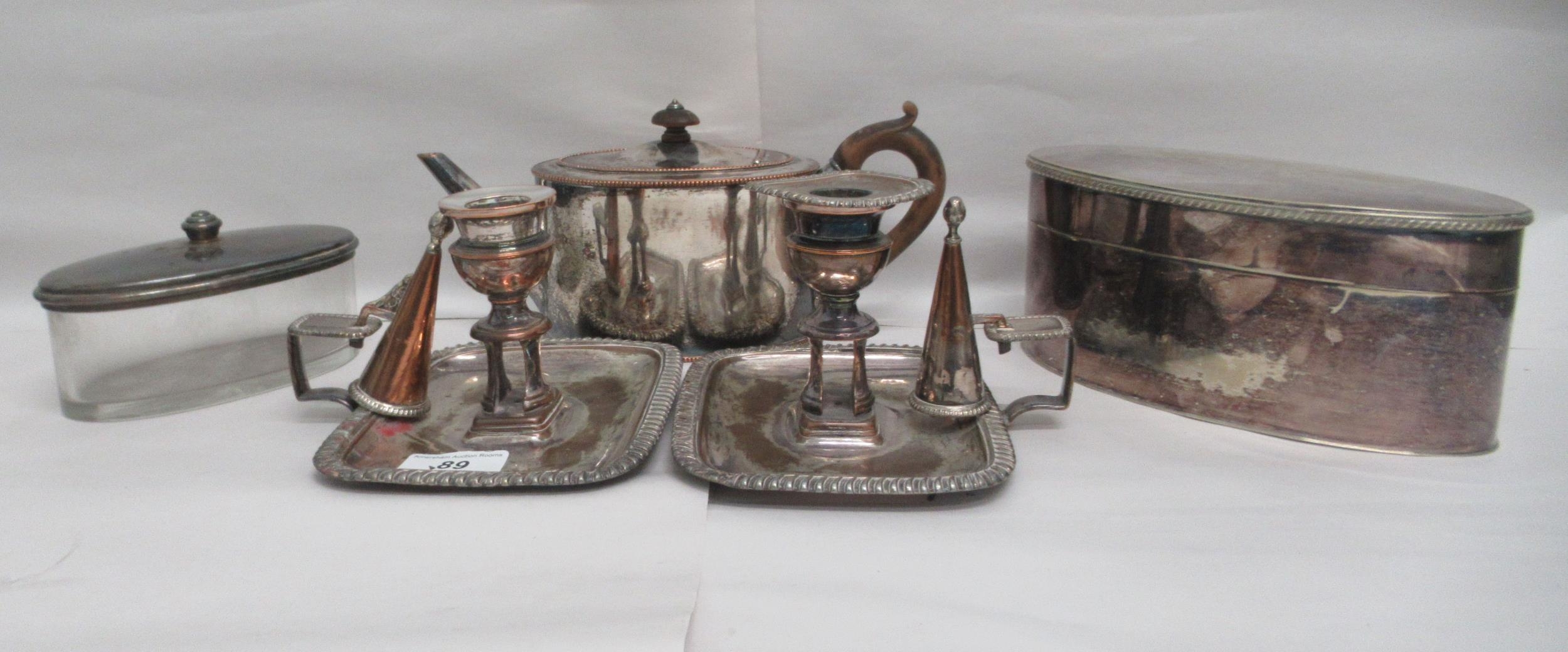 Silver plate: to include a pair of late Victorian chambersticks 6"h