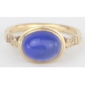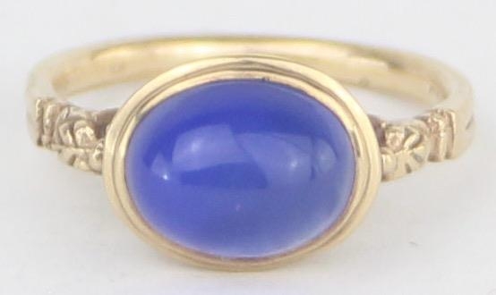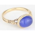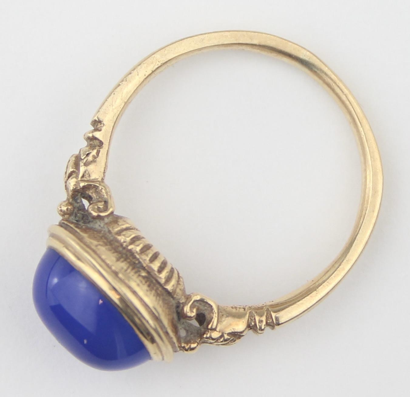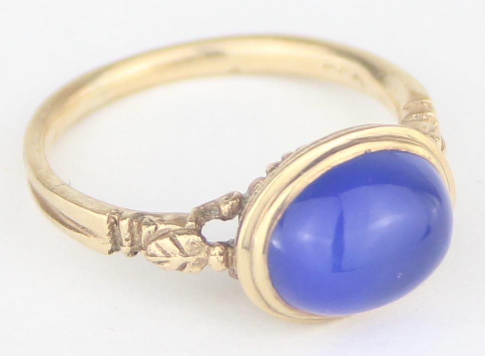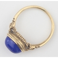 [3.25g, M] - a 9ct gold dress ring set with blue cabochon stone, indistinctly marked but XRF confirmed