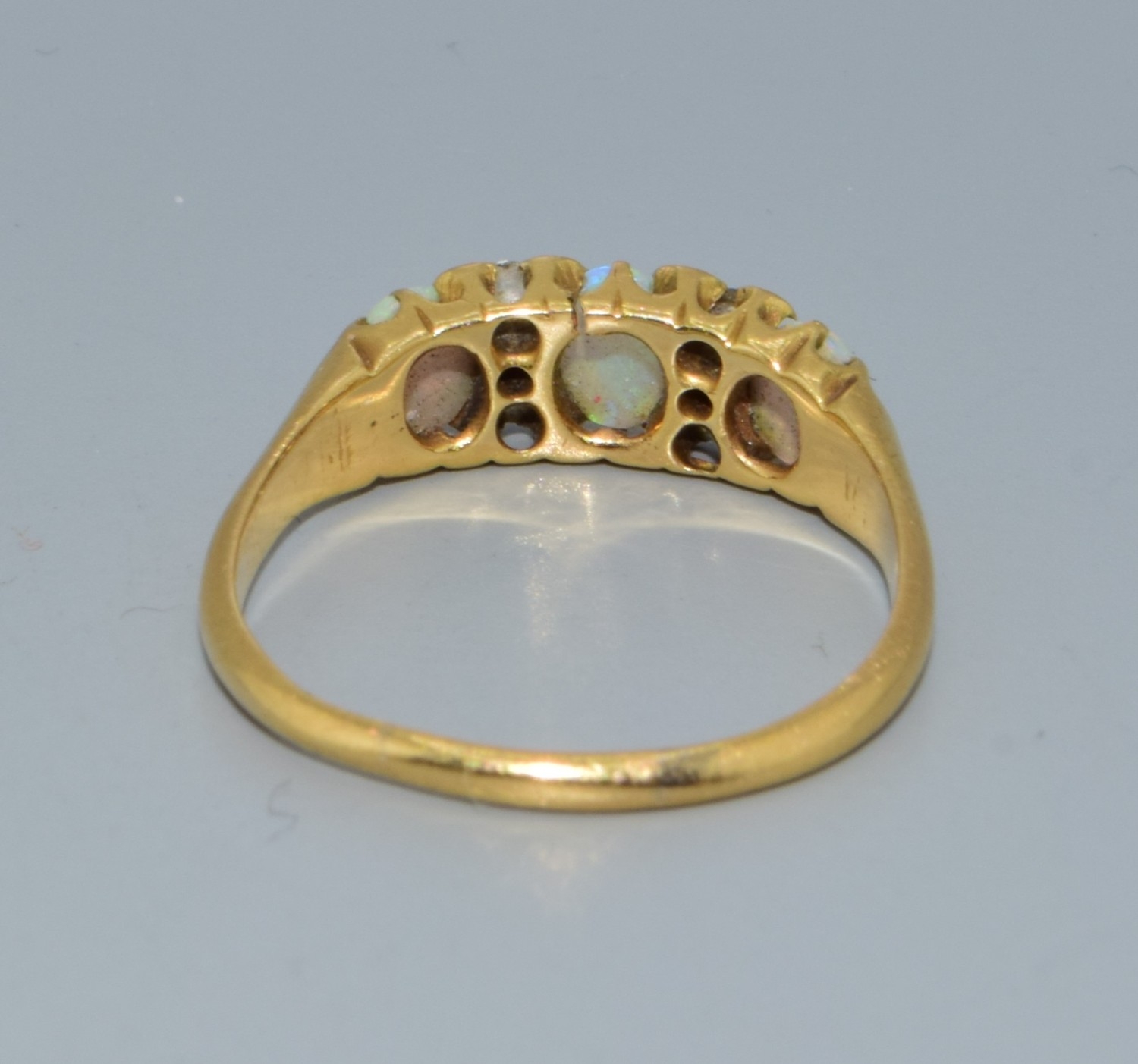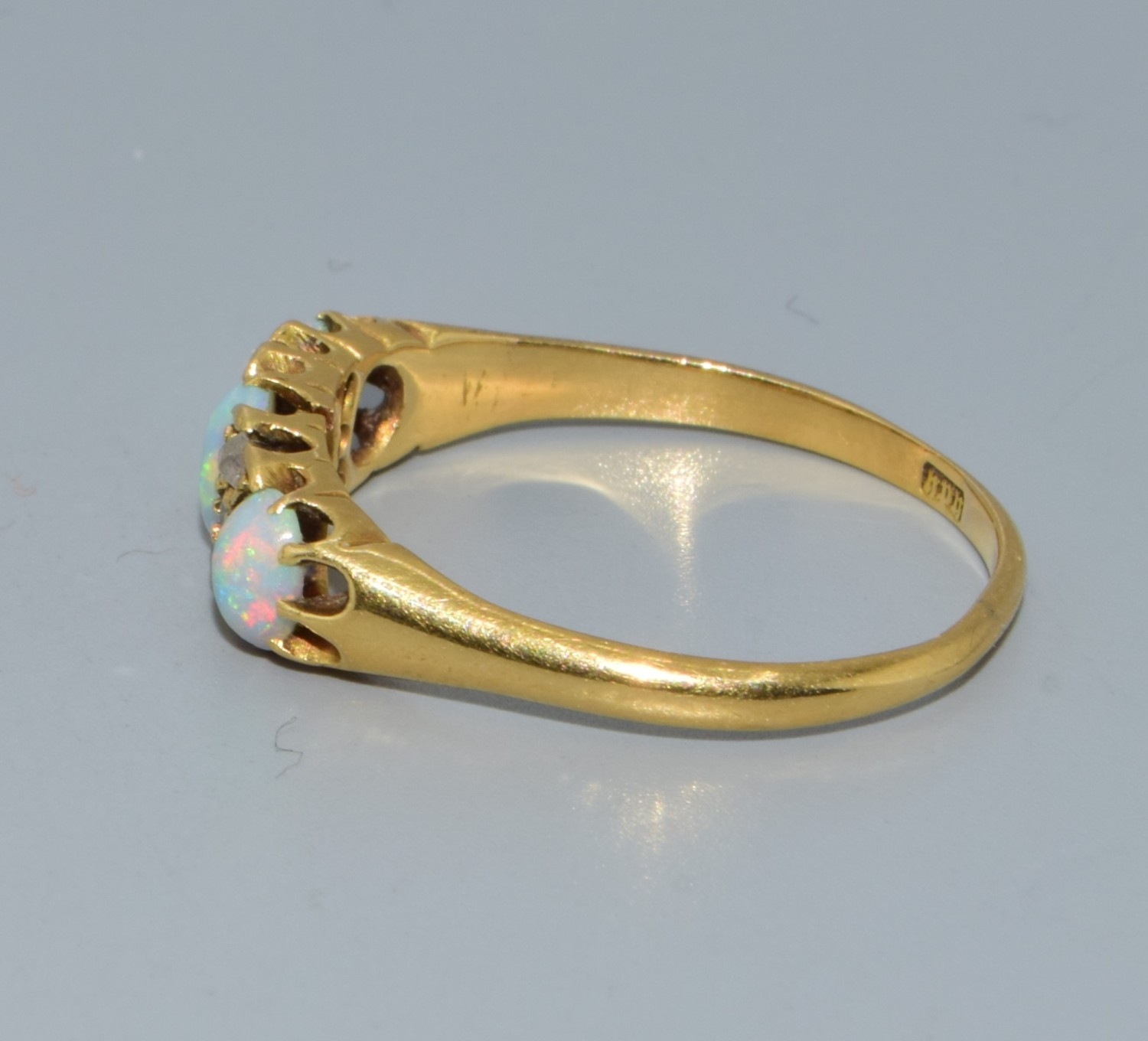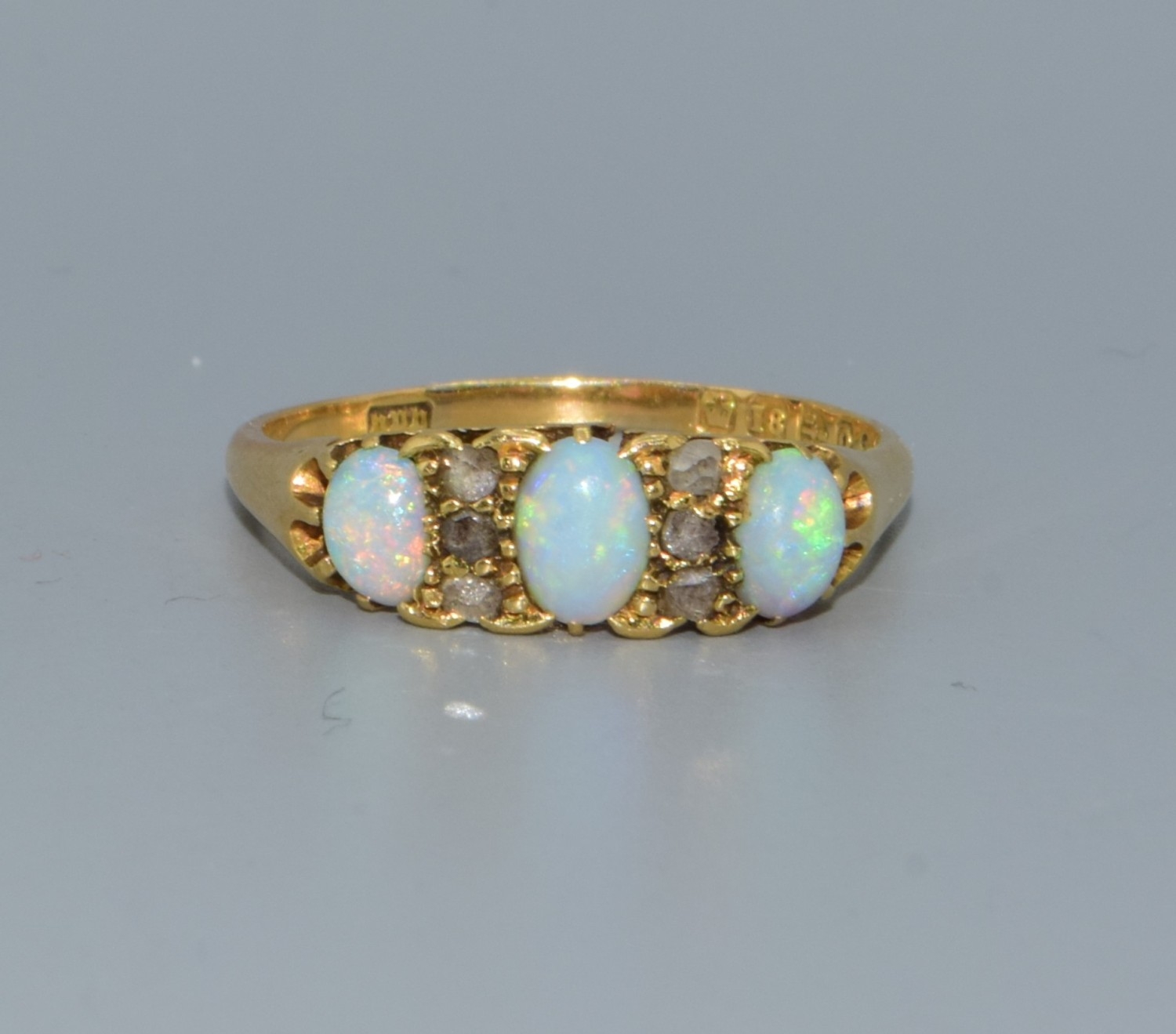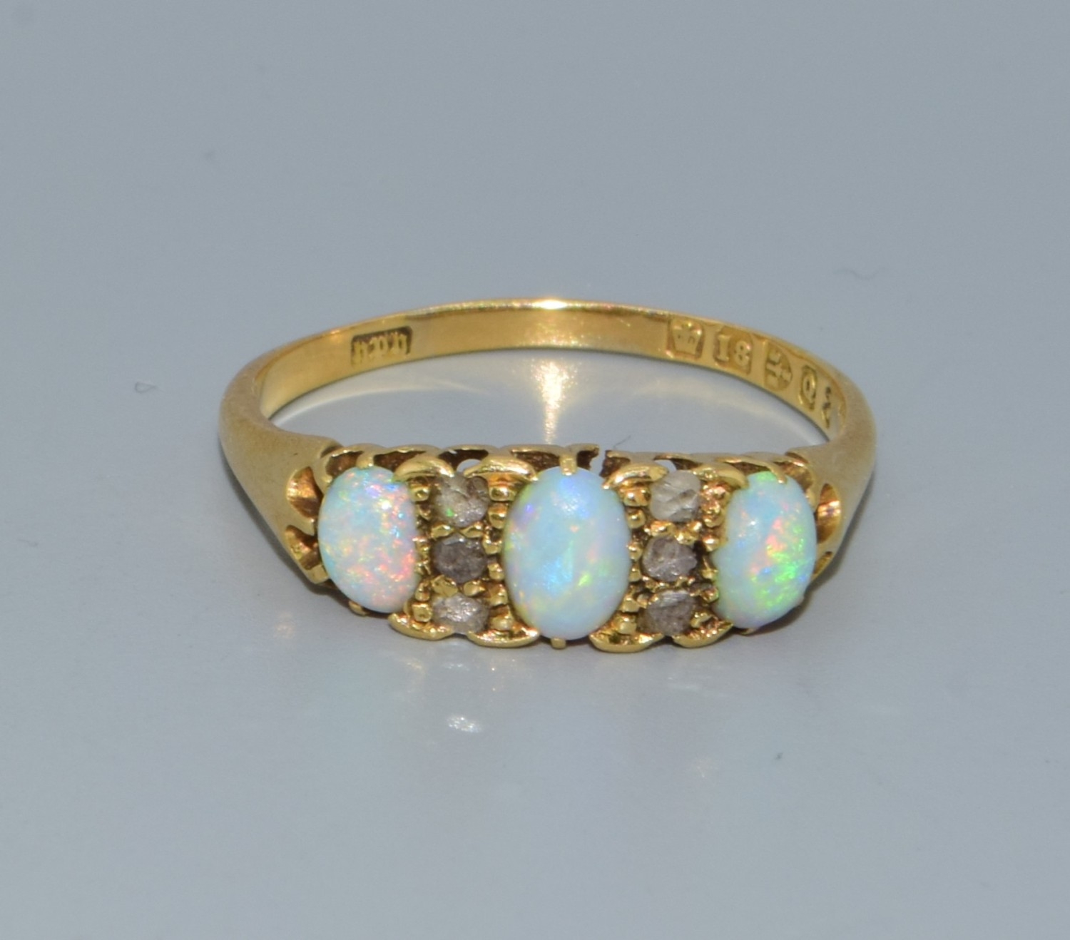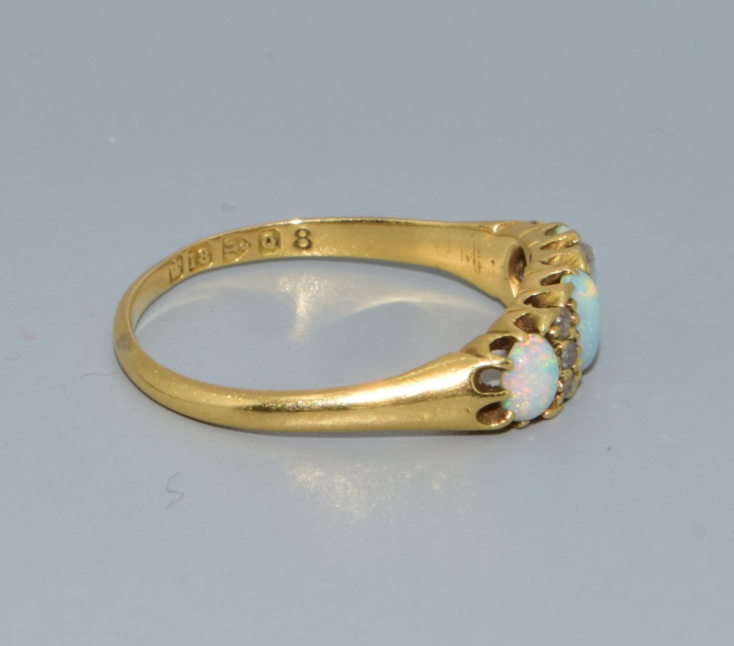 Superb vintage ladies 18ct gold vintage Opal and Diamond ring size P. 3.1grams