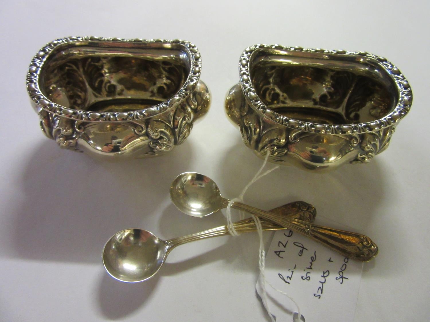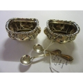 PAIR OF SILVER SALTS AND SPOONS
