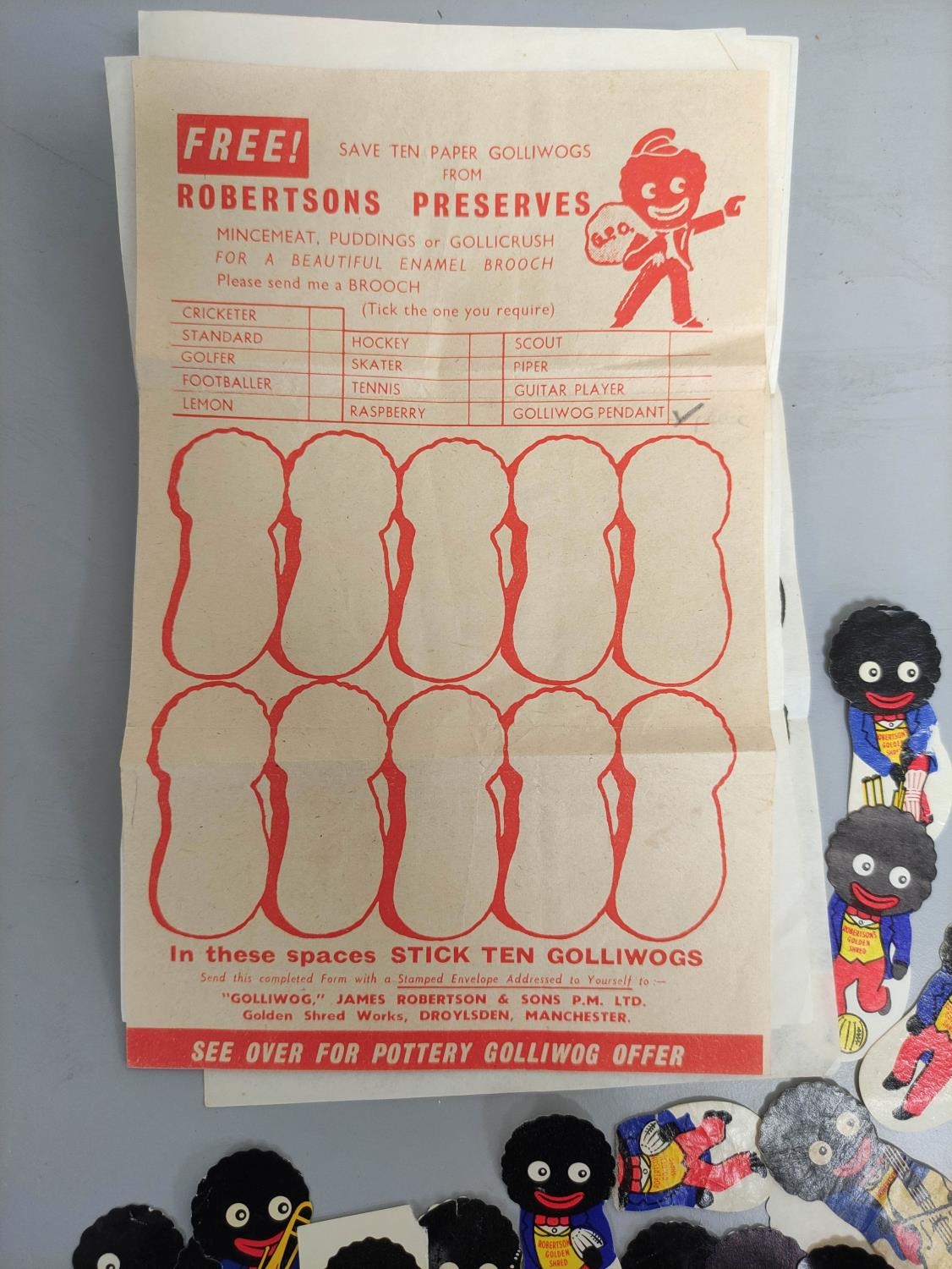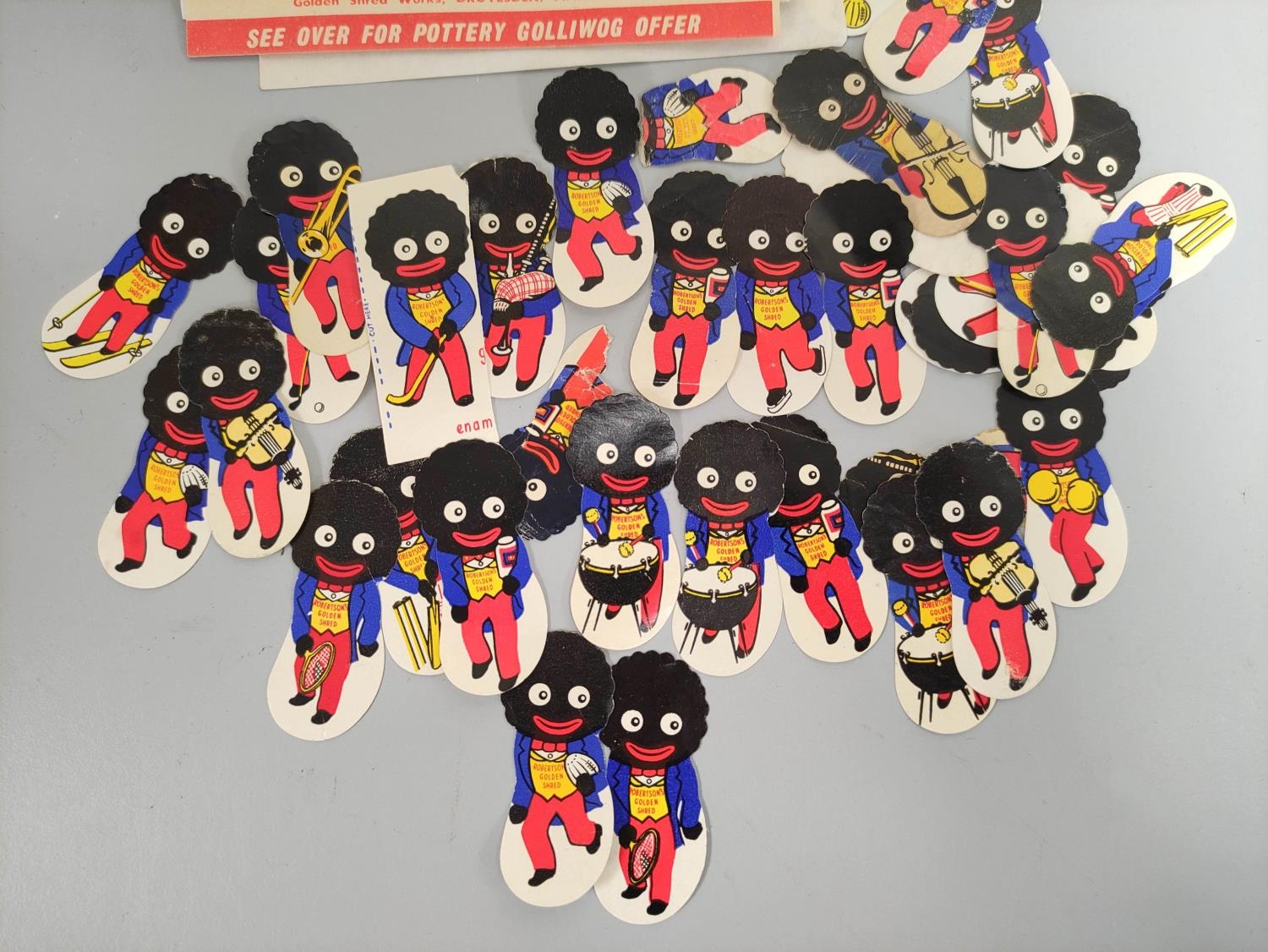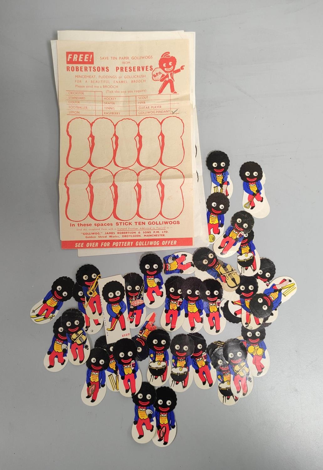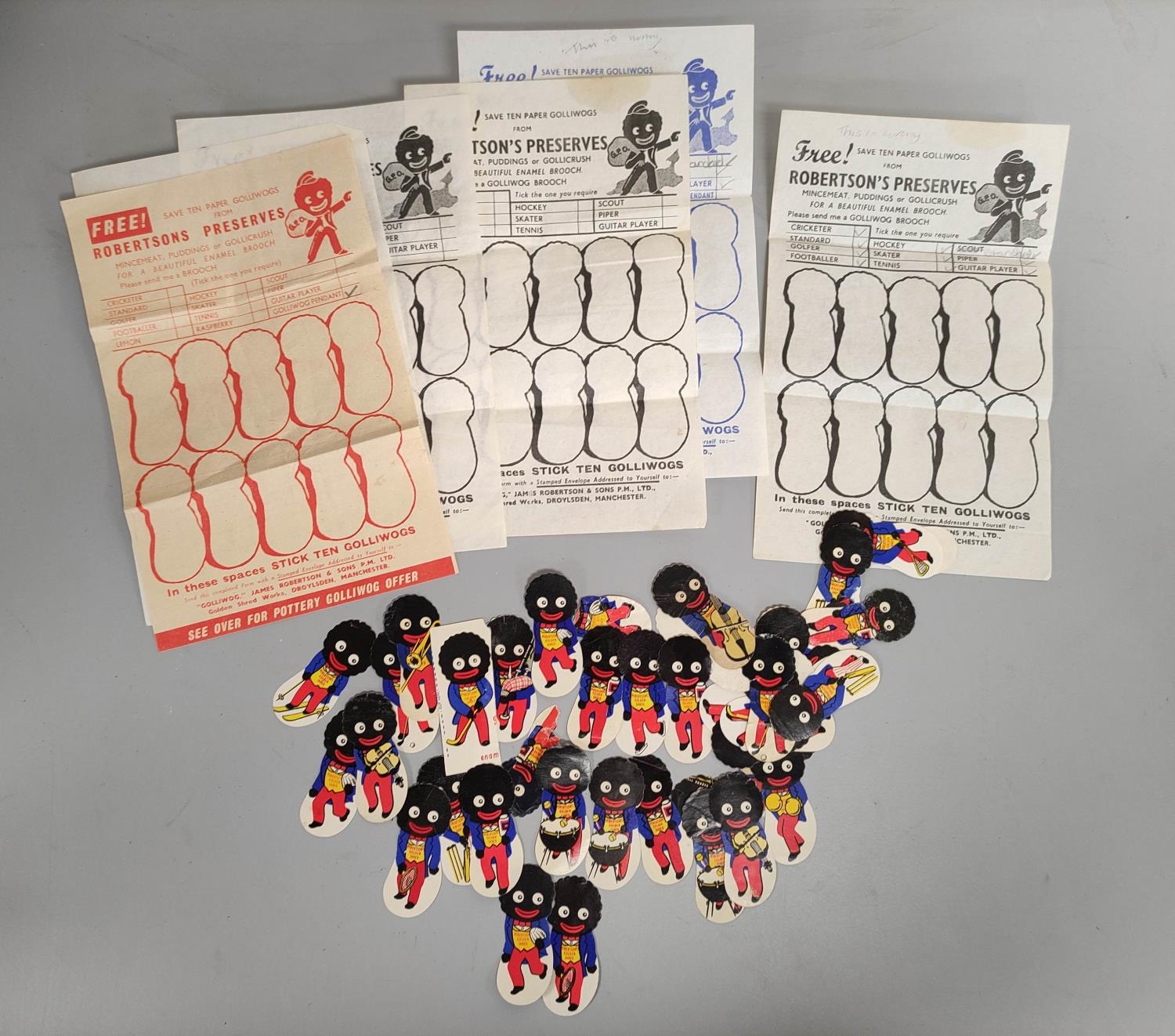 Robertson's Preserves: Quantity of vintage paper Golliwog tokens and six paper forms. Approximately 41.