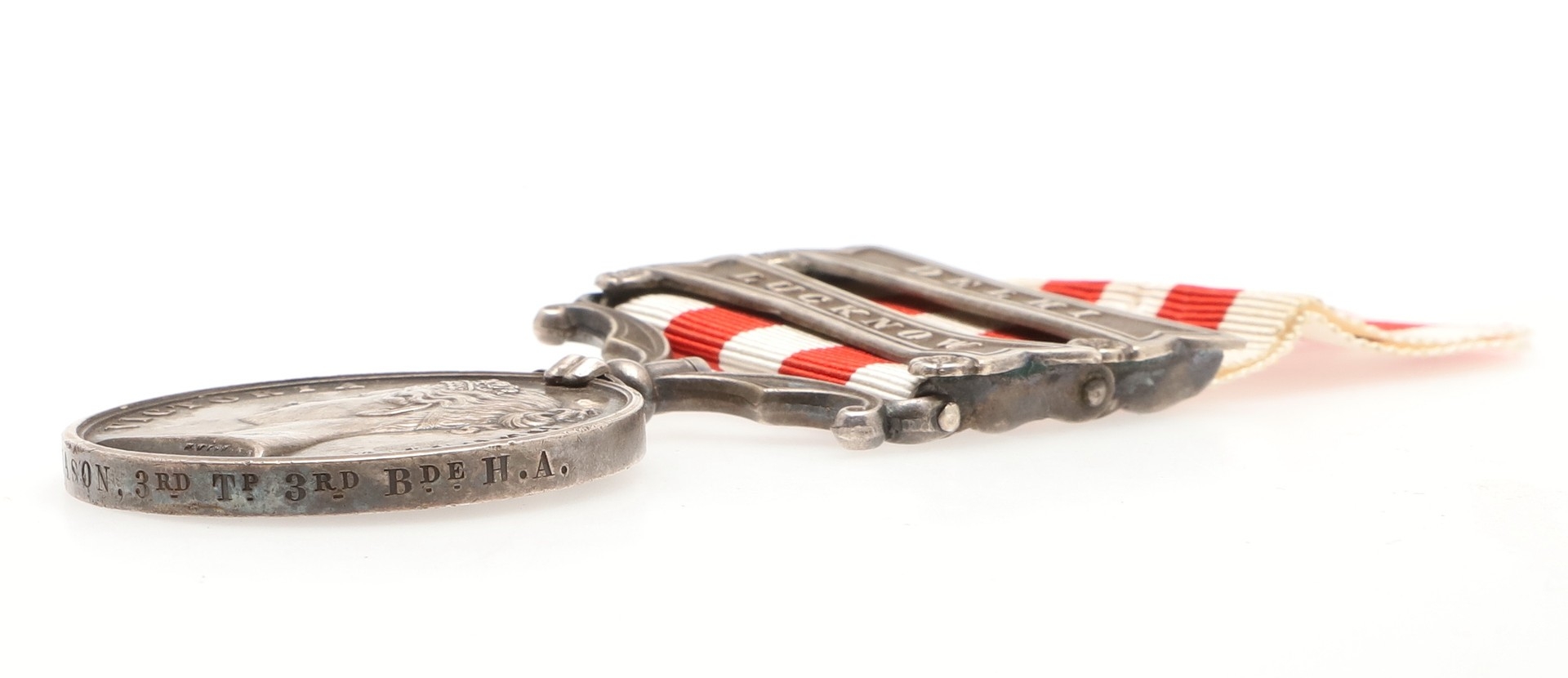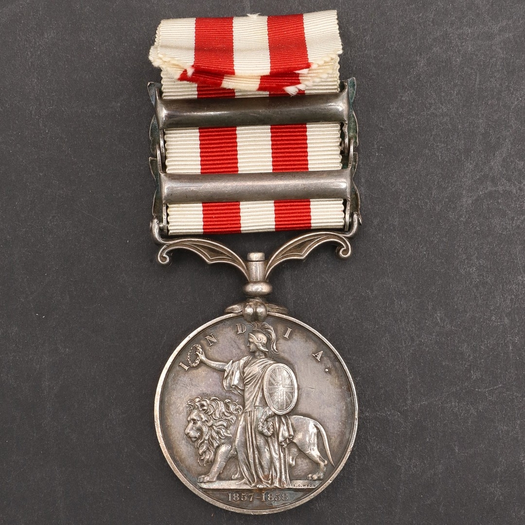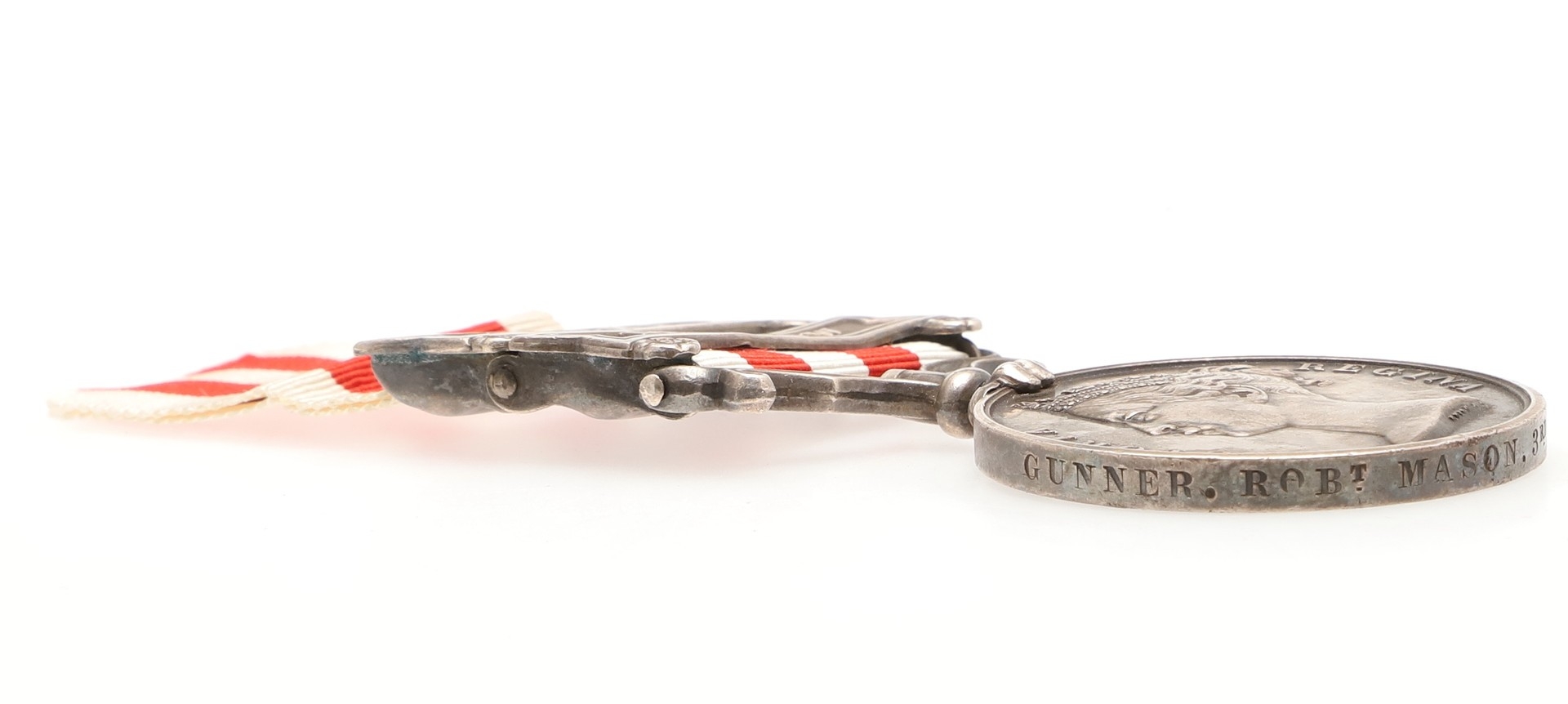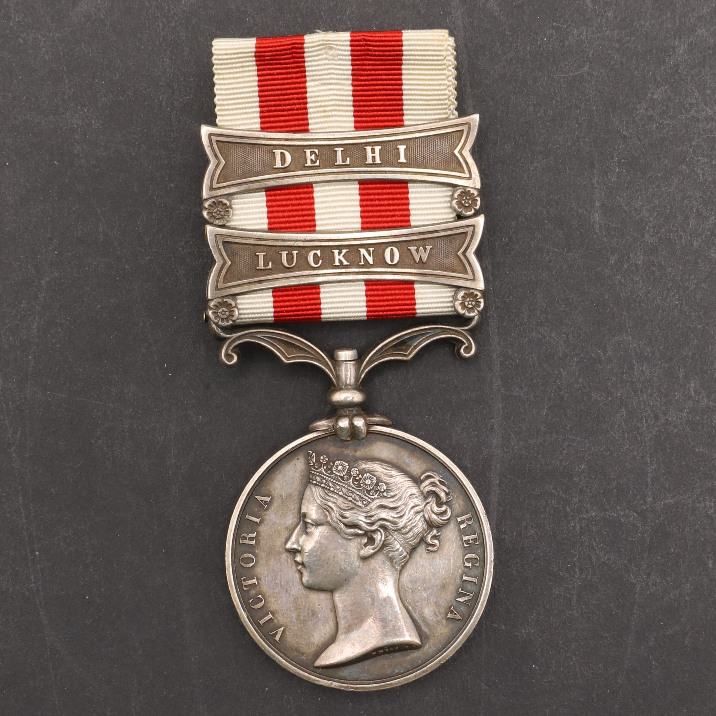 A TWO CALSP INDIAN MUTINY MEDAL TO THE BENGAL HORSE ARTILLERY. An Indian Mutiny Medal with Lucknow and Delhi clasps named to Gunner Robt. Mason 3rd Tp 3rd Bde H.A.