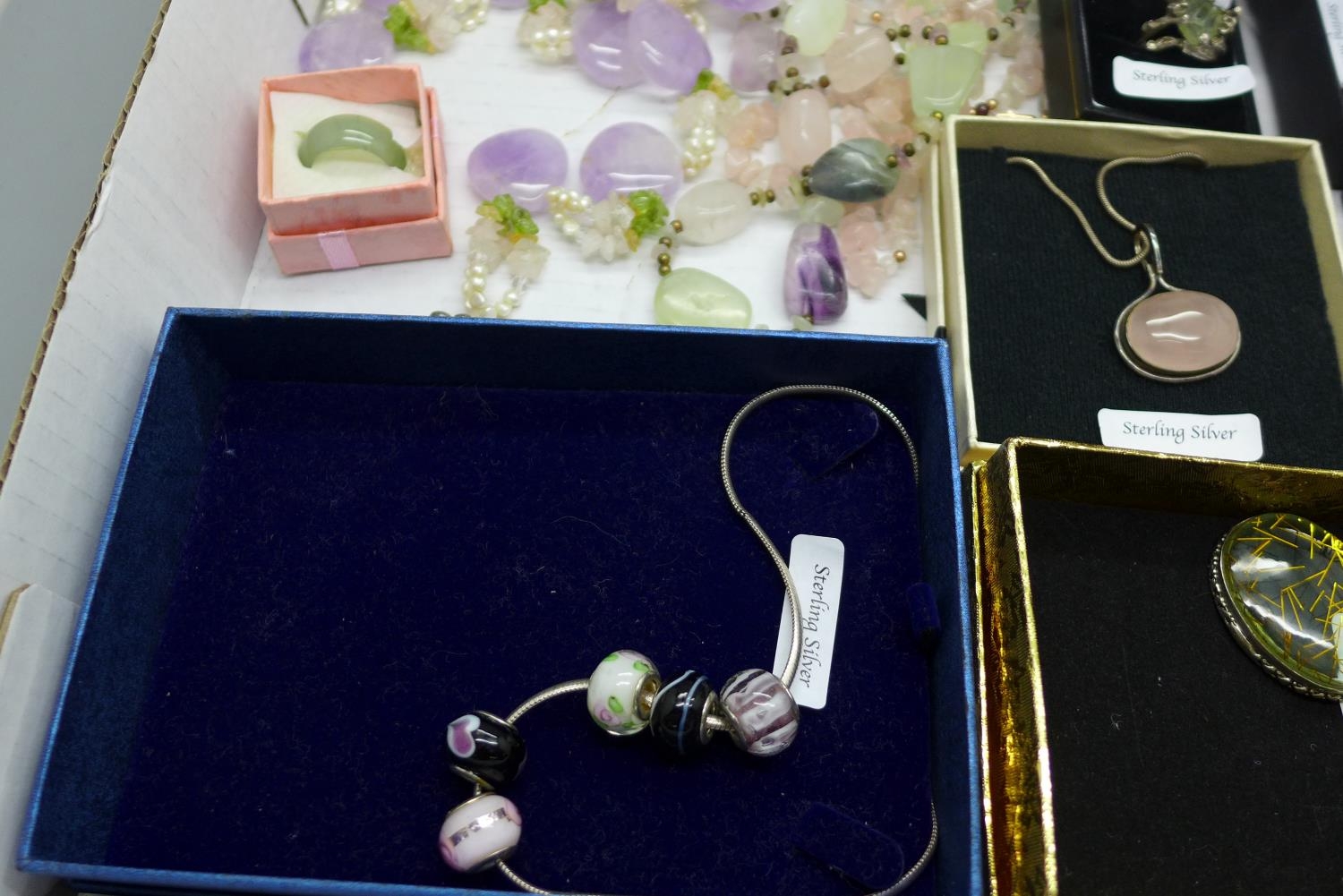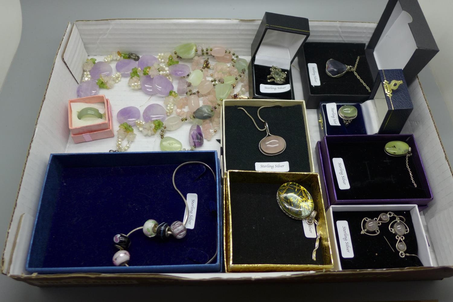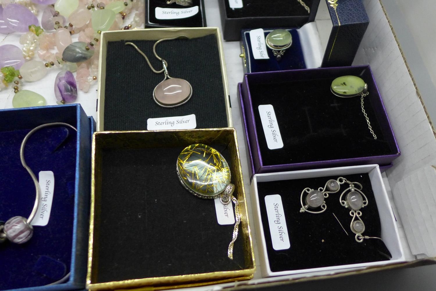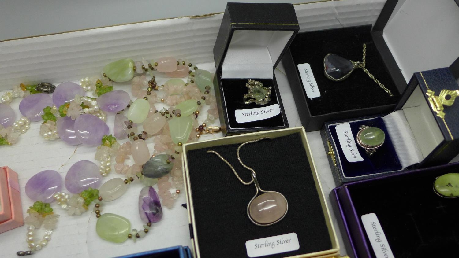 A collection of gem set silver jewellery