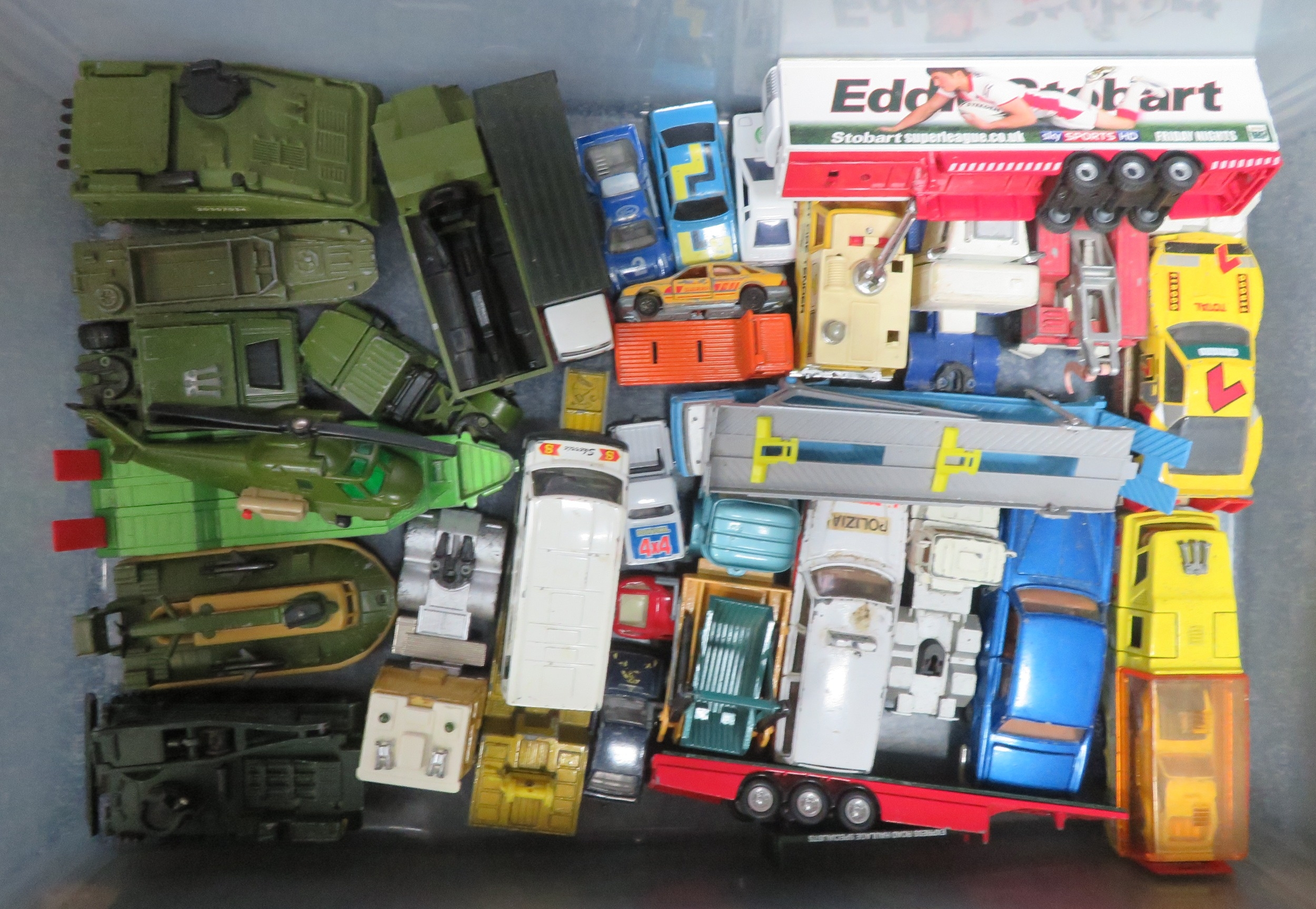 1960s onwards unboxed diecast collection, with Corgi including Juniors, Dinky, Matchbox 1-75 series, etc., generally good plus to good fair. Contents unchecked for completeness or correctness and viewing recommended. Qty approx. 100+ (4B)