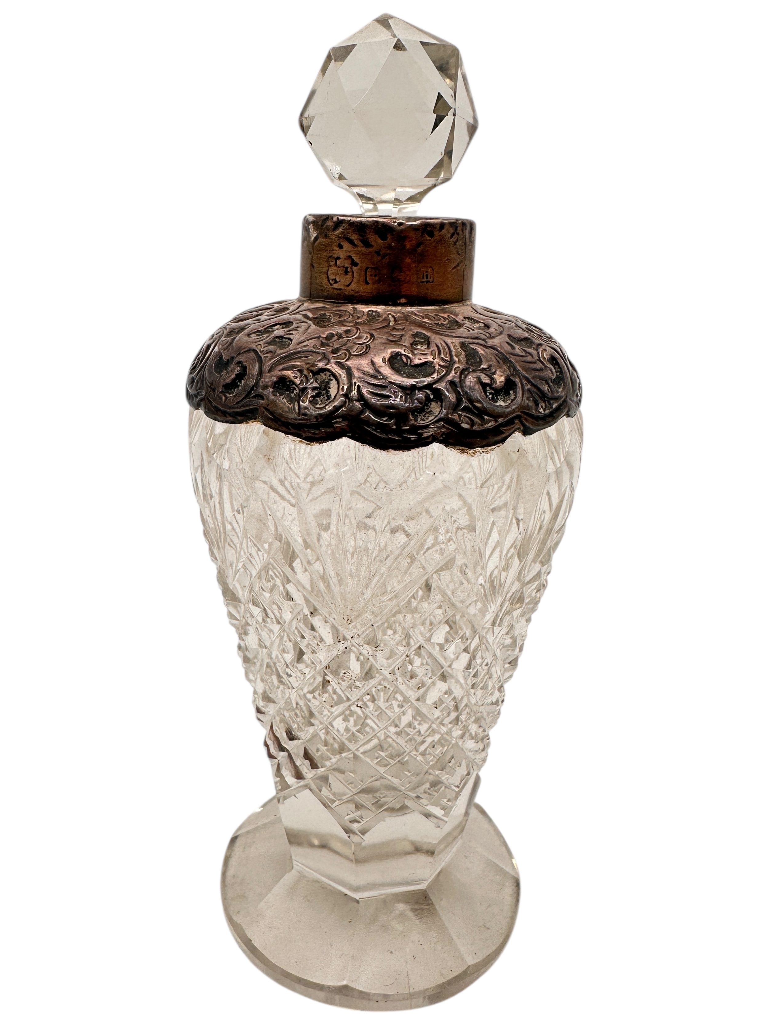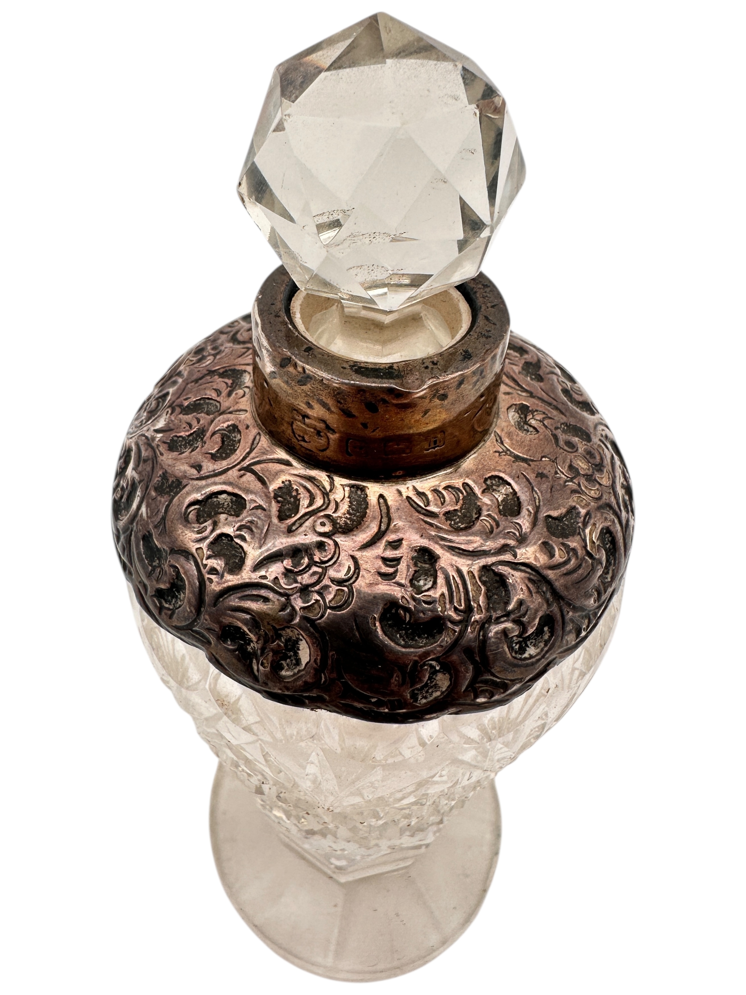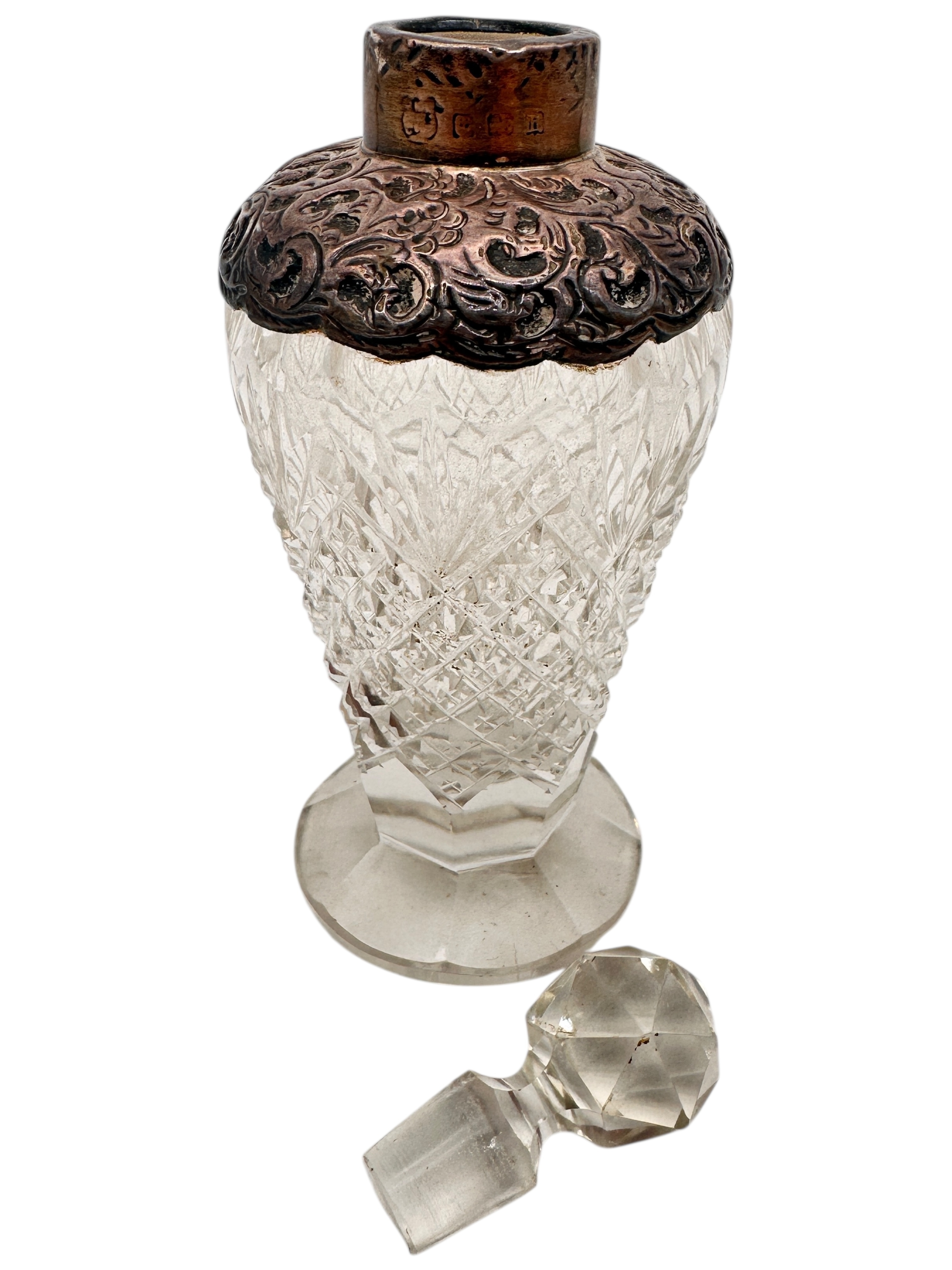 Silver Collared Cut Glass Scent Bottle