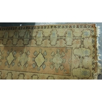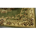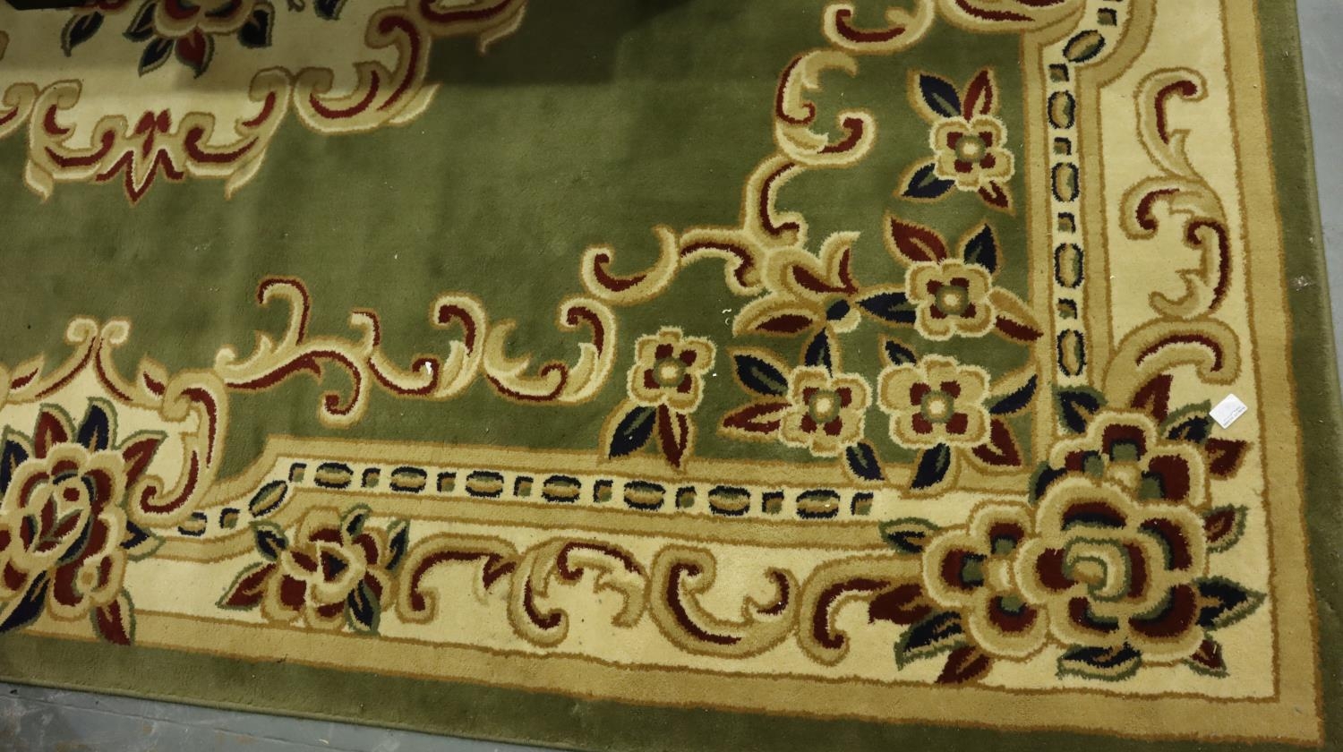 Green and cream ground rug, 340 x 240 cm. Not available for in-house P&P, contact Paul O'Hea at Mailboxes on 01925 659133