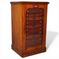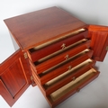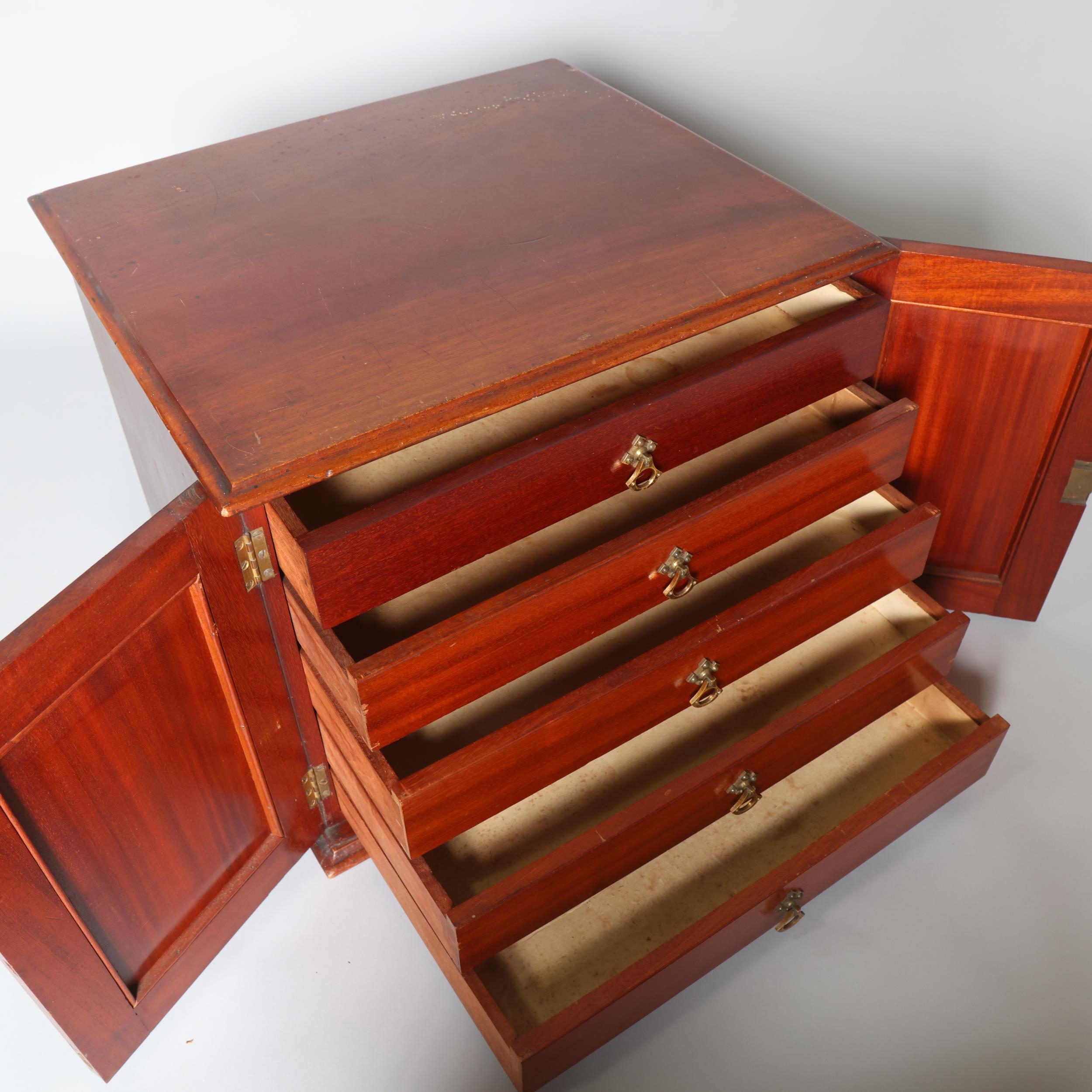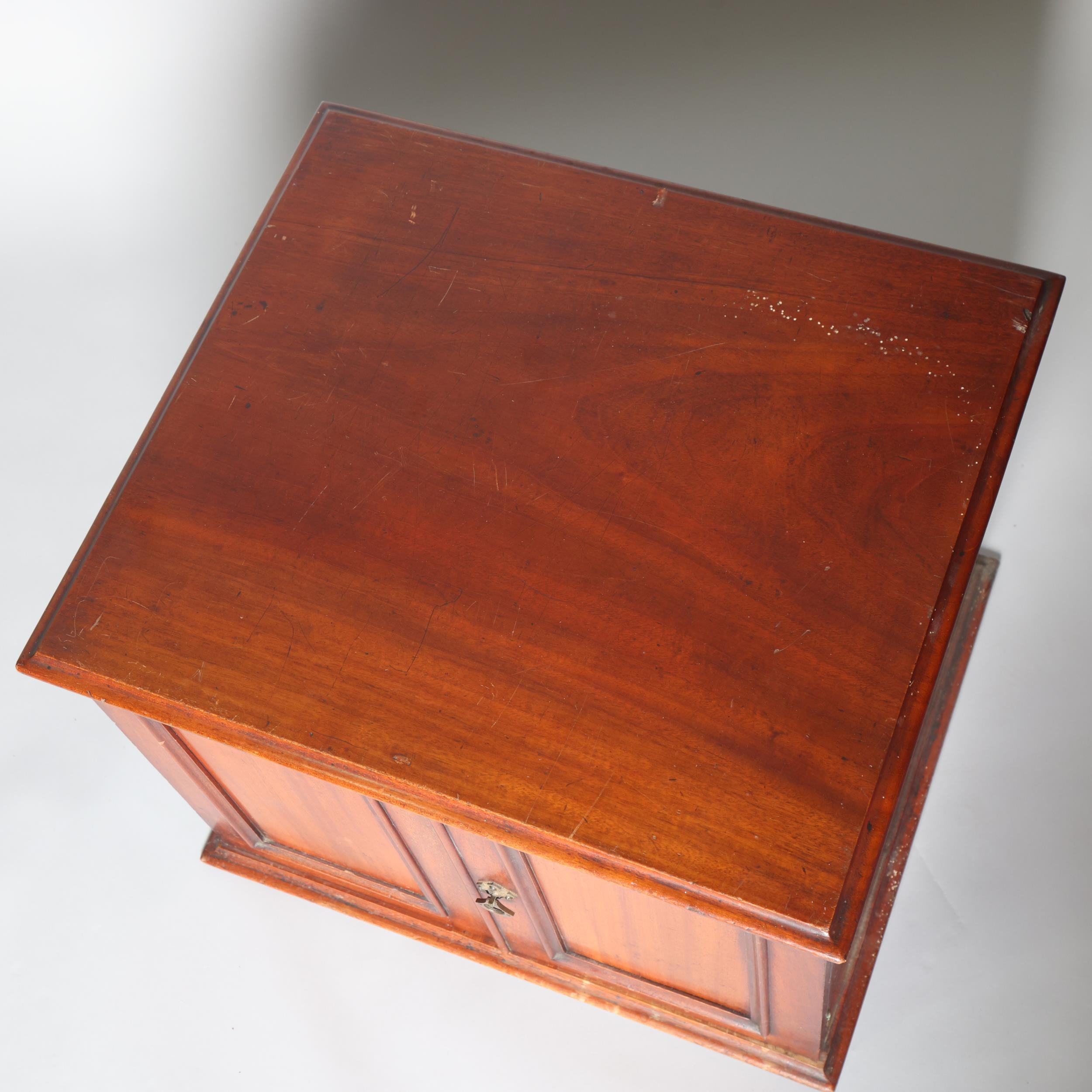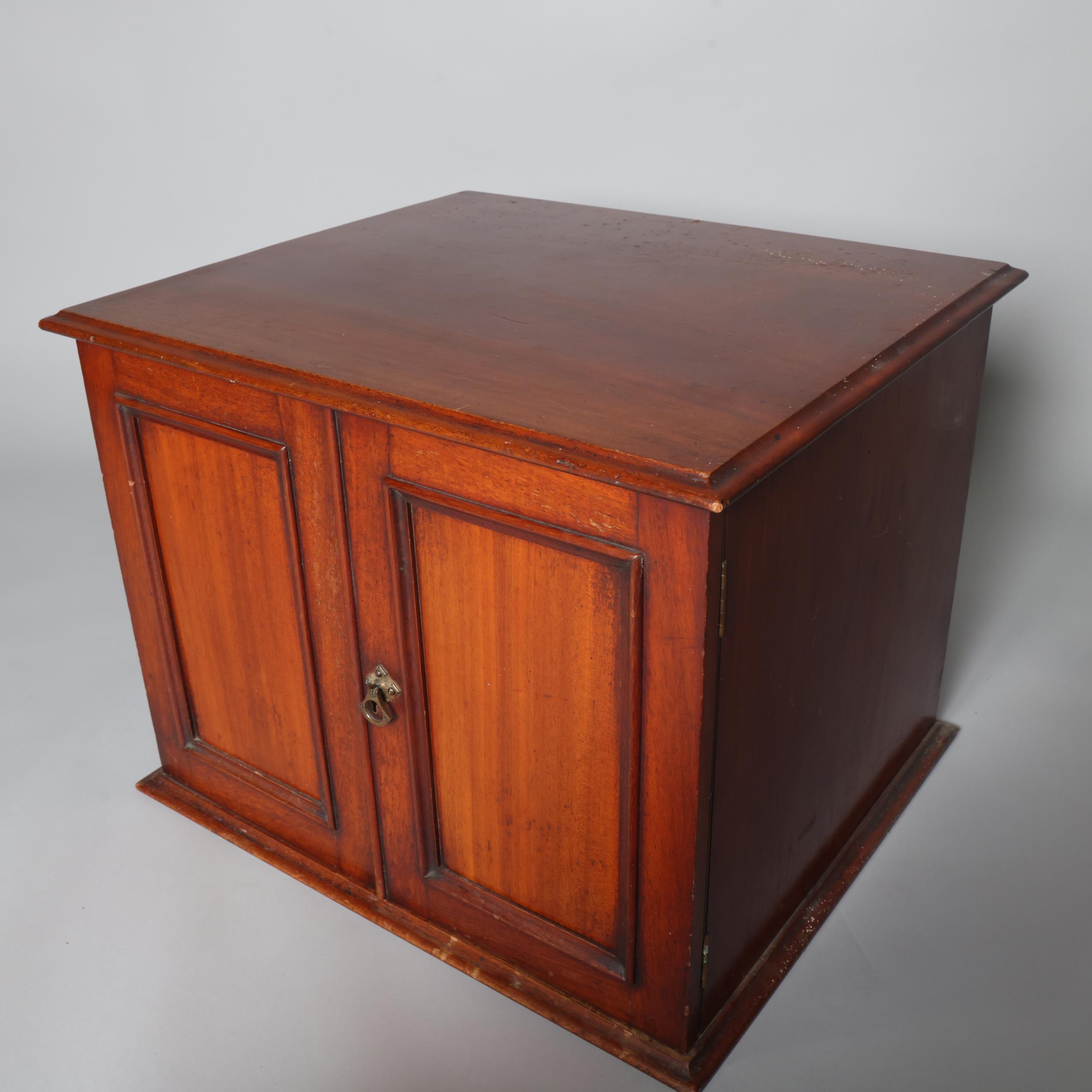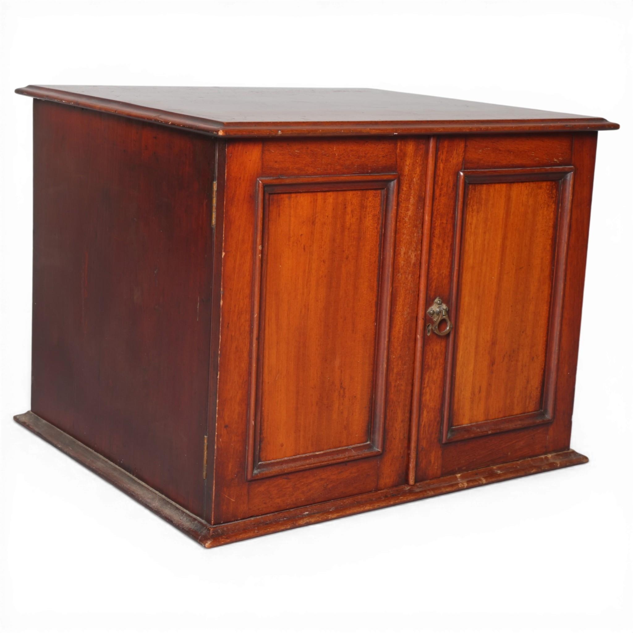 A Victorian mahogany table-top butterfly collector's cabinet, 2 panelled doors enclosing 5 drawers, width 54cm, height 42cm