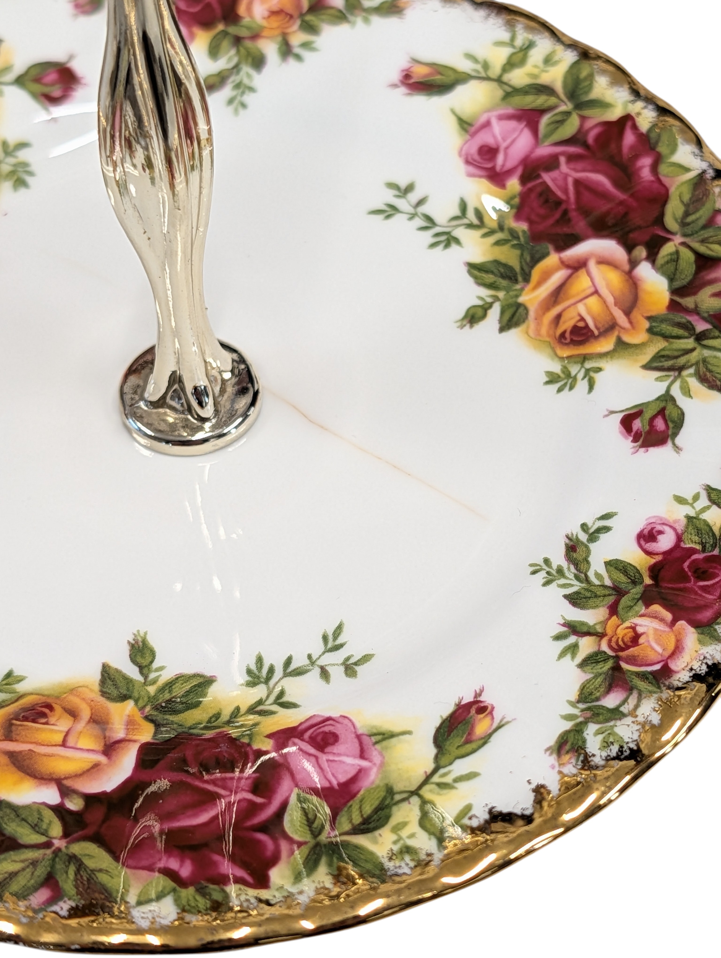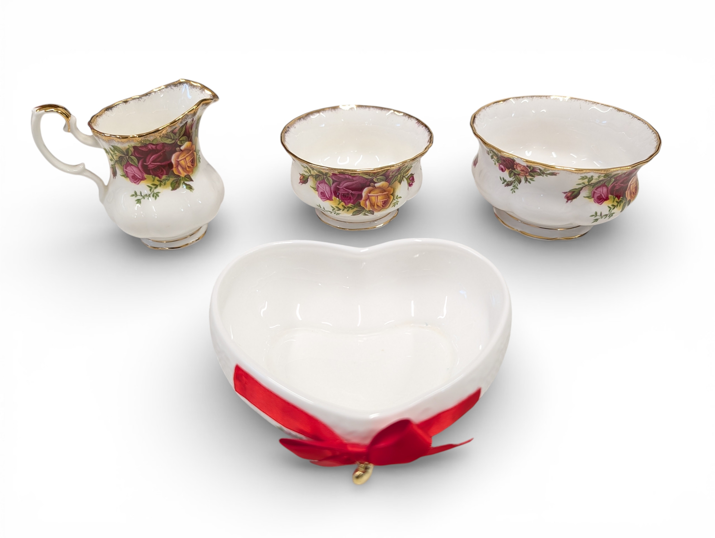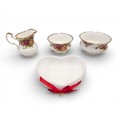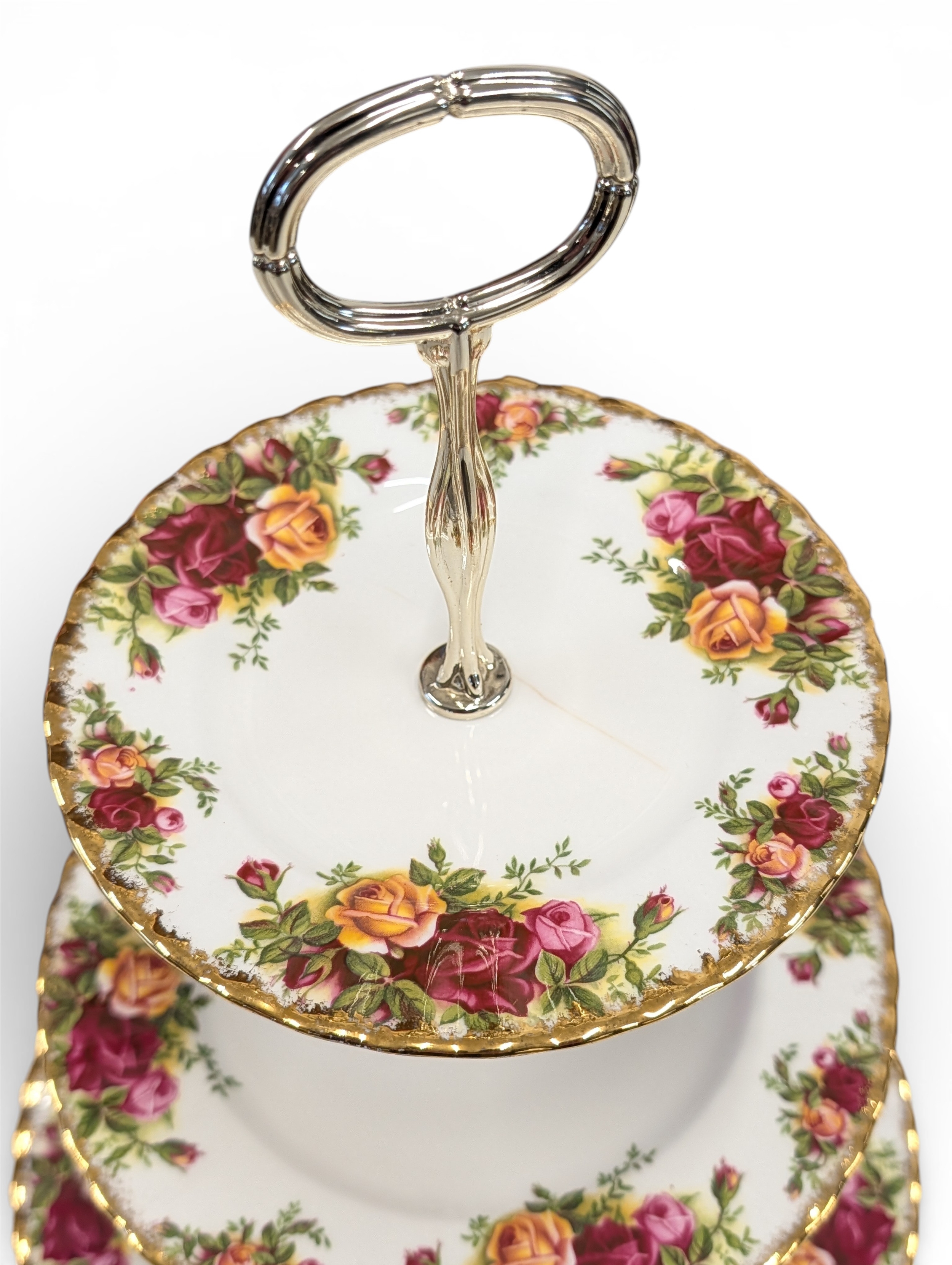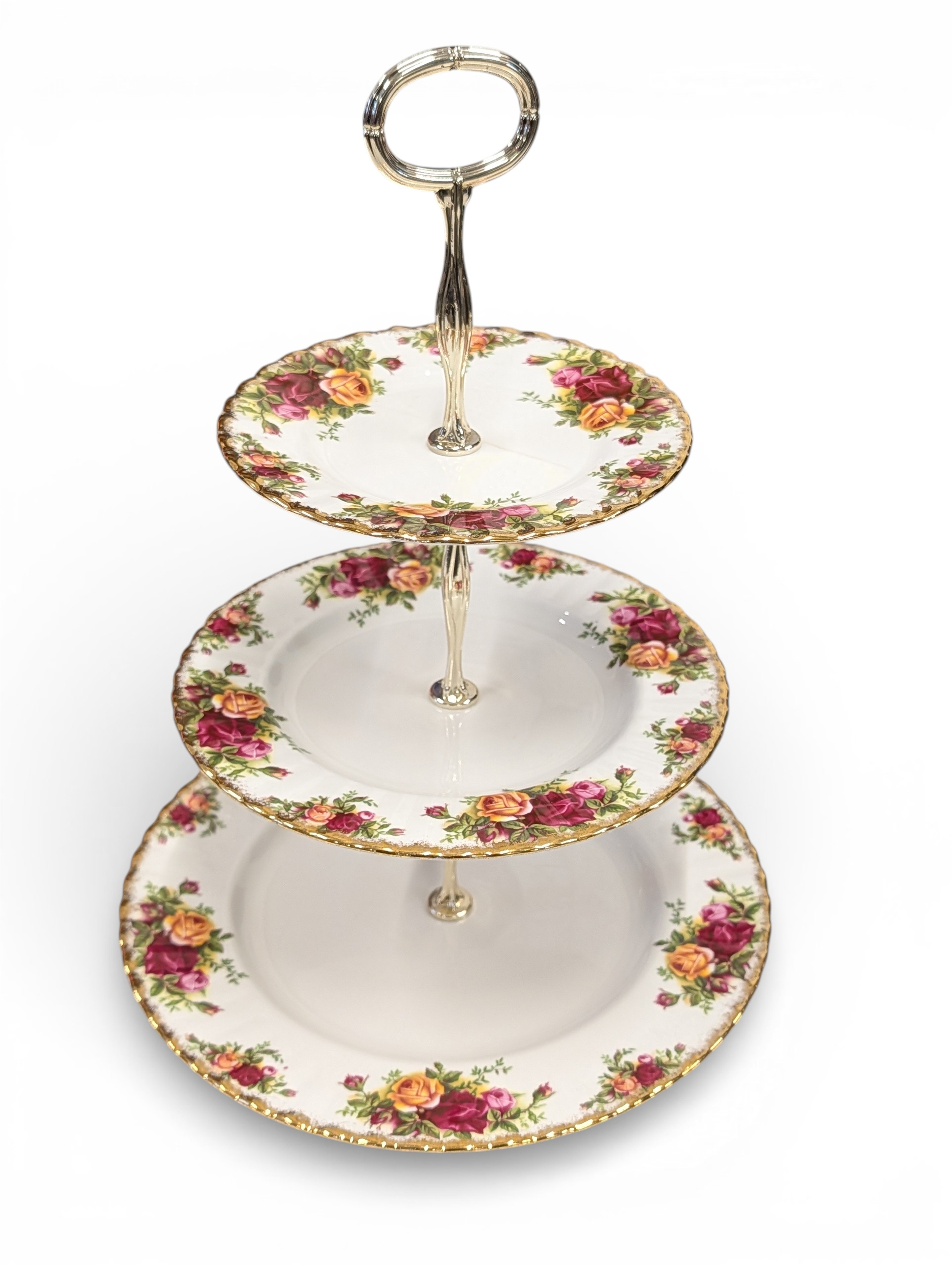 A Royal Albert "Old Country Roses" dinnerware, cake and tea set with a matching clock, approx 61 pieces in total, hairline crack in top platter of three tier cake stand and one cup otherwise in good condition