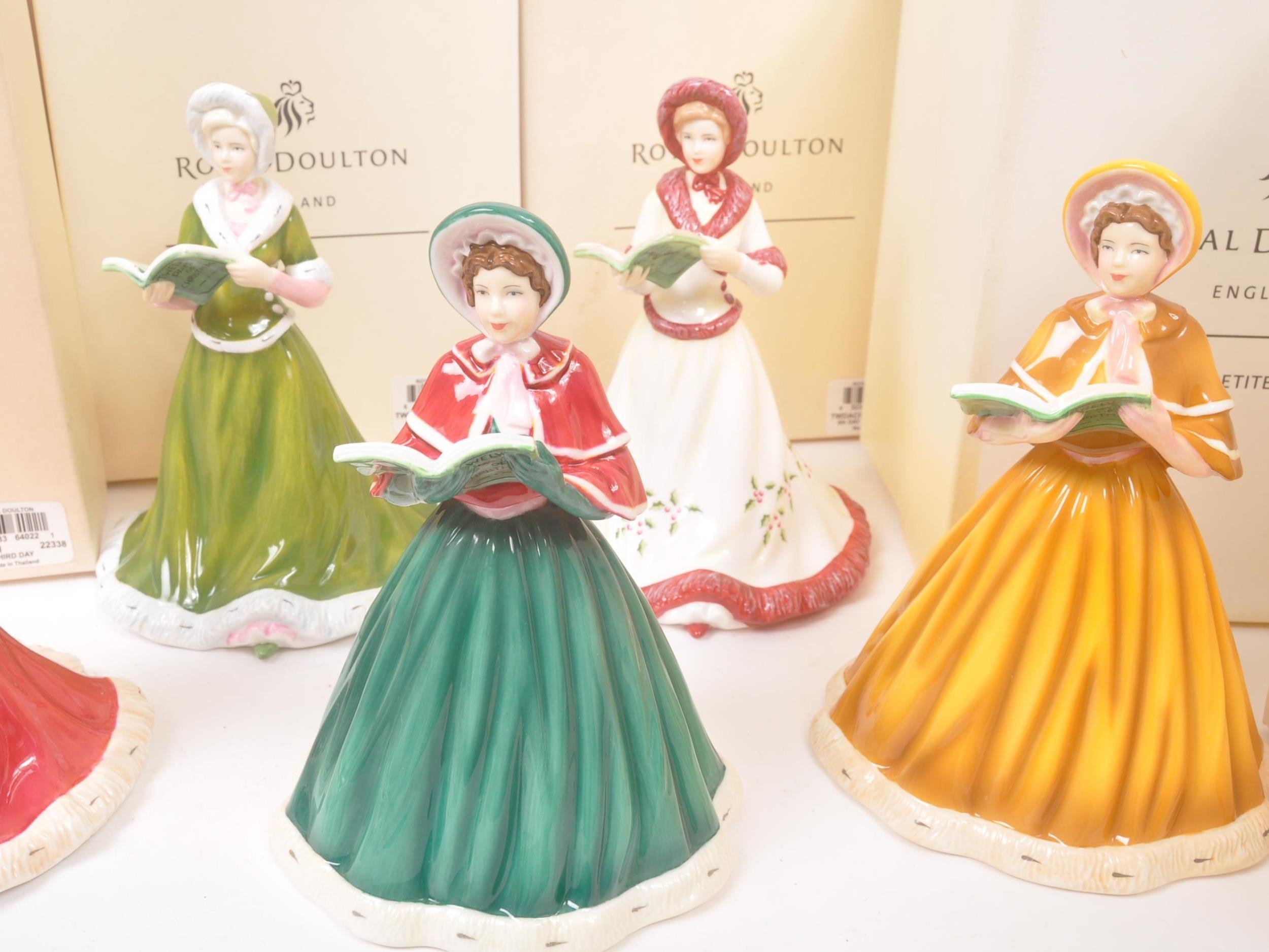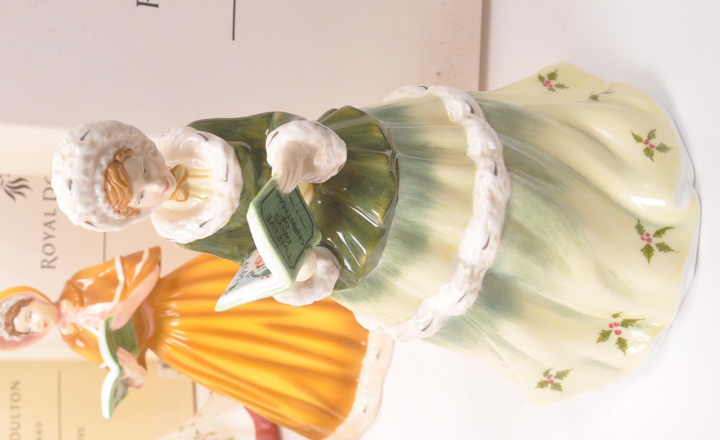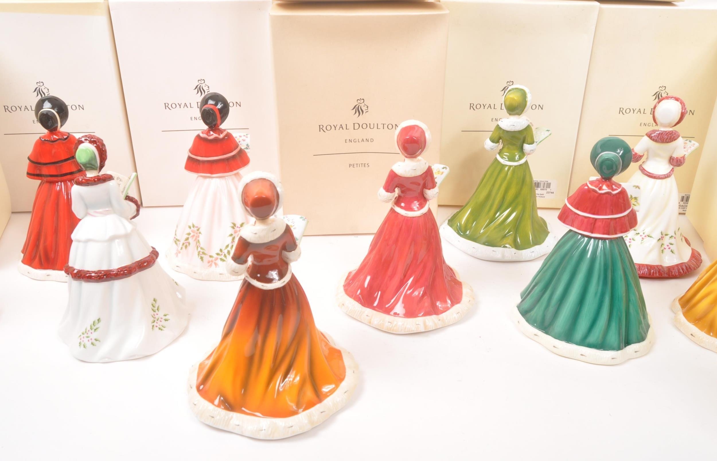 Royal Doulton - Petites - A collection of boxed Royal Doulton porcelain china tableware figurines. Comprising of the 12 twelve days of Christmas. Boxed with paperwork and certificates. HN5409, HN5173, HN5170, HN5171, HN5169, HN5168, HN5519, HN5172, HN5520, HN5518, HN5410, and HN5408.