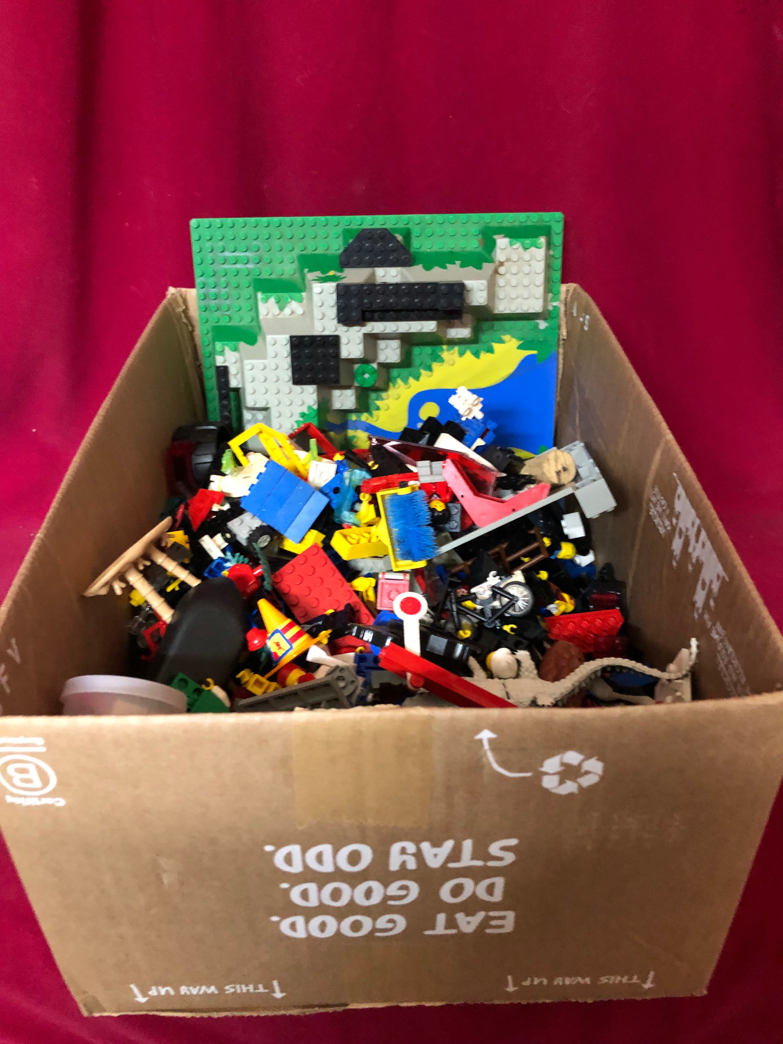Large box filed with assorted lego measuring 33 x 27 x 30 cms tall