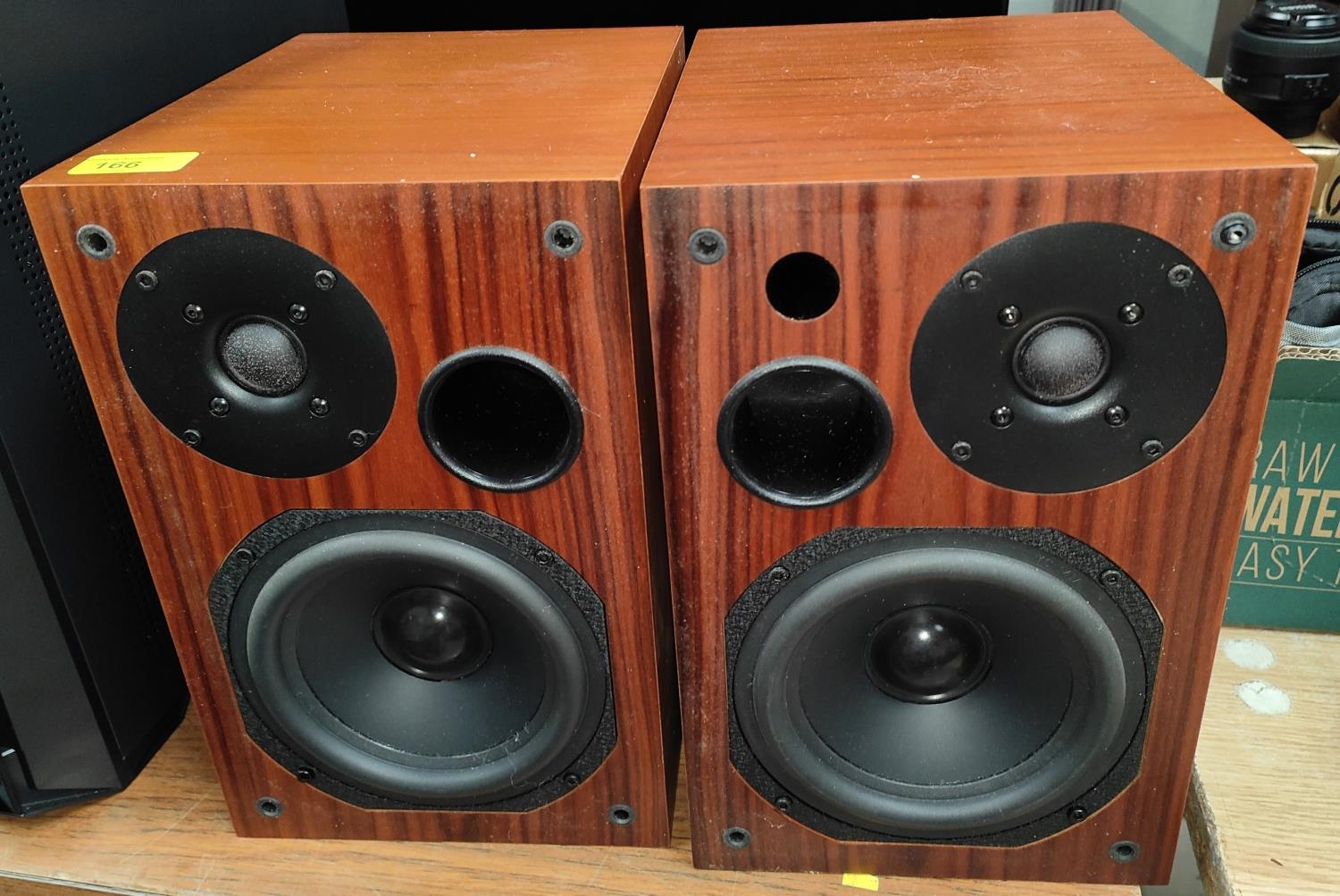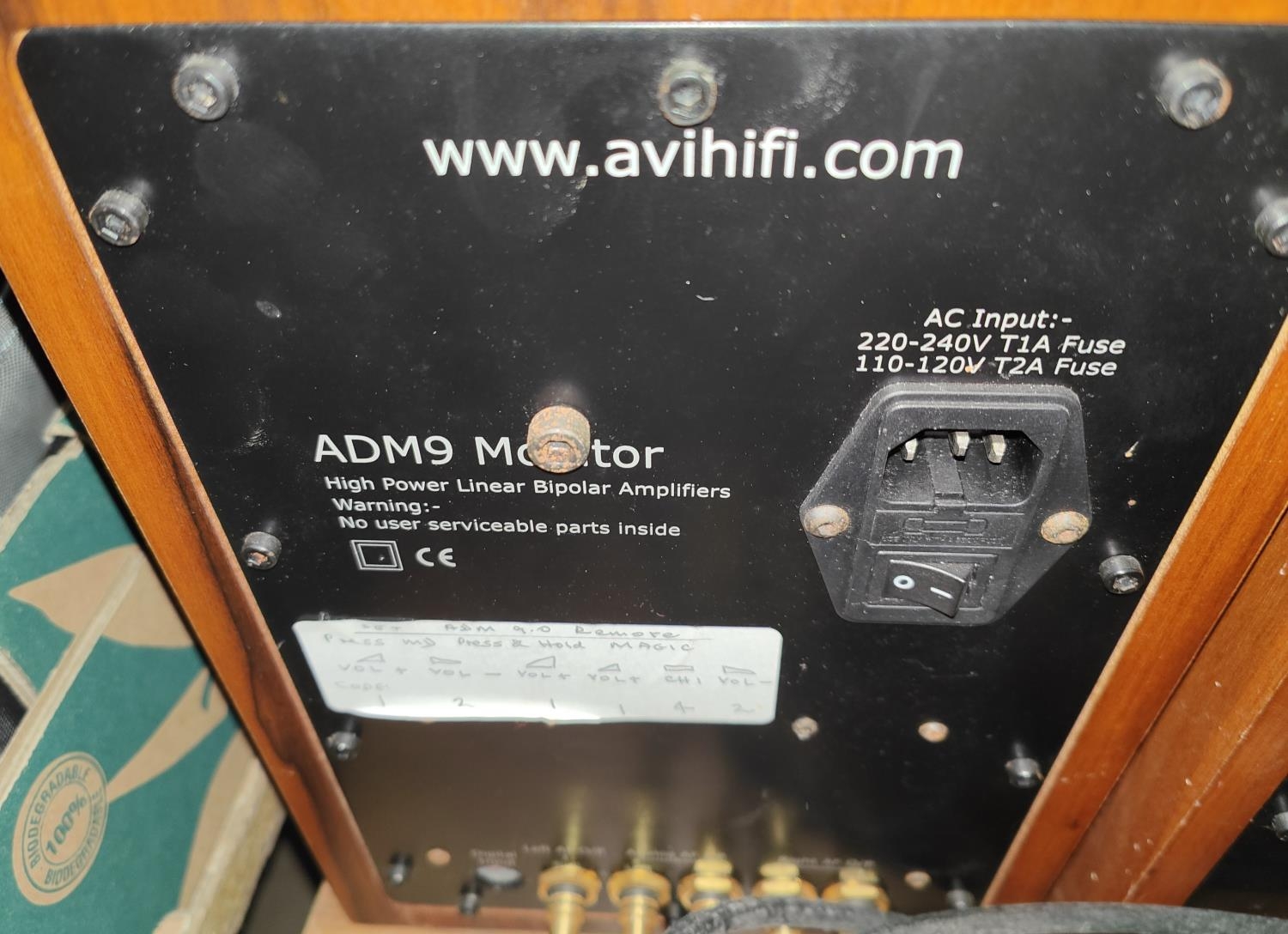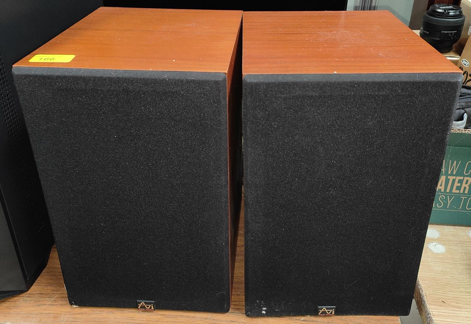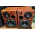 A pair of AVI-Hifi AD M9 monitors, in teak effect cases