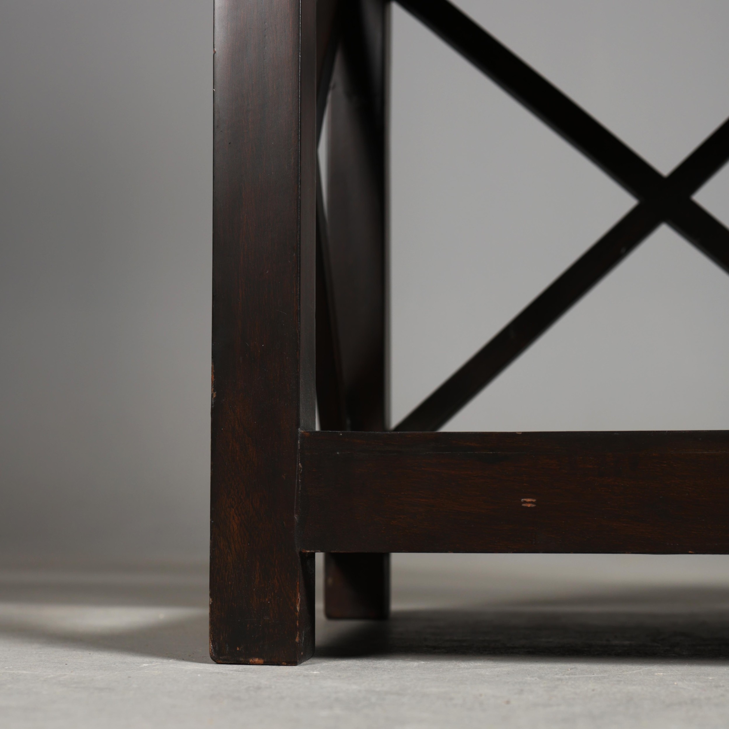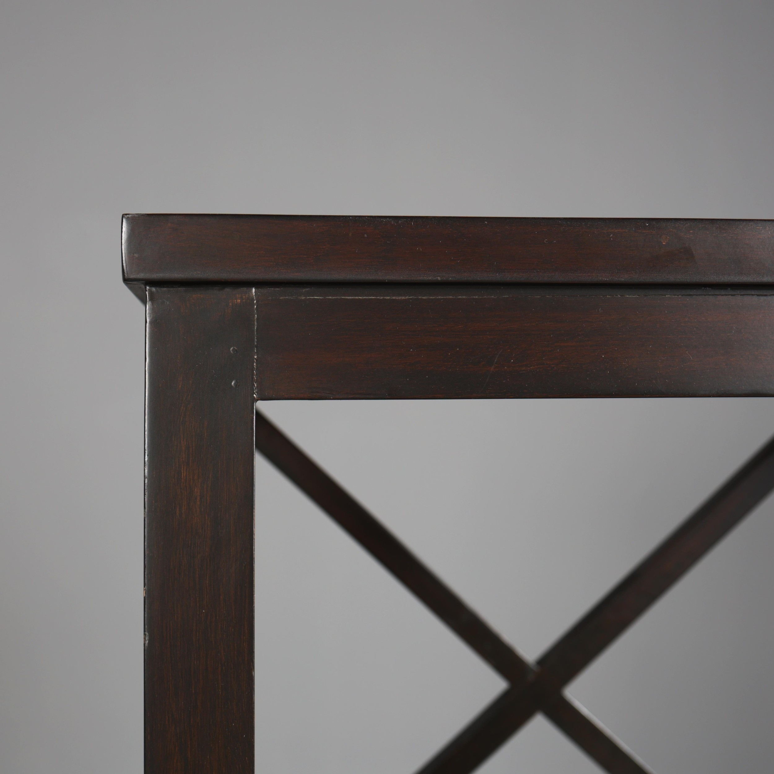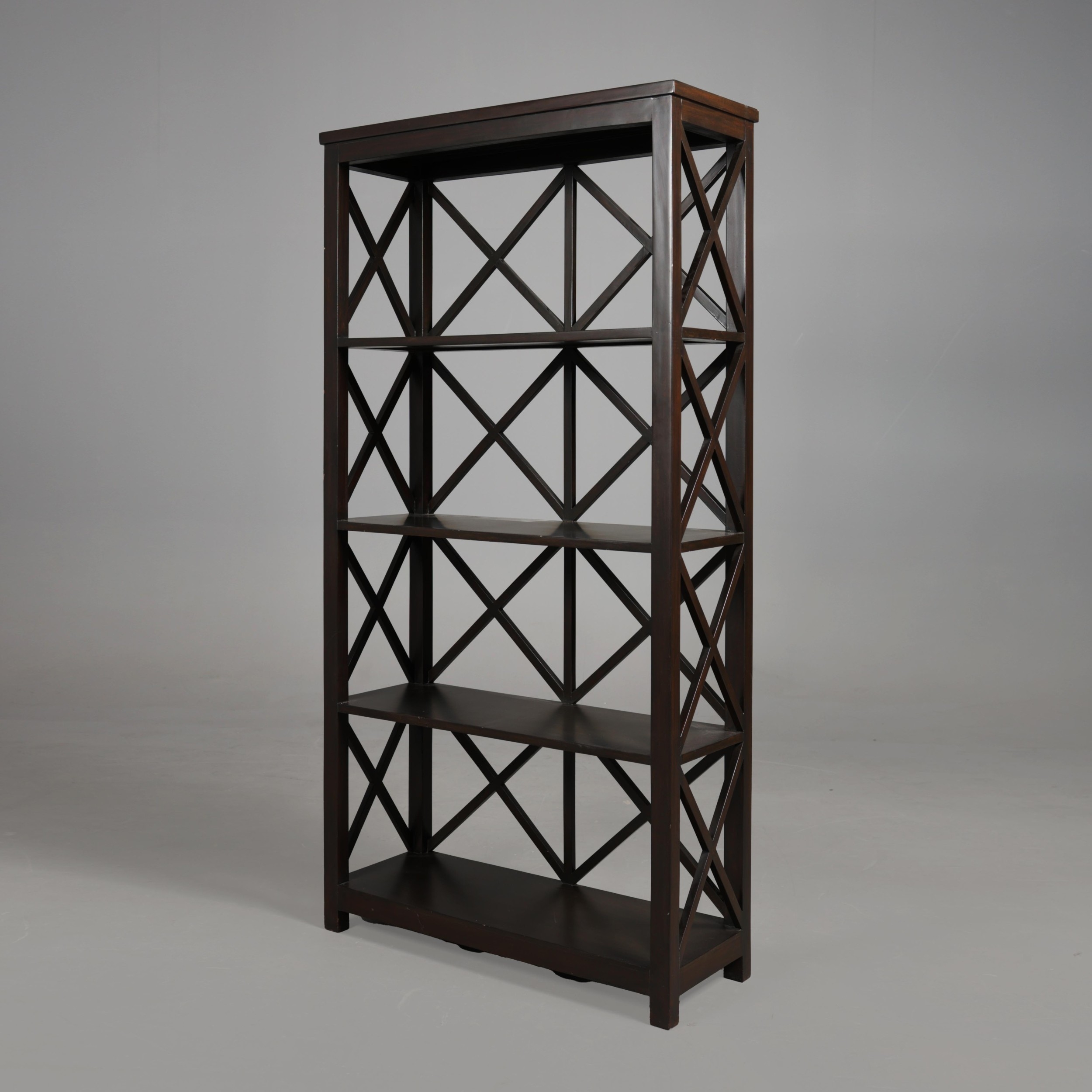 OKA BOOKCASE. with X form back and sides 168 cm t x 86 cm w 32 cm d.