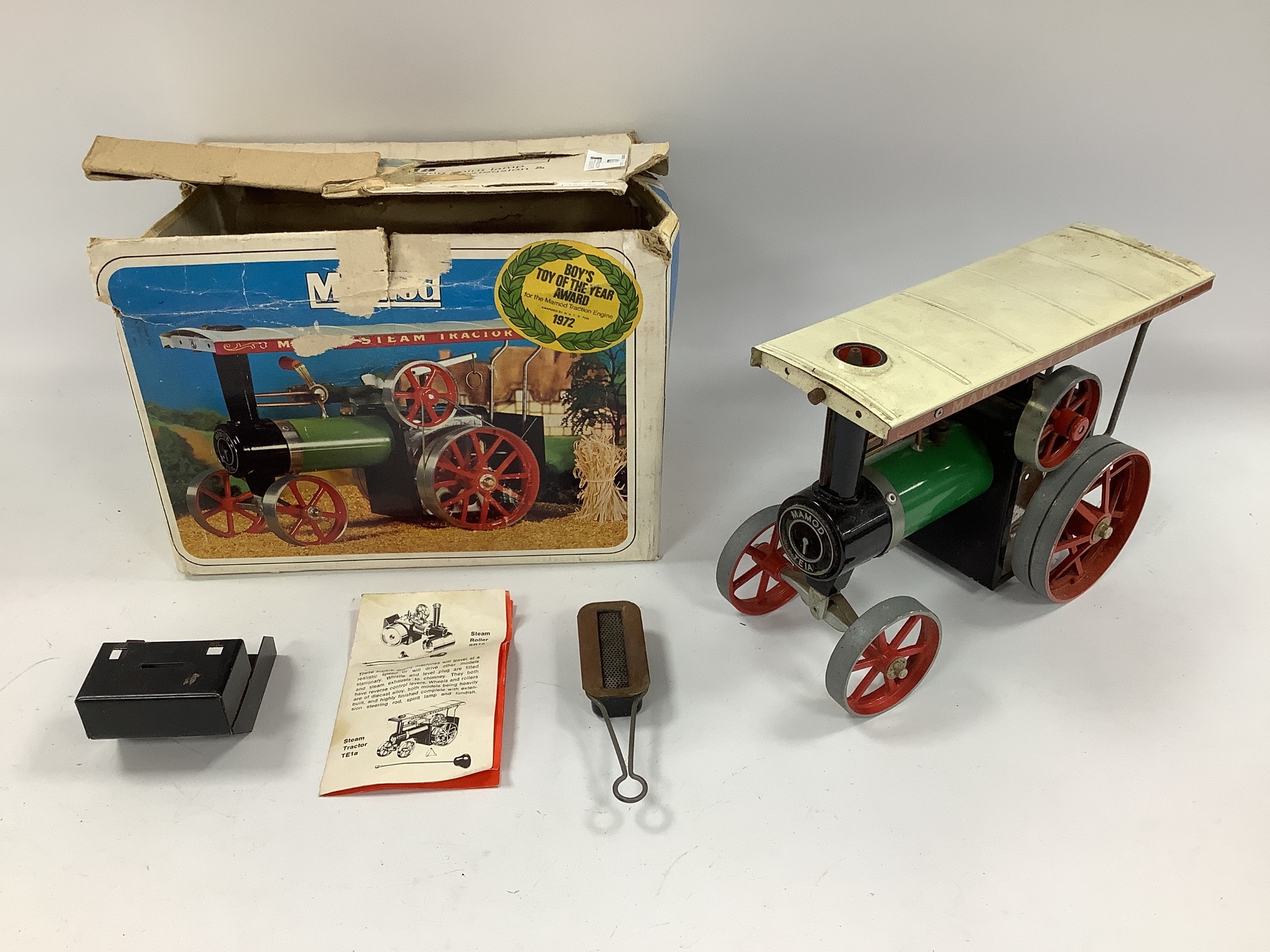 A Mamod Live Steam No TE1a - Traction Engine, some signs of wear and missing steering rod spring, boxed, box poor.