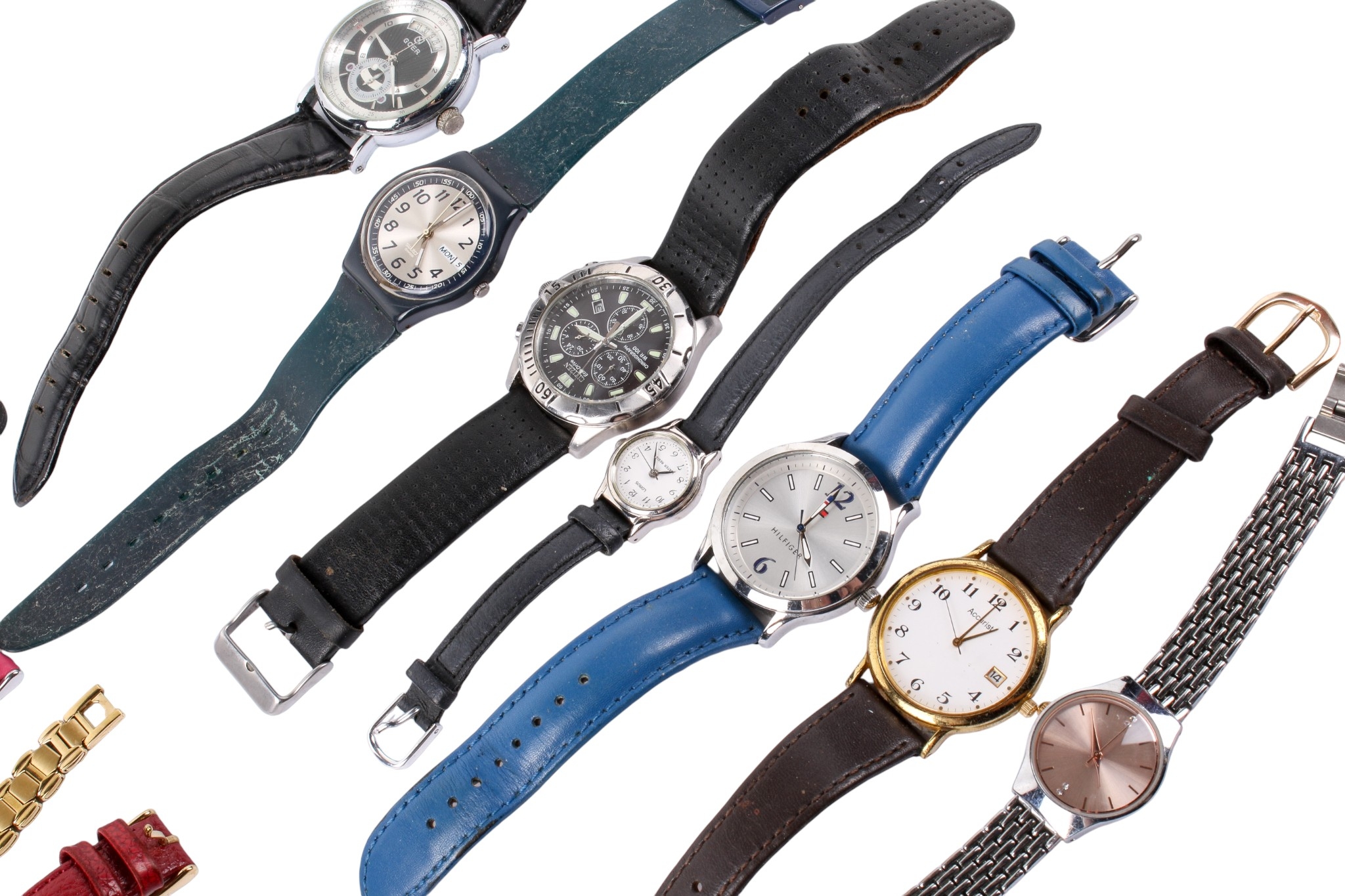 A collection of ladies' and gentlemen's wristwatches. Including a gentleman's Accurist watch, the white dial with Roman numerals and a date aperture, a lady's Pulsar watch, two ladies' Hilfinger watches, a gentleman's Citizen Eco-Drive chronograph WR100, and more ***This lot is being sold on behalf of The Blue Cross***