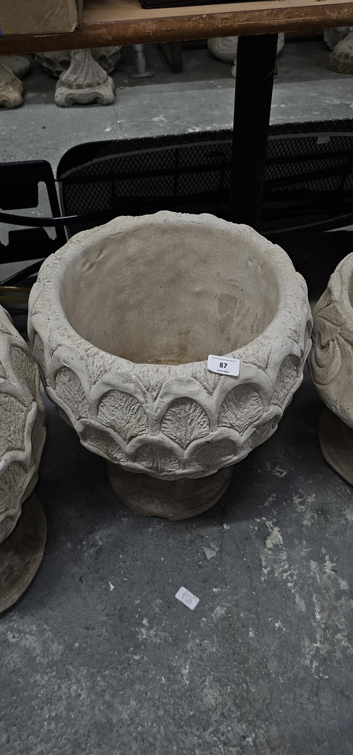 pineapple urn on circular base - concrete UNABLE TO POST