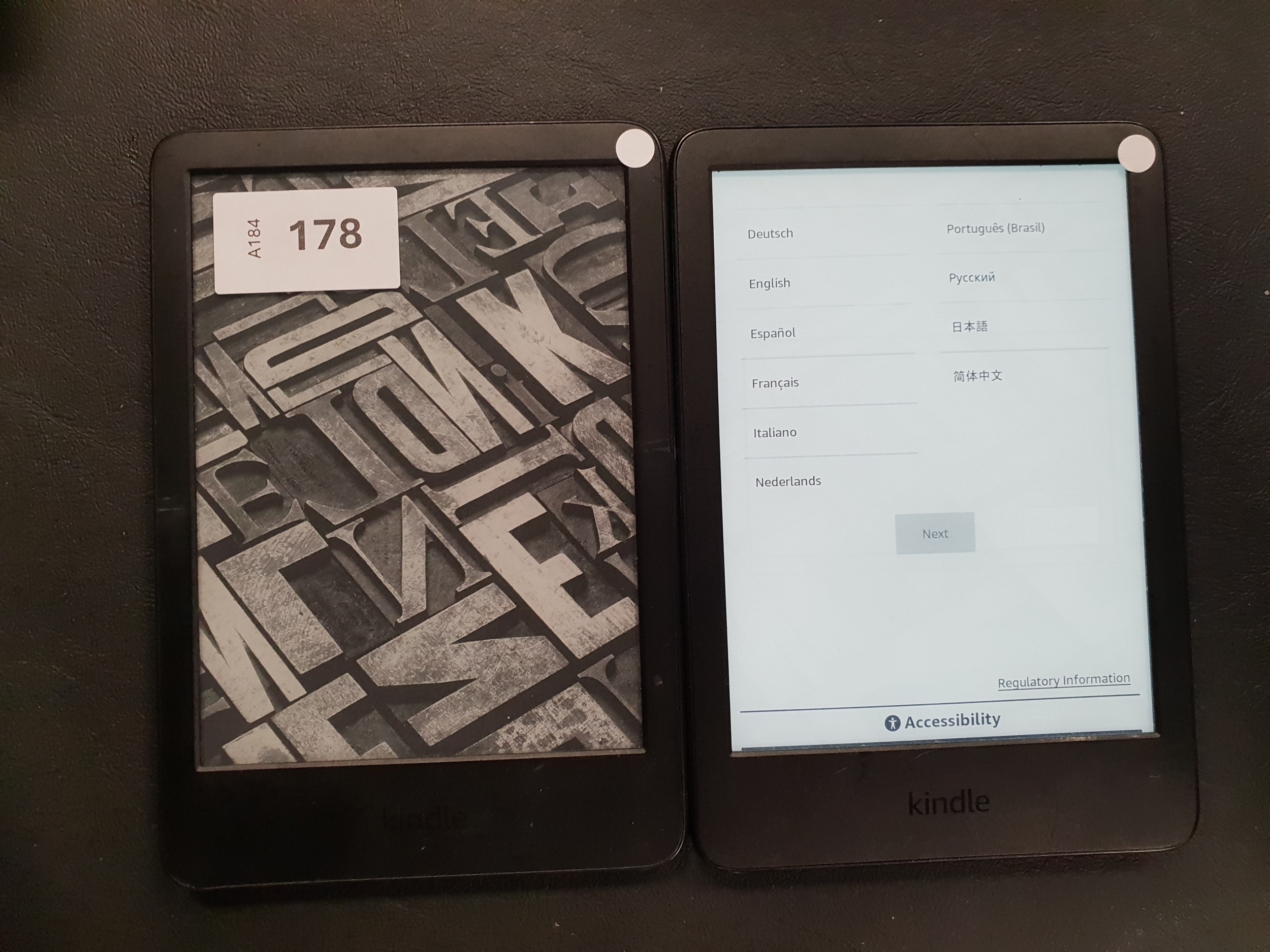TWO AMAZON KINDLE BASIC 4 E-READERS