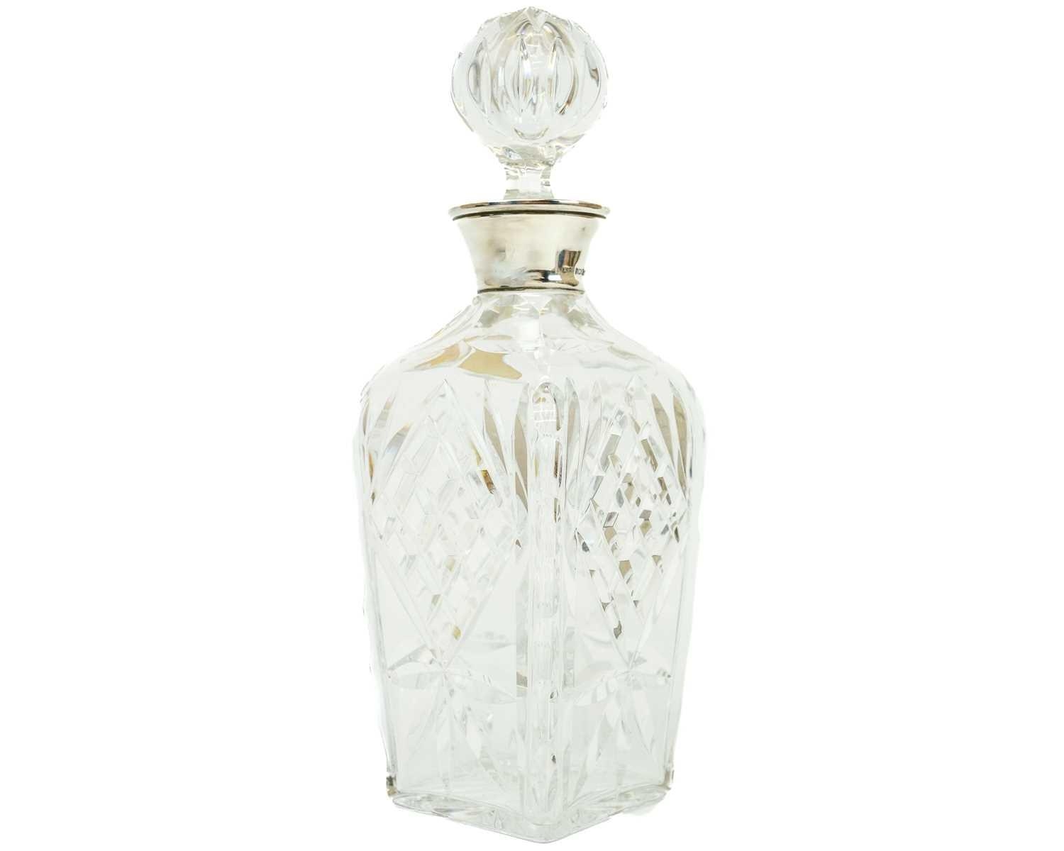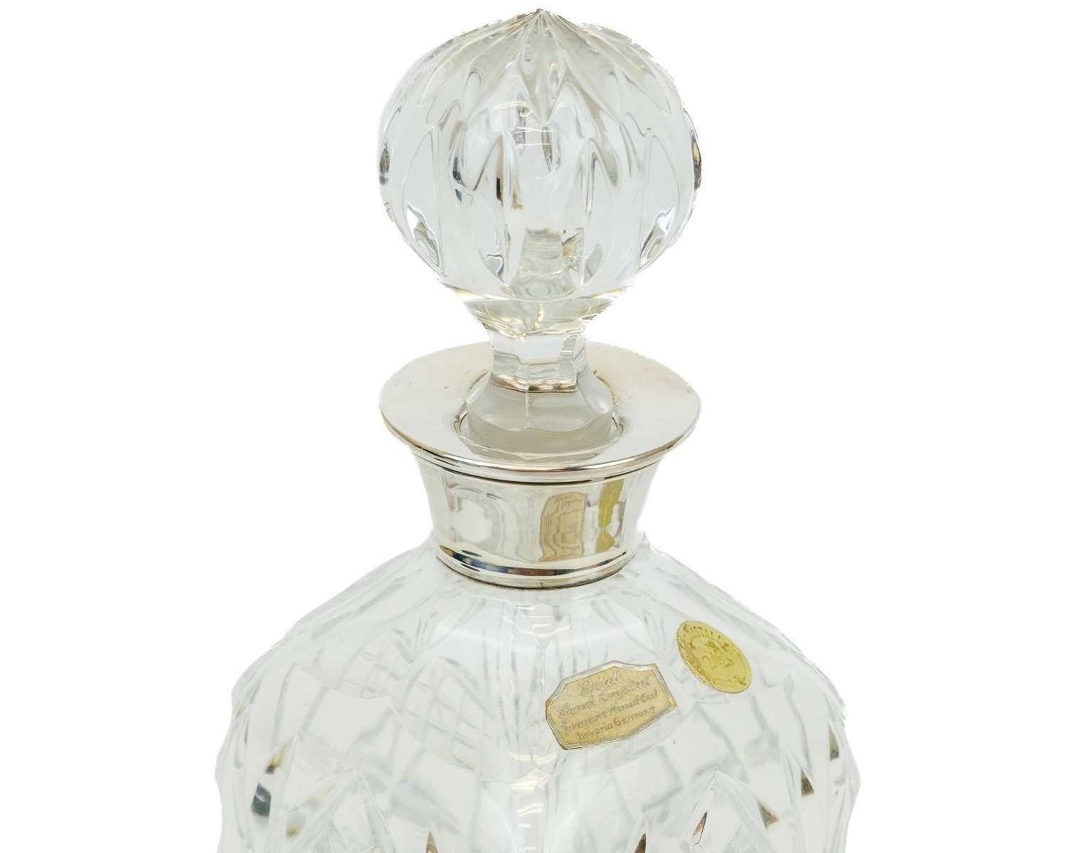A Bavarian lead crystal decanter and stopper with silver collar. Birmingham 1976 date code, height 29.5cm.