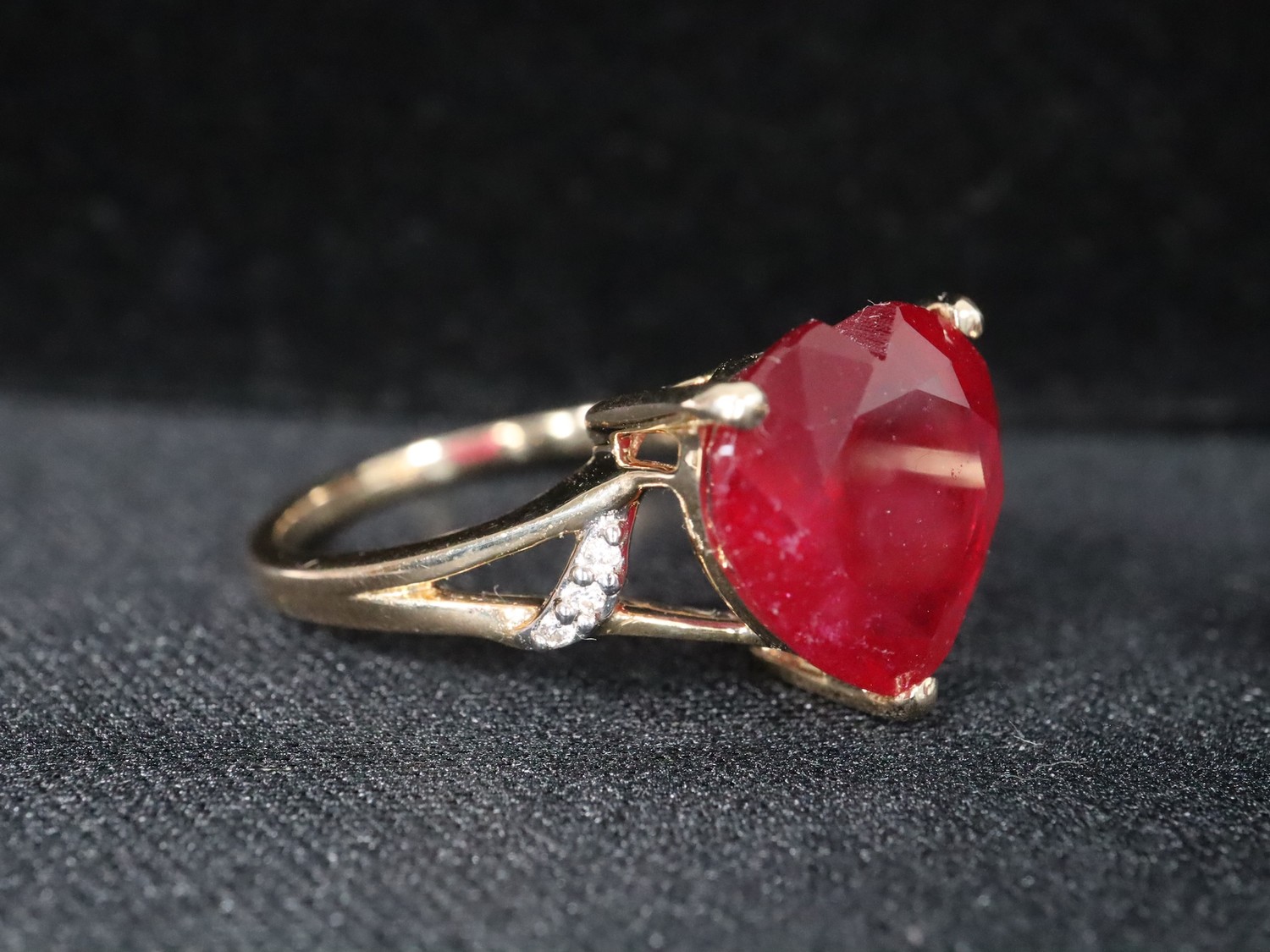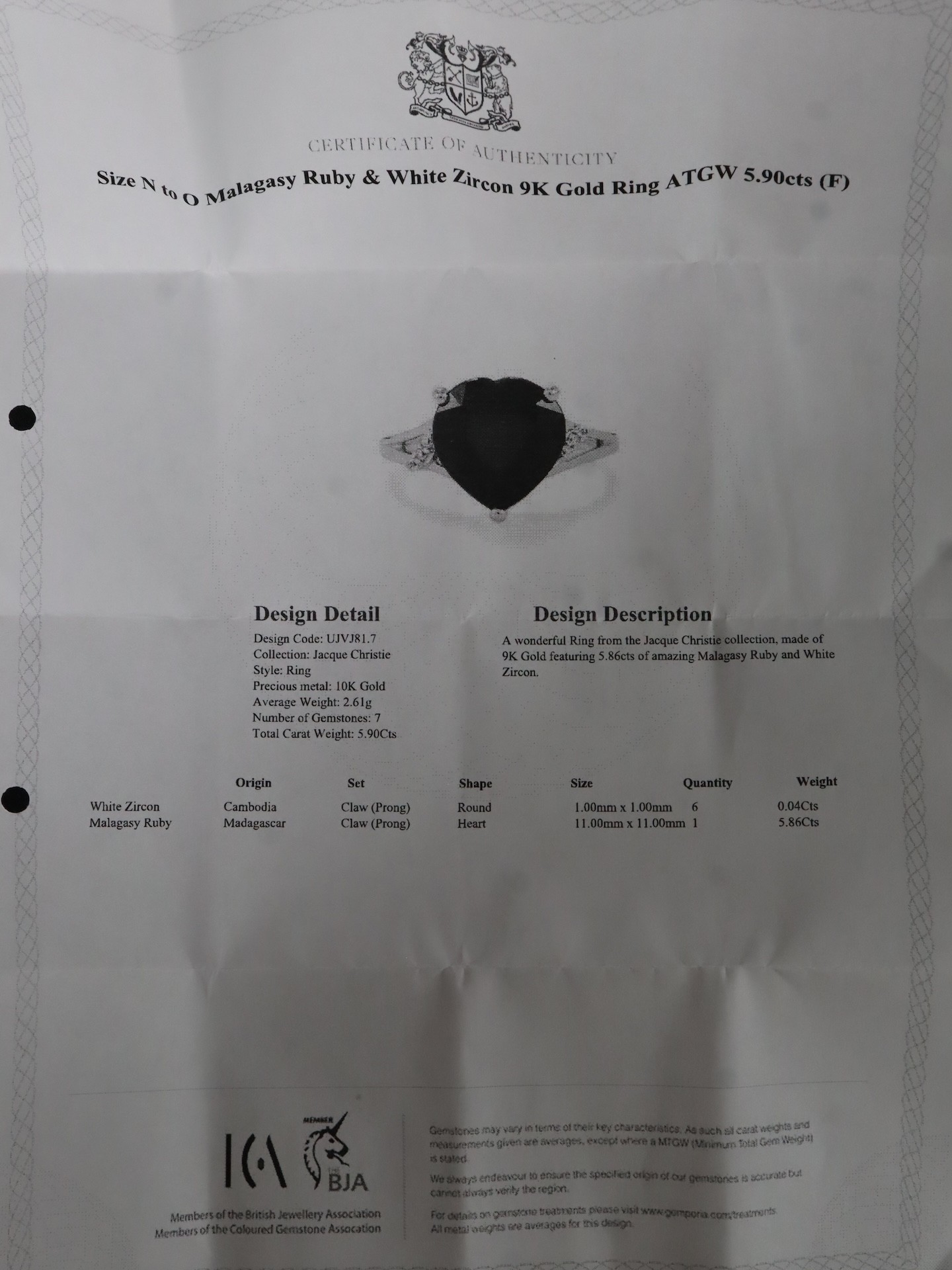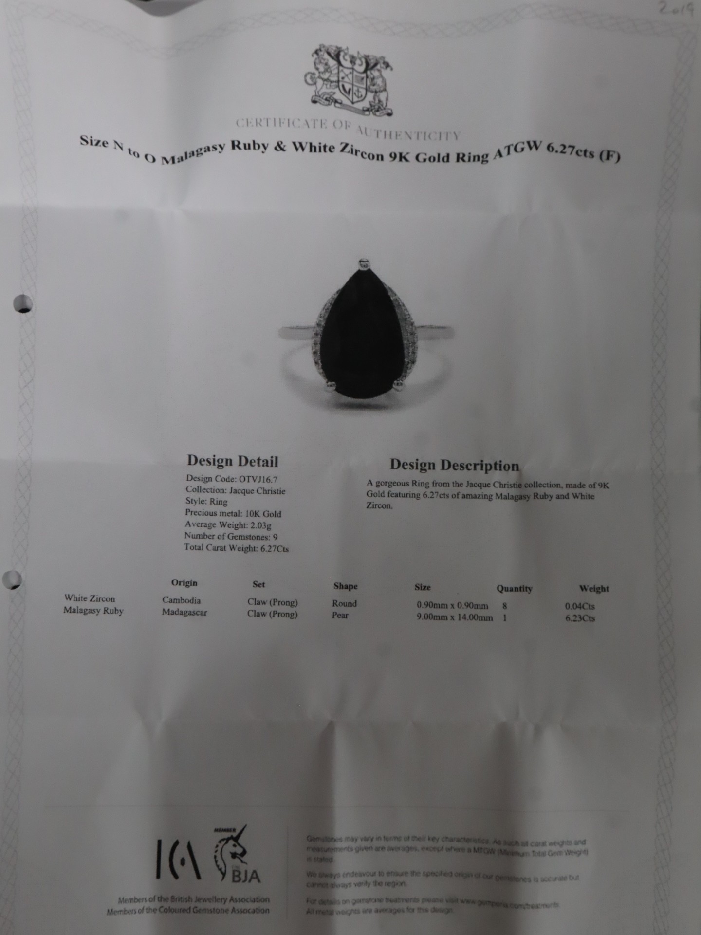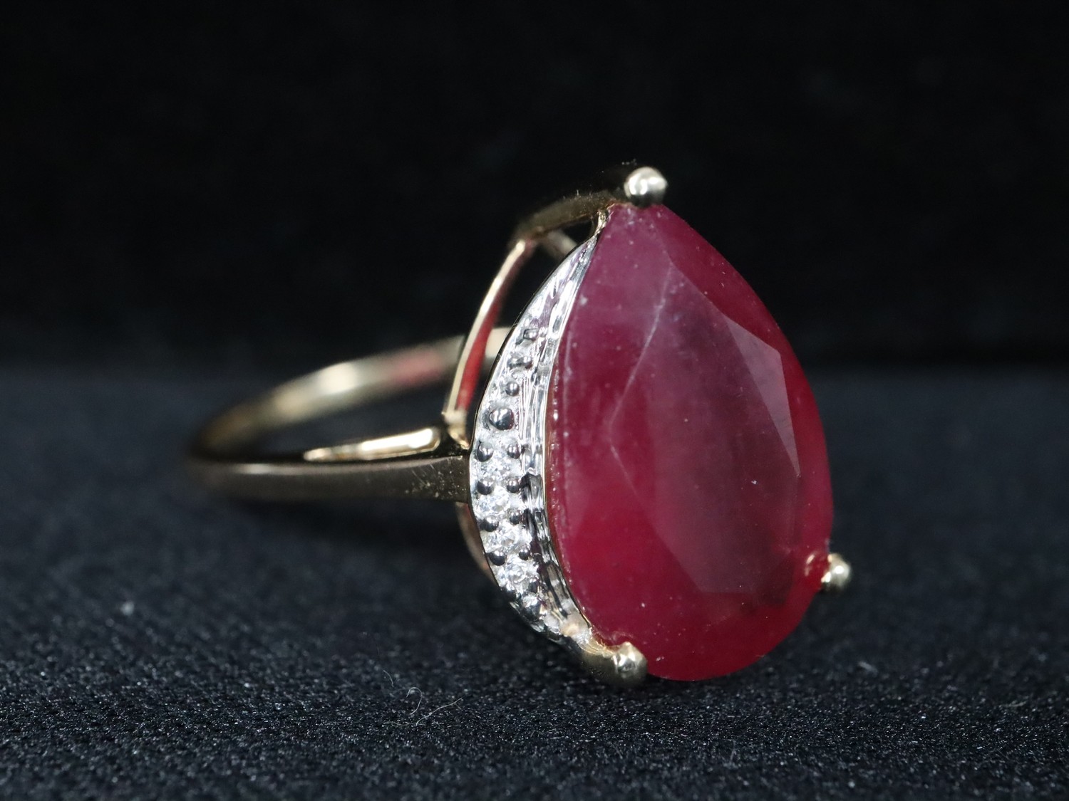 Malagasy Ruby & White Zircon 9K Gold Ring Atgw 6.27cts Malagasy Ruby & White Zircon 9K Gold Ring Atgw 5.90 cts Size N to O -6.6g