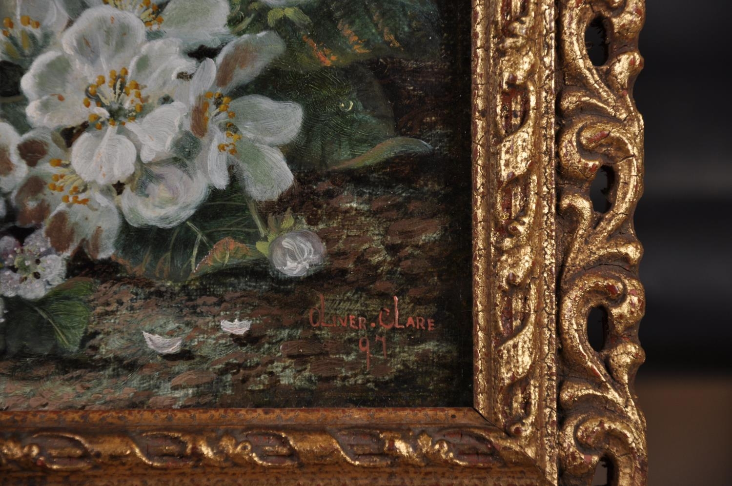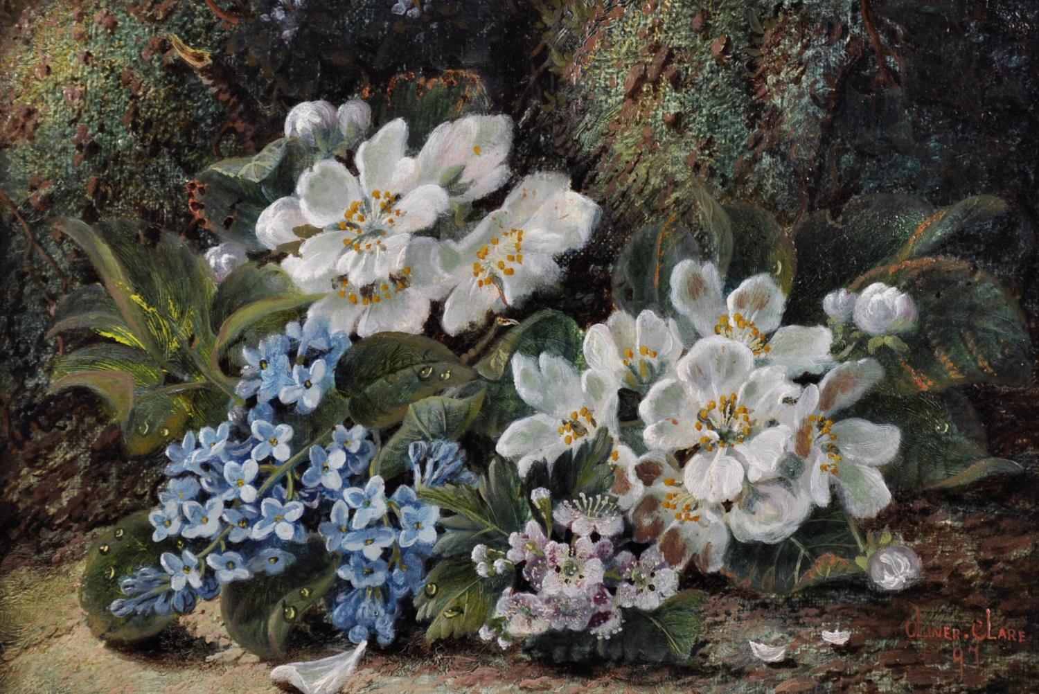 Oliver Clare (1853-1927) British. Still Life of Flowers on a Mossy Bank, Oil on Canvas, Signed, 7” x 10” (17.8 x 25.4cm)