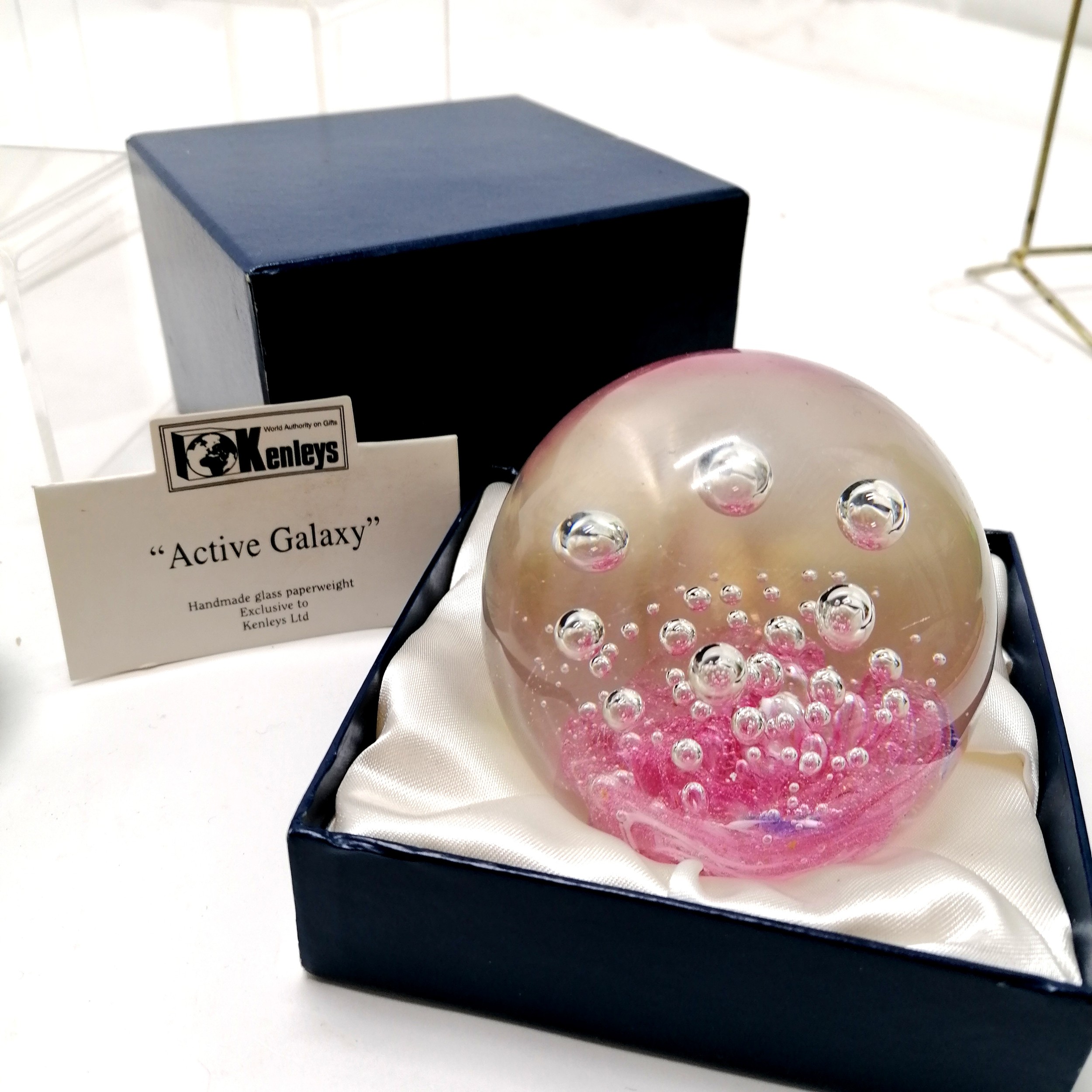 Quantity of glass paperweights some boxed including Caithness, Kenleys Active Galaxy, Royal Crest Nebula, Langham, sahara Sands and Sylshire Ltd.