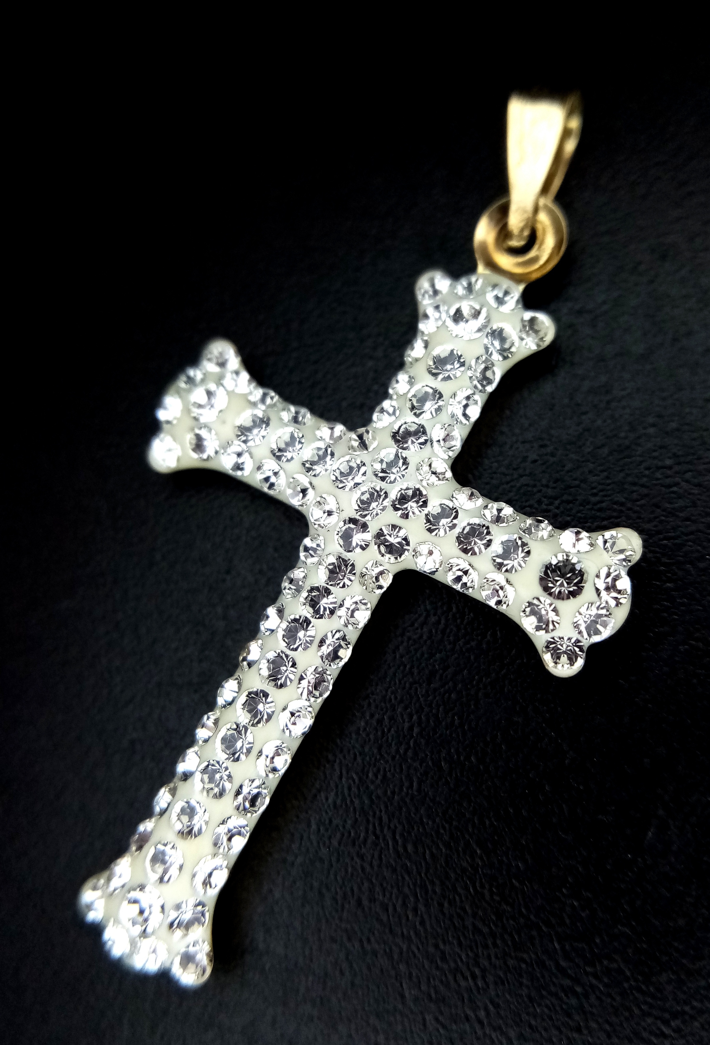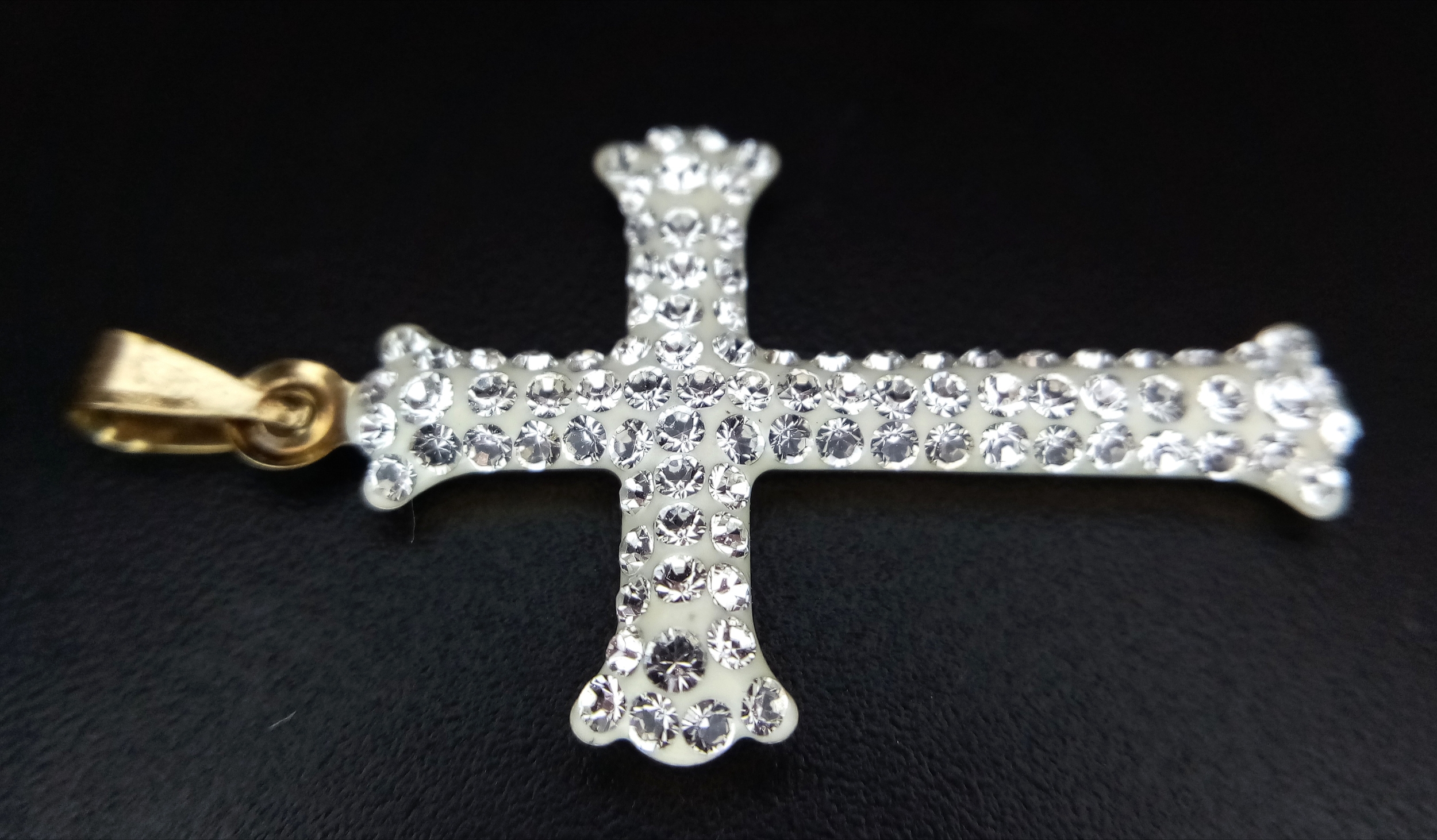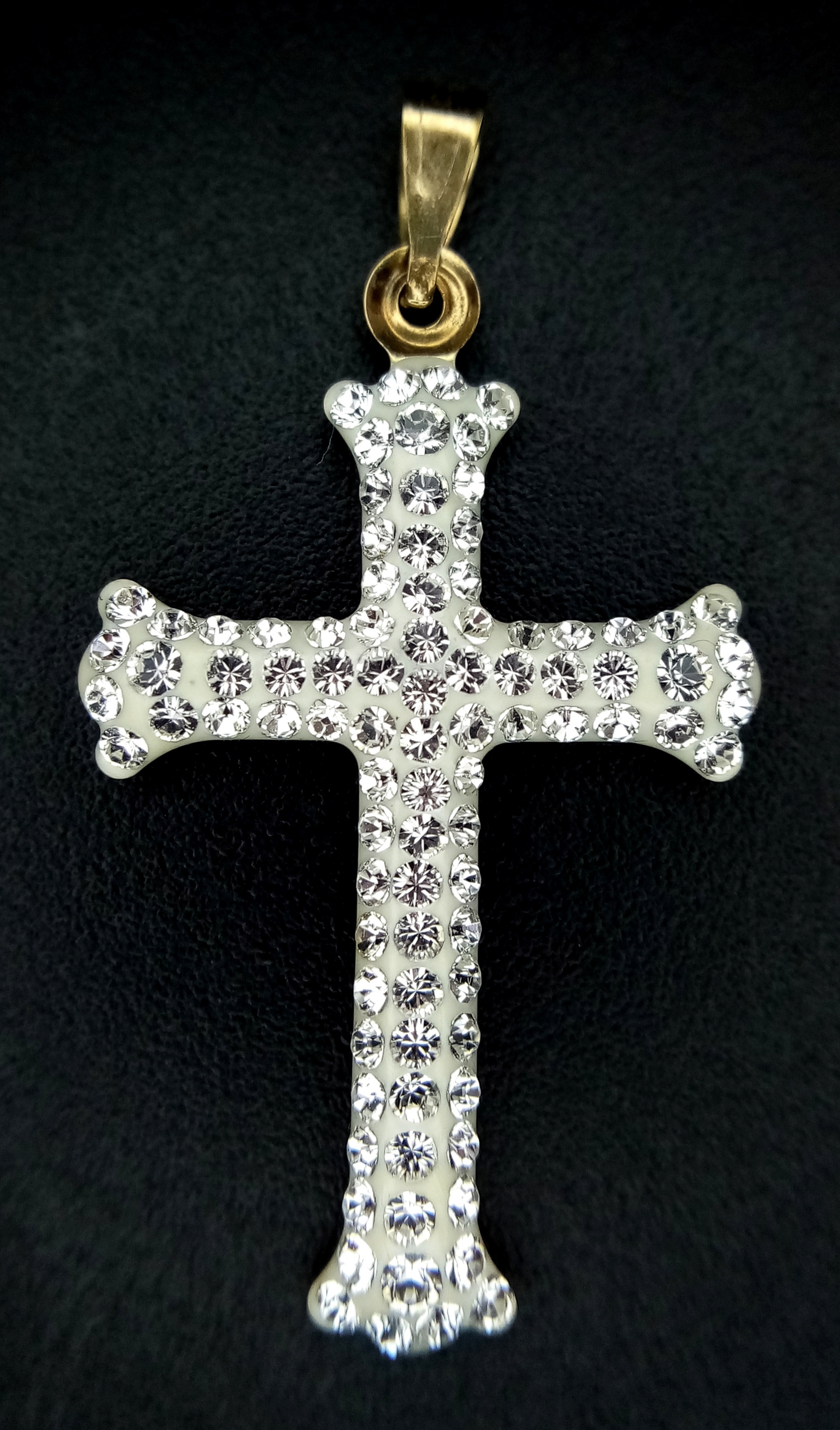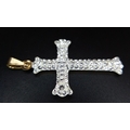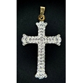 A 9K Yellow Gold (tests as) White Stone Cross Pendant. 3.5cm. 0.6g.