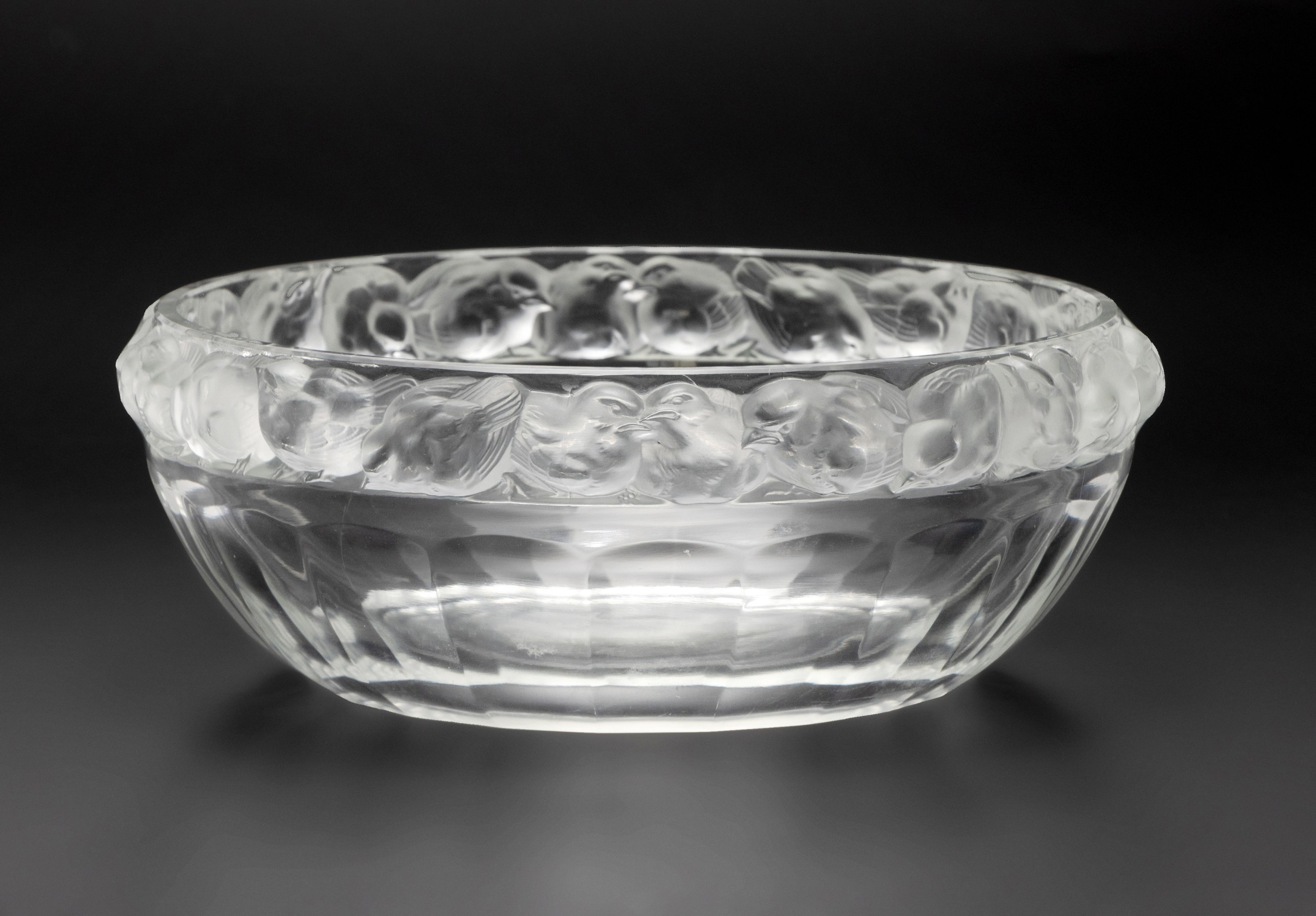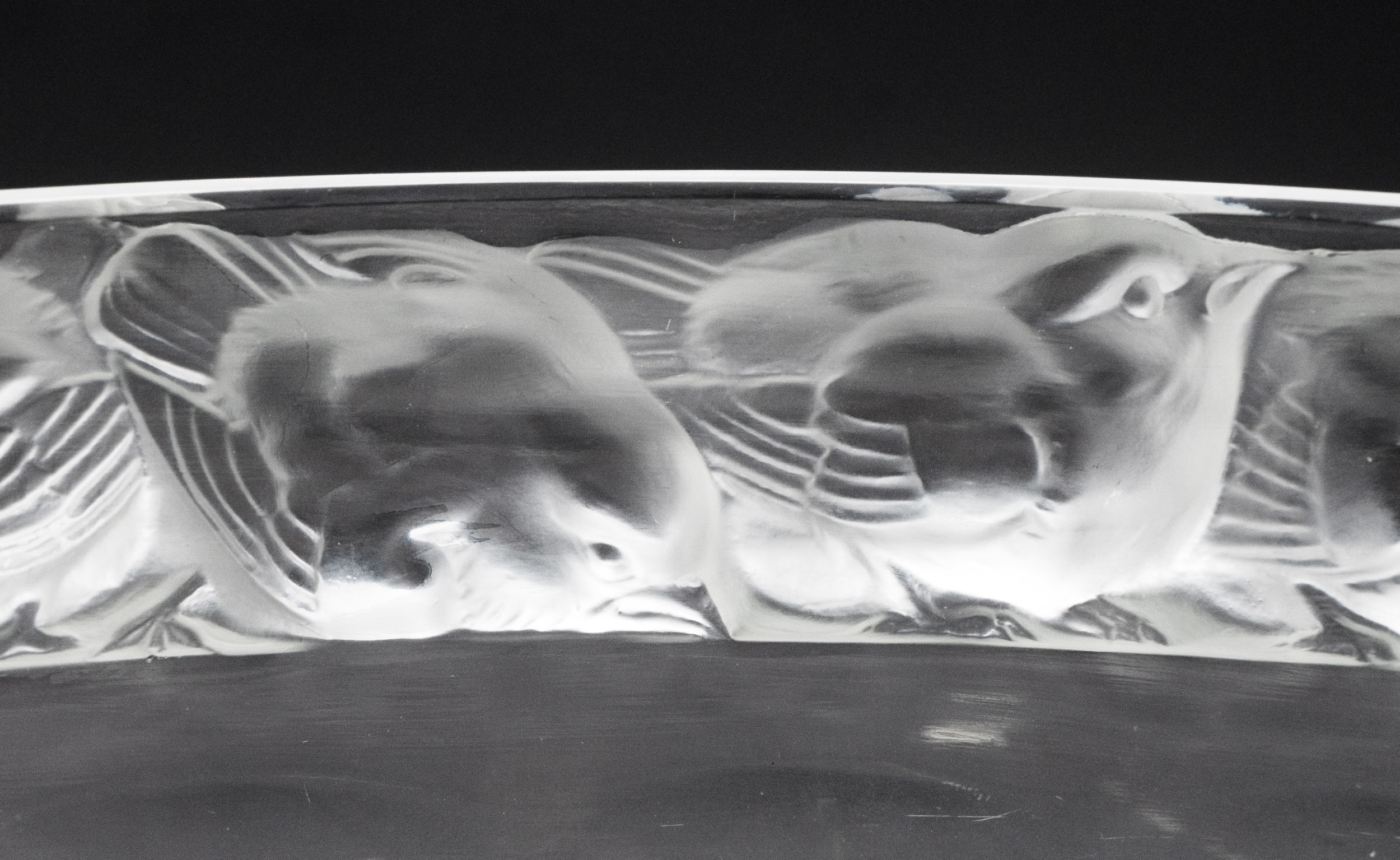 A LALIQUE 'MESANGES' BOWL WITH FROSTED BIRD BORDER