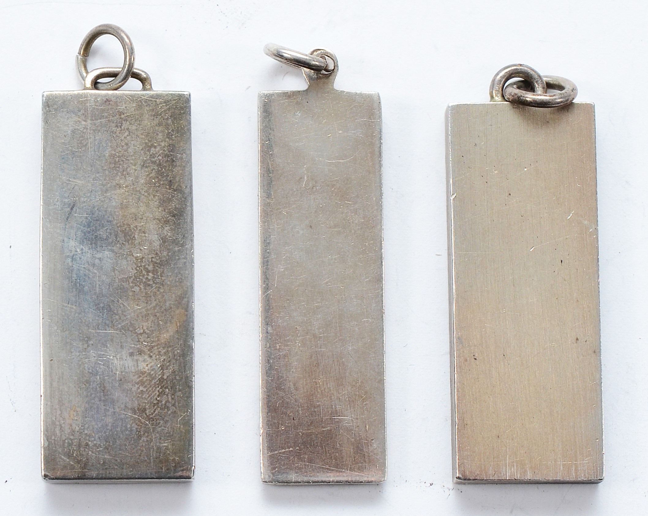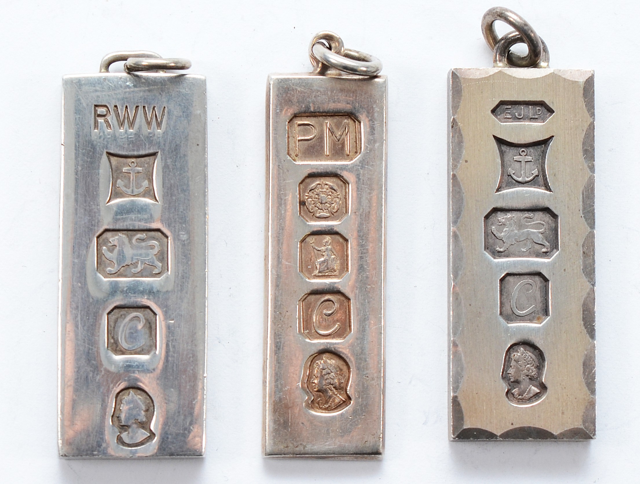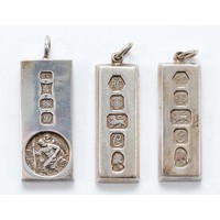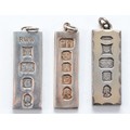 Two silver ingot pendants, Birmingham 1977, with a silver ingot pendant, Sheffield 1977, 75g