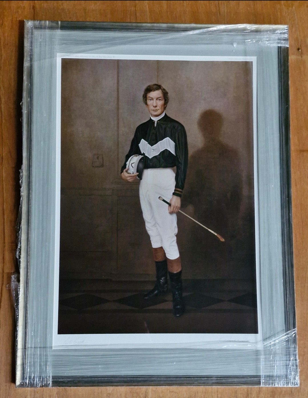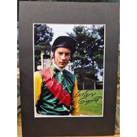 Signed Portrait of Lester Piggott by Raymond L Skipp. Limited edition lithograph print of original, Signatures in pencil bearing Skipp and Piggott. Numbered 290/850, 19½" x 28