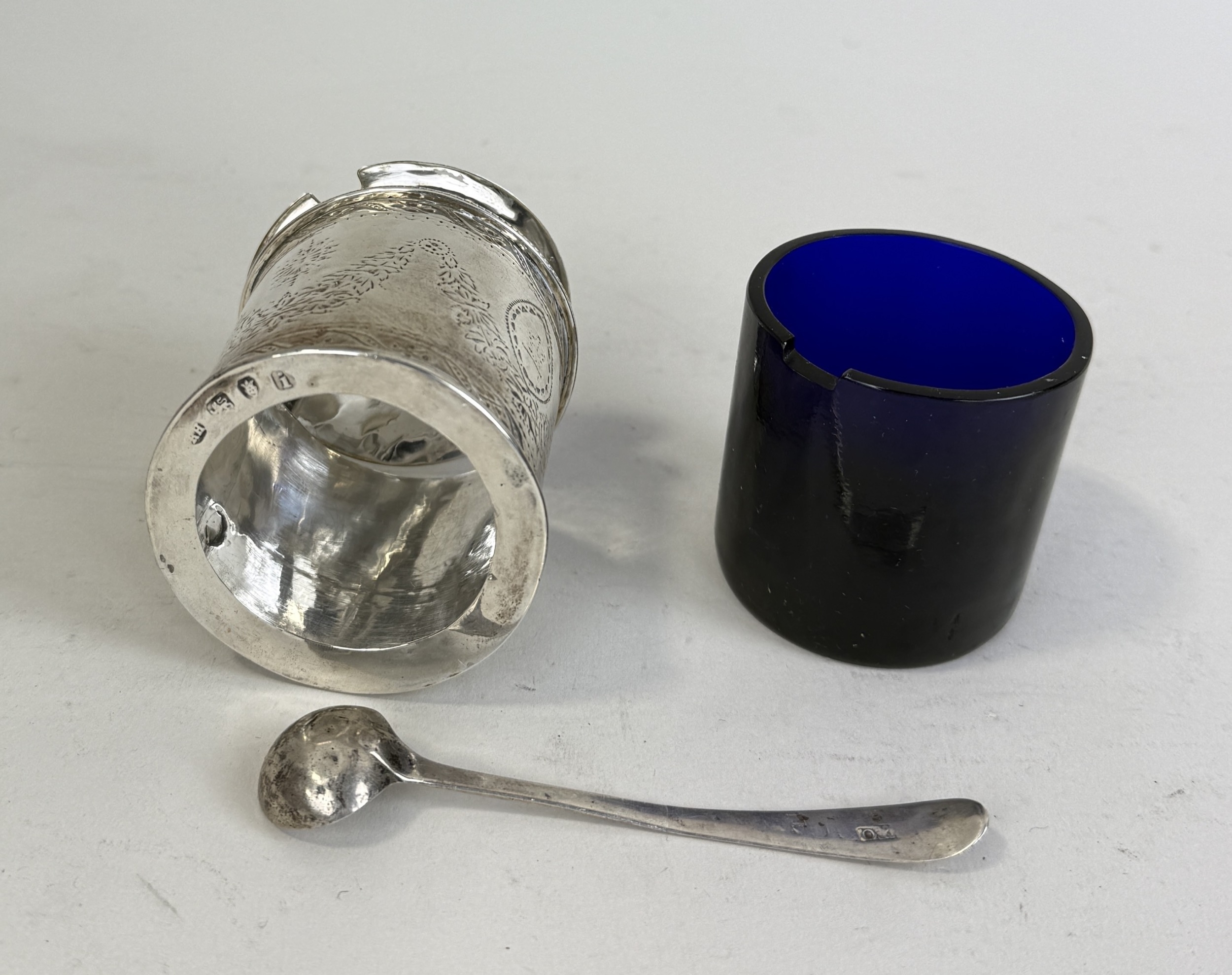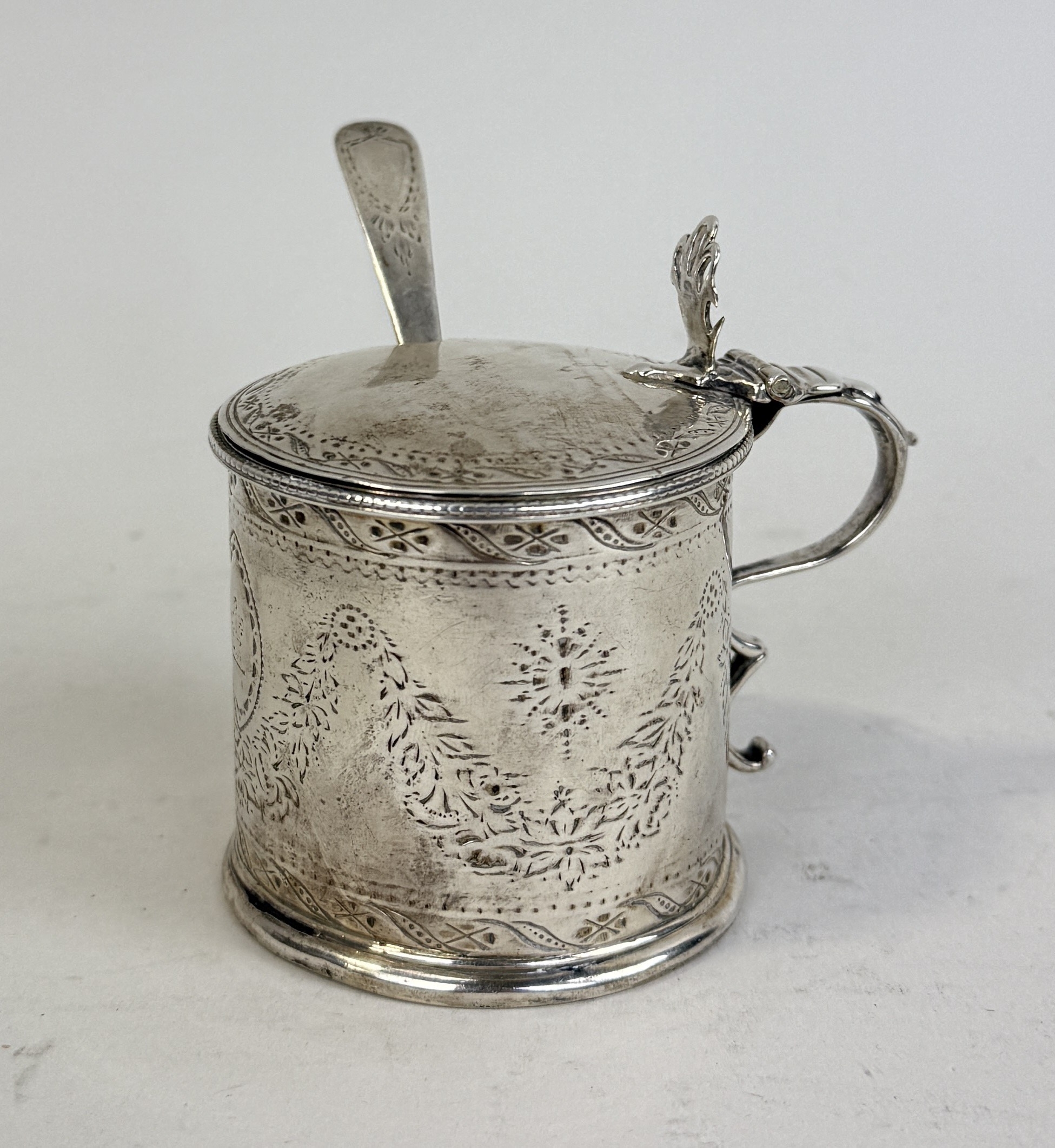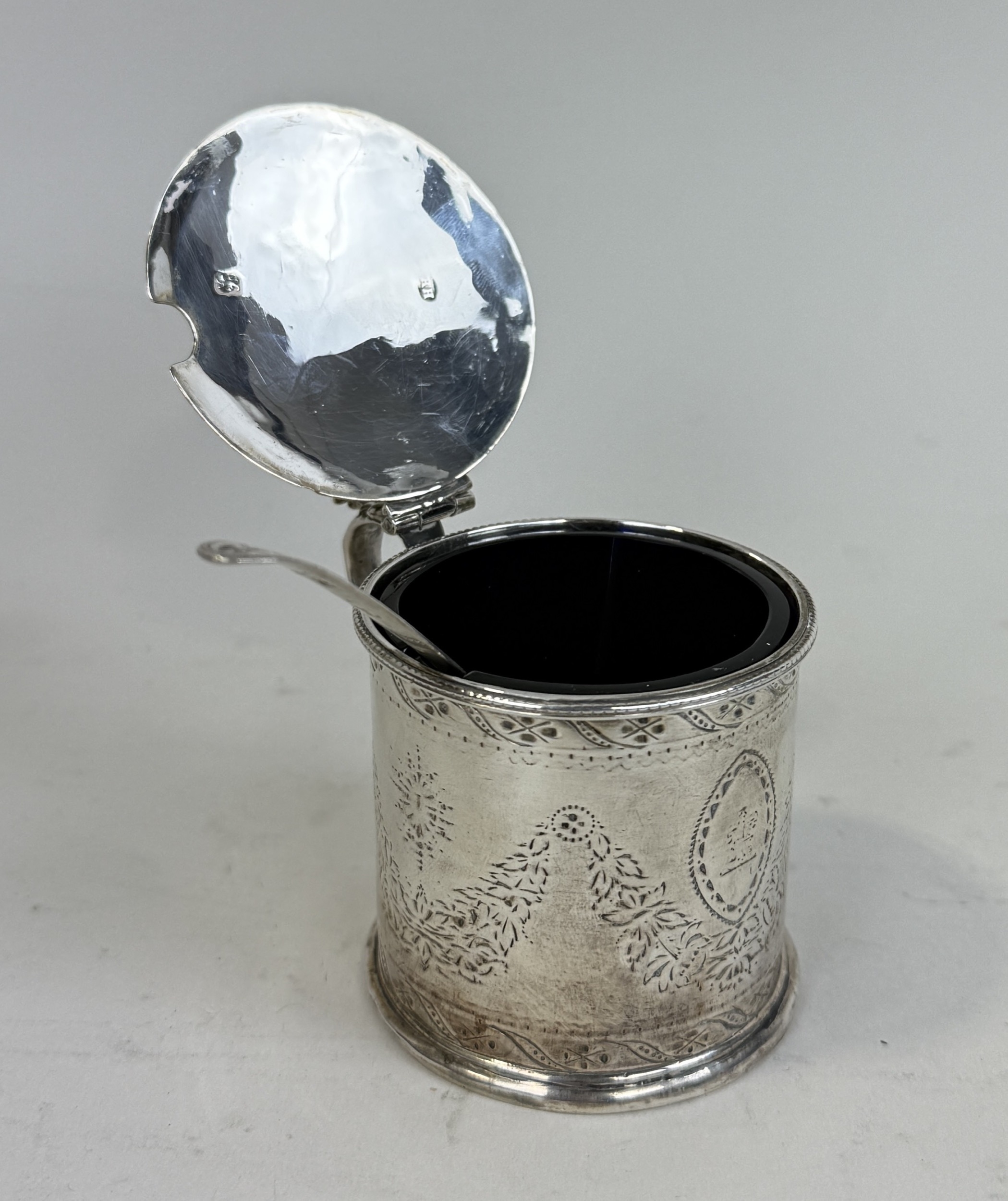 A GEORGIAN SILVER MUSTARD POT WITH SPOON