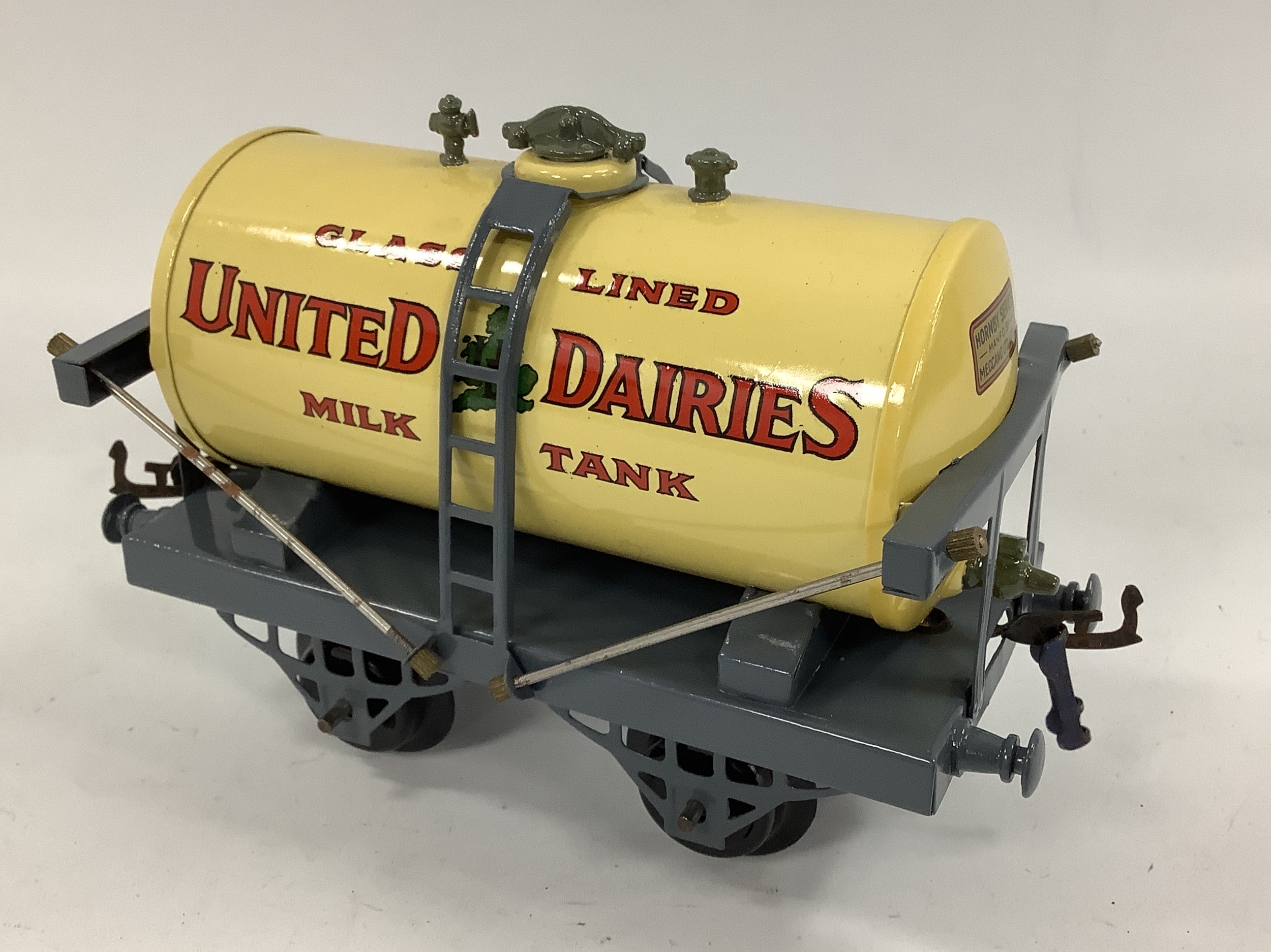 A Pre-War Hornby 'O' Gauge 'United Dairies' Tank Wagon, repainted, restored to a good standard.
