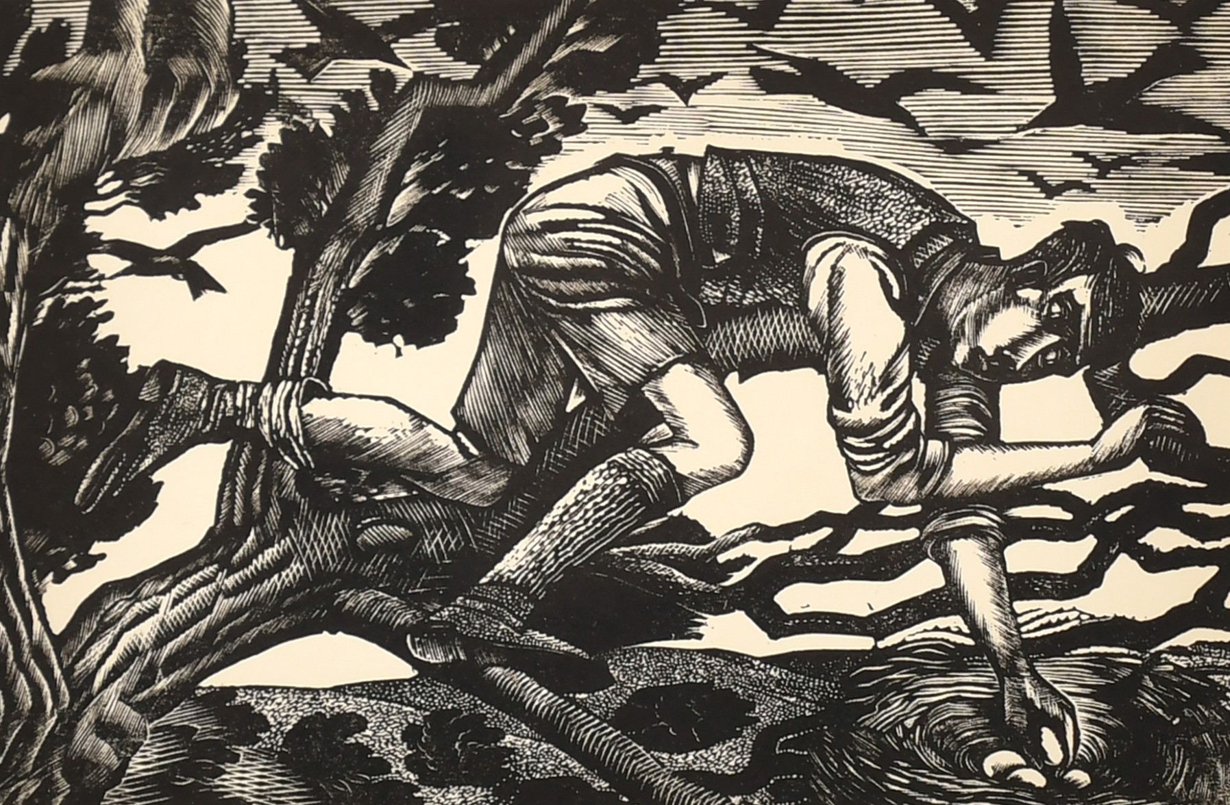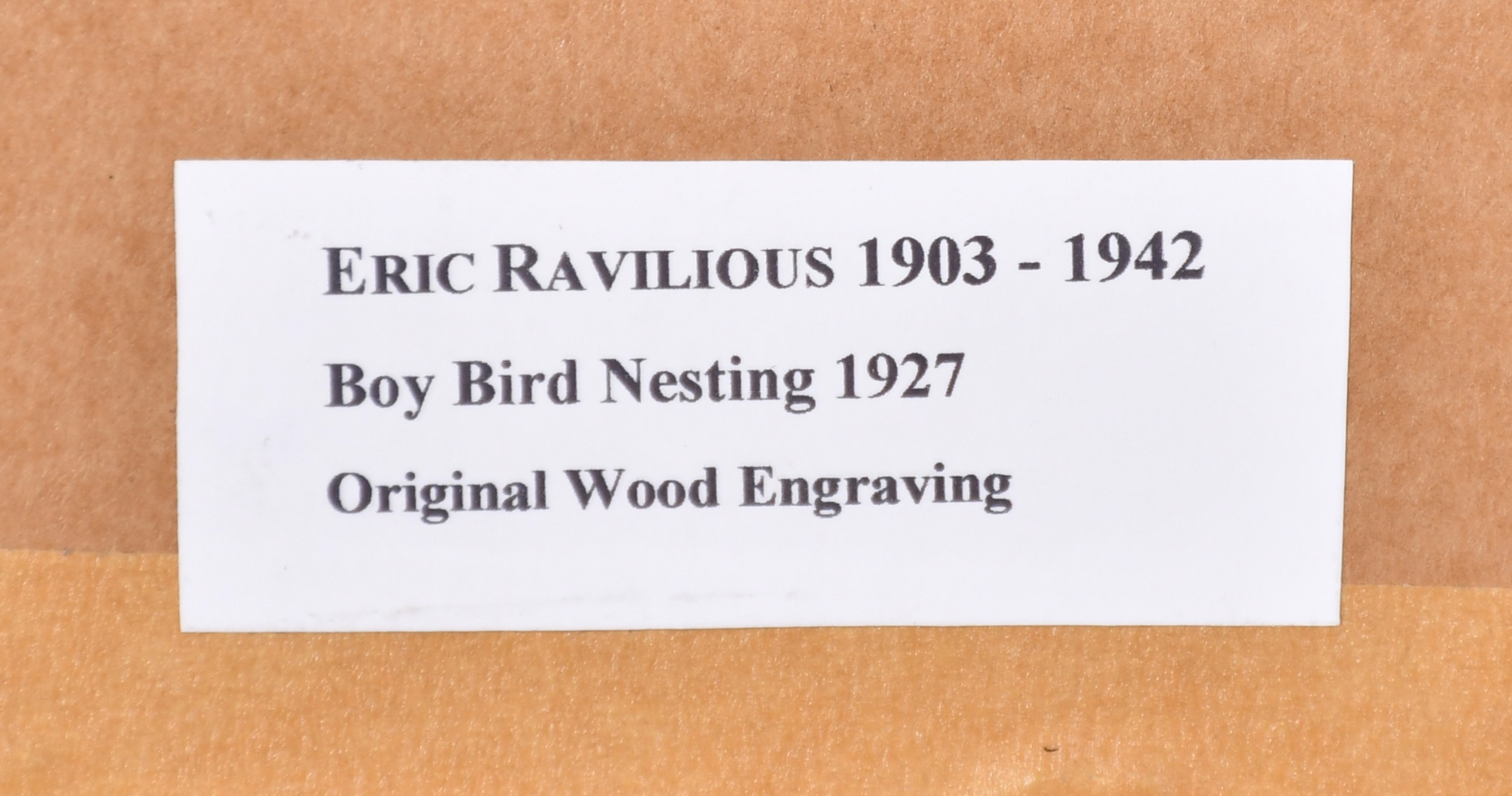 Eric Ravilious (1903-1942) British. "Boy Bird Nesting, 1927", Wood engraving, 3.5" x 5.25" (8.9 x 13.3cm)
