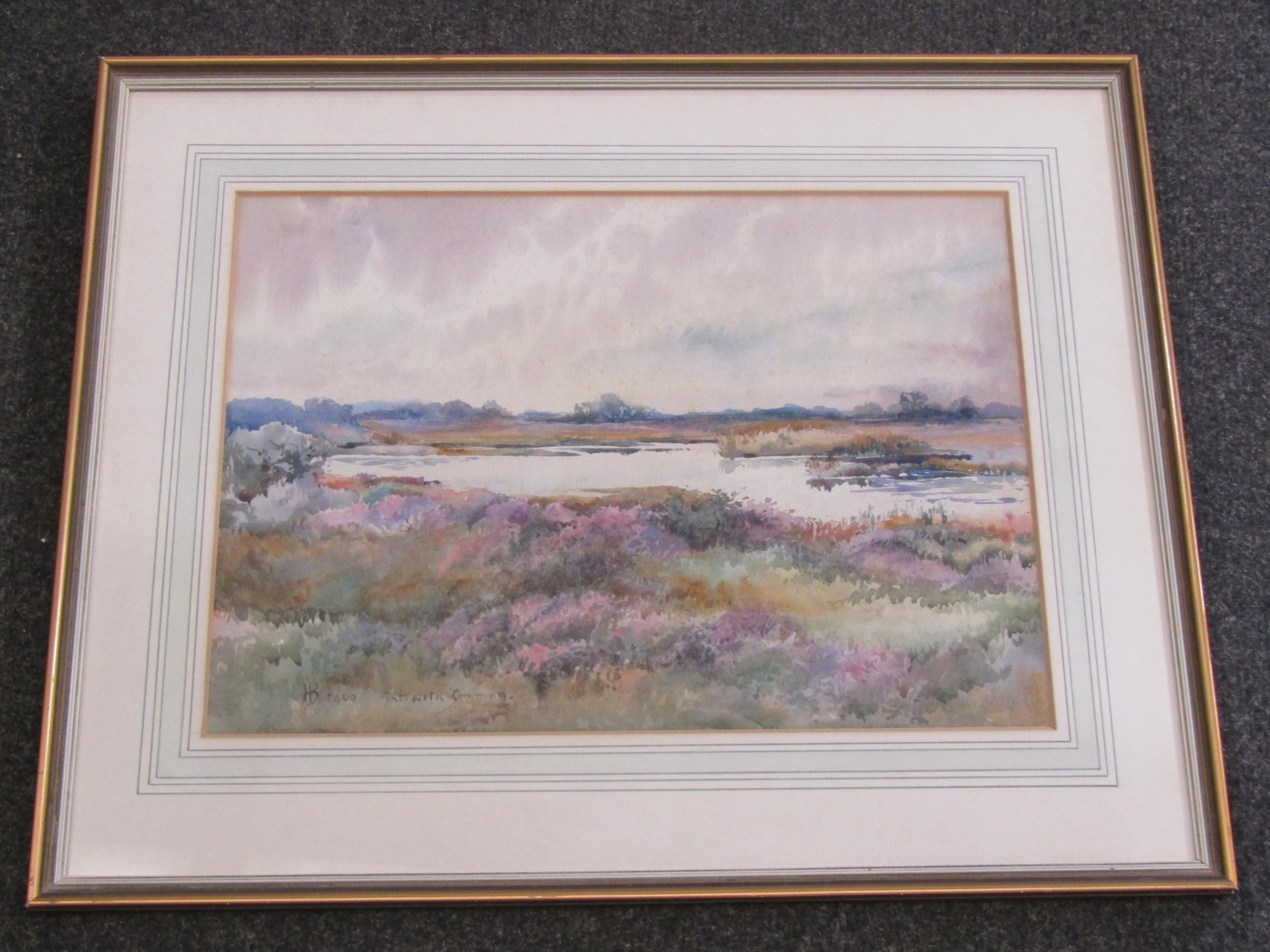 HERBERT JAMES FINN (1860-1942): A framed and glazed watercolour Skipwith Common scene, 1900, monogrammed bottom left, image size 25cm x 35cm