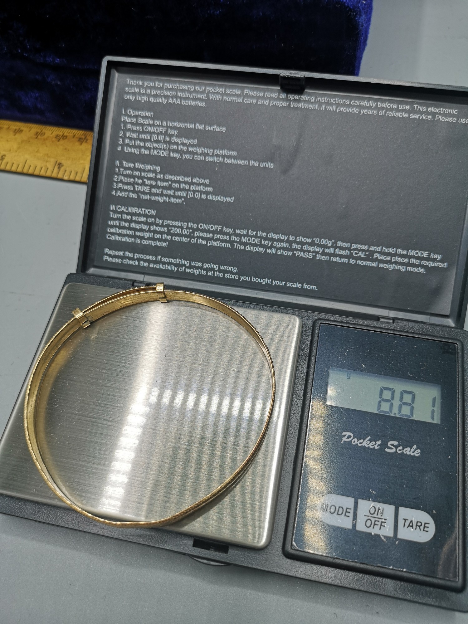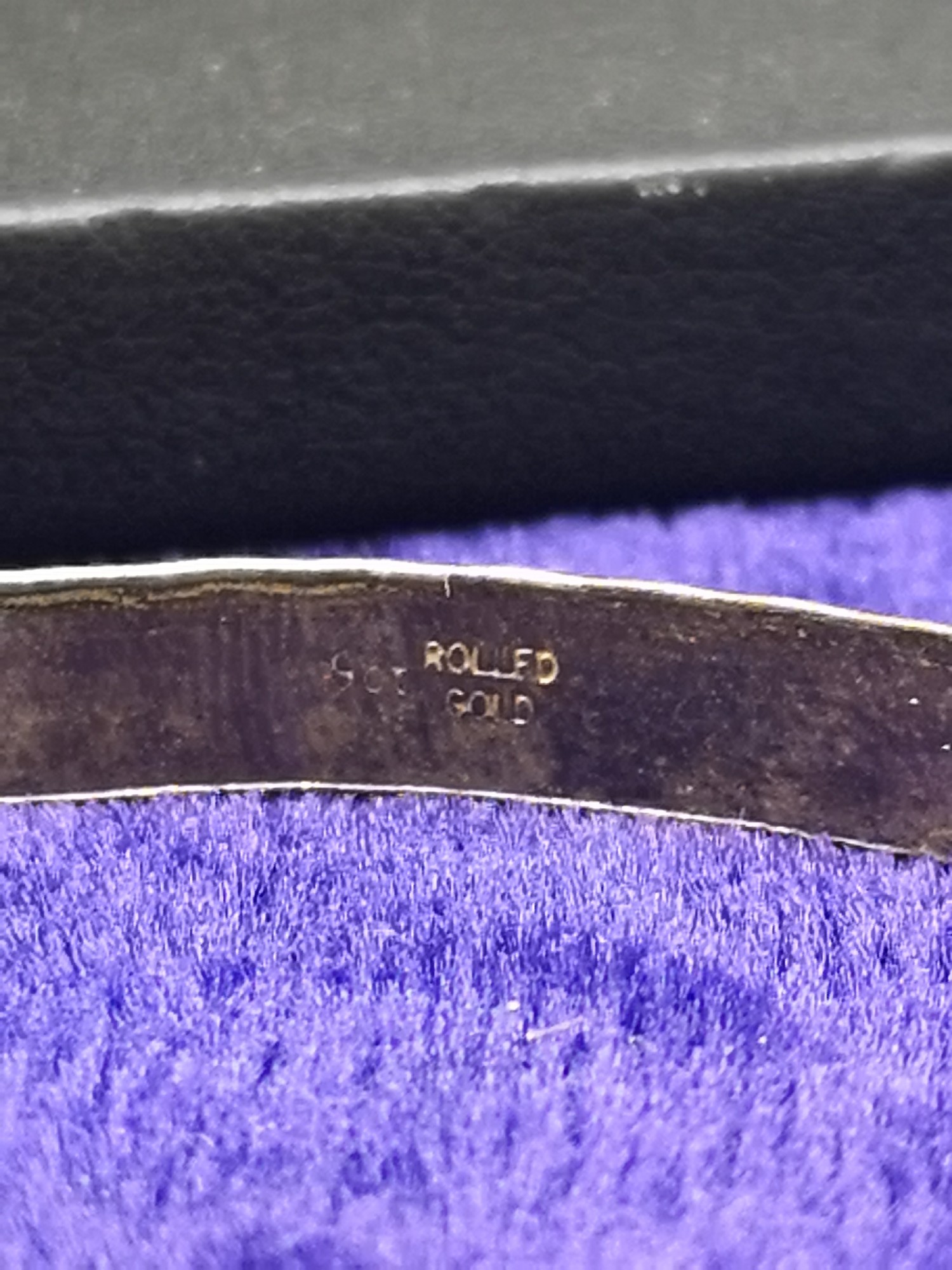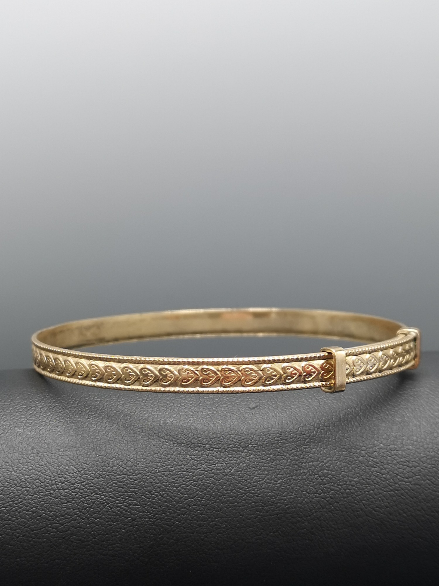 9ct rolled gold bangle with heart design. 8.81 grams gross weight .