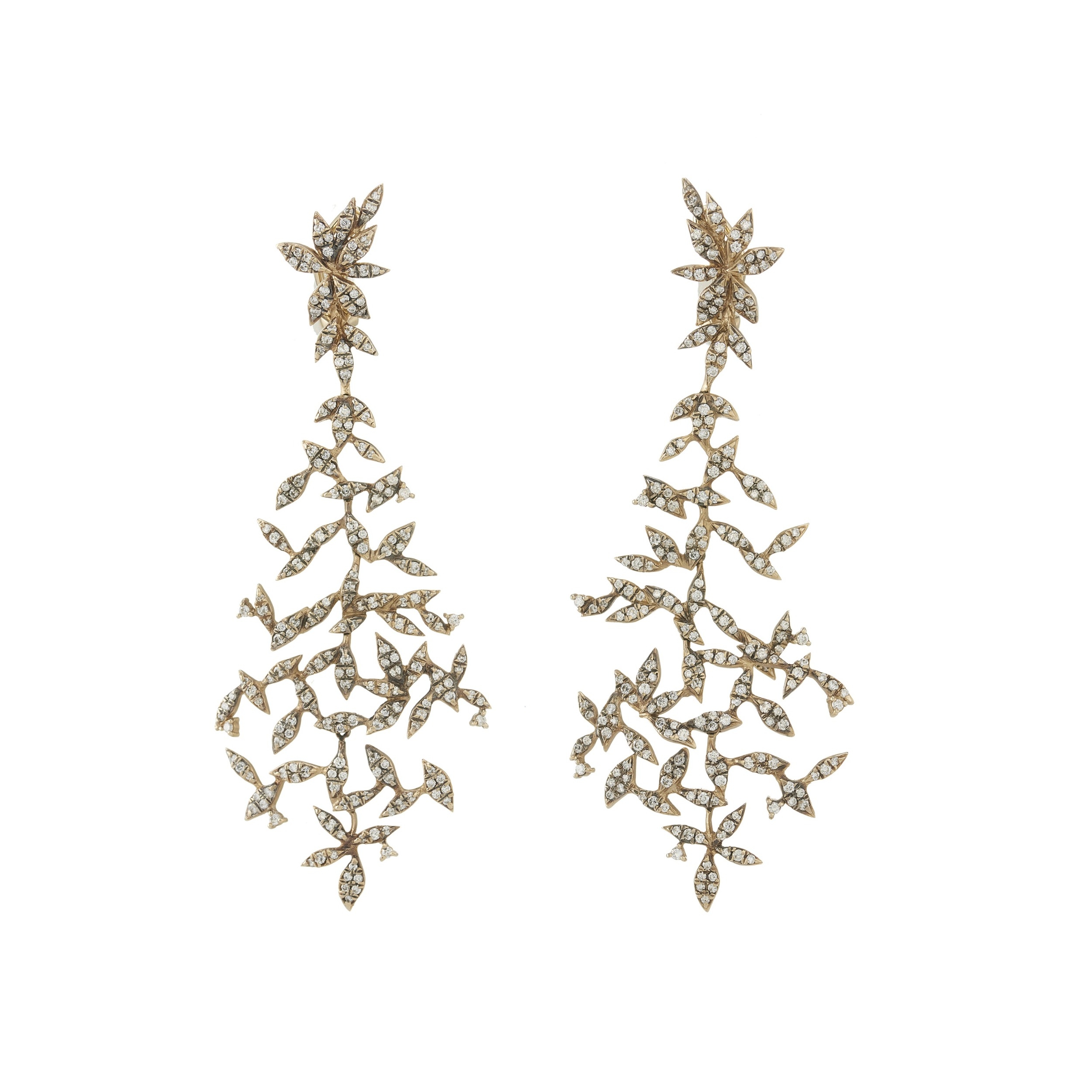 H. Stern, a pair of 18ct gold brilliant-cut diamond Nature chandelier earrings, each designed as an articulated foliate drop, maker's marks for H. Stern, estimated total diamond weight 3ct, H-I colour, VS2-SI1 clarity, mount stamped 18, length 8.2cm, with maker's case, 20.1g