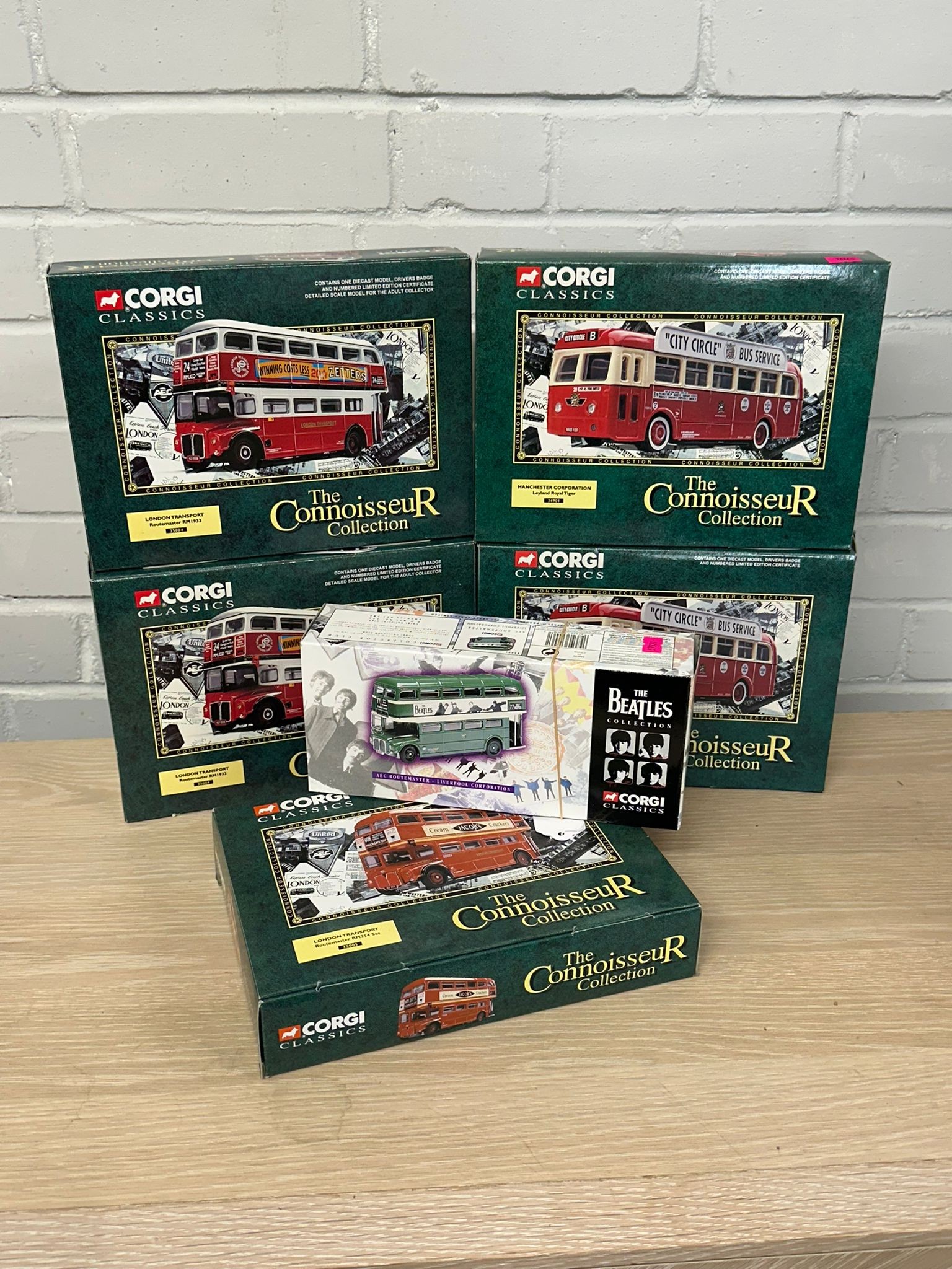 Five boxed Corgi Classics Connoisseur collection sets to include 35004 x 2, 35005, 34901 x2 and a boxed The Beatles Collection Corgi Classics 35006